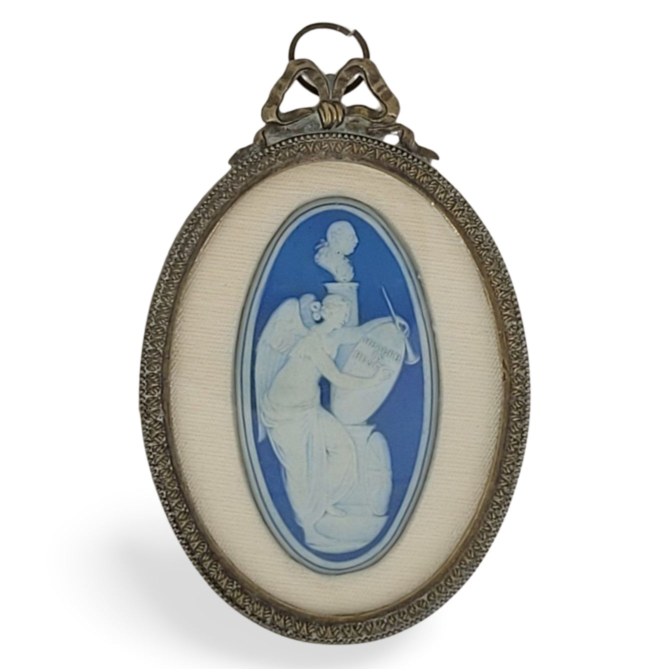 Made to commemorate the (brief) recovery of George III in 1789, it shows Victory inscribing a plaque with Health Restored.