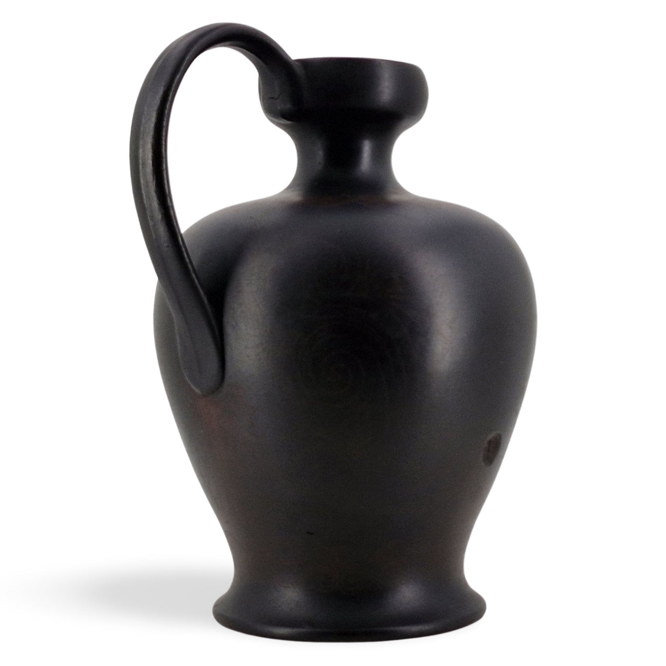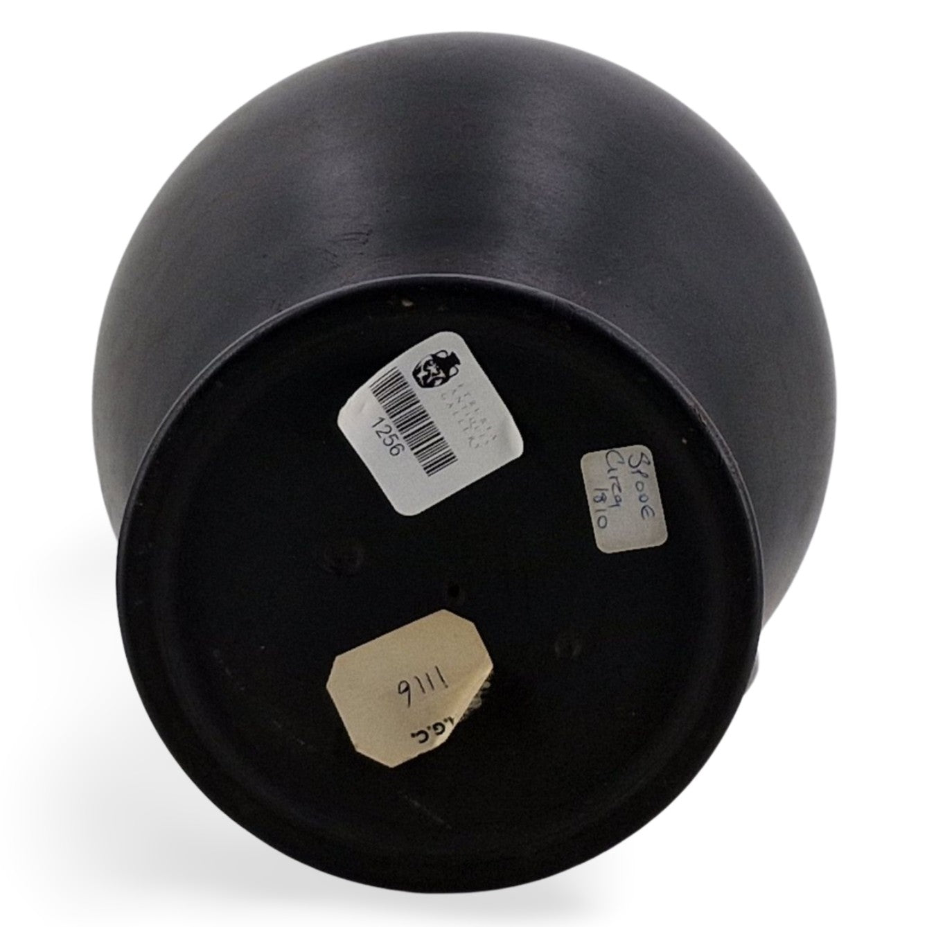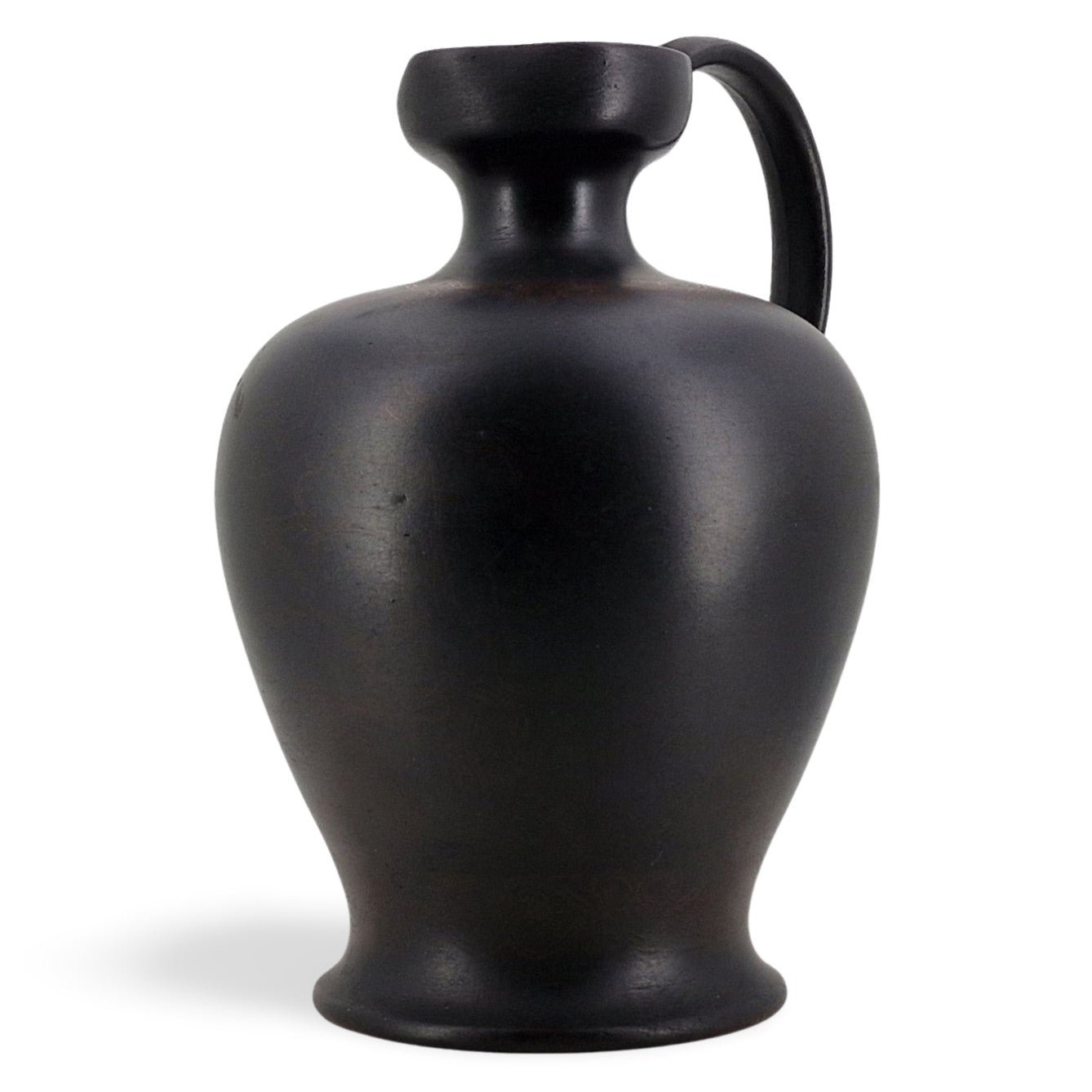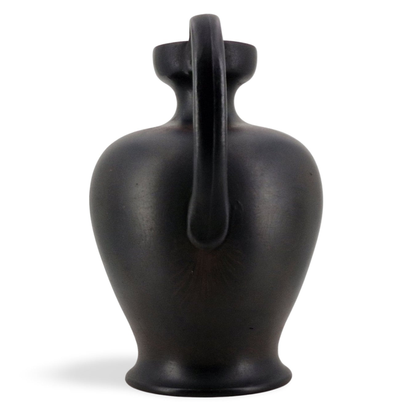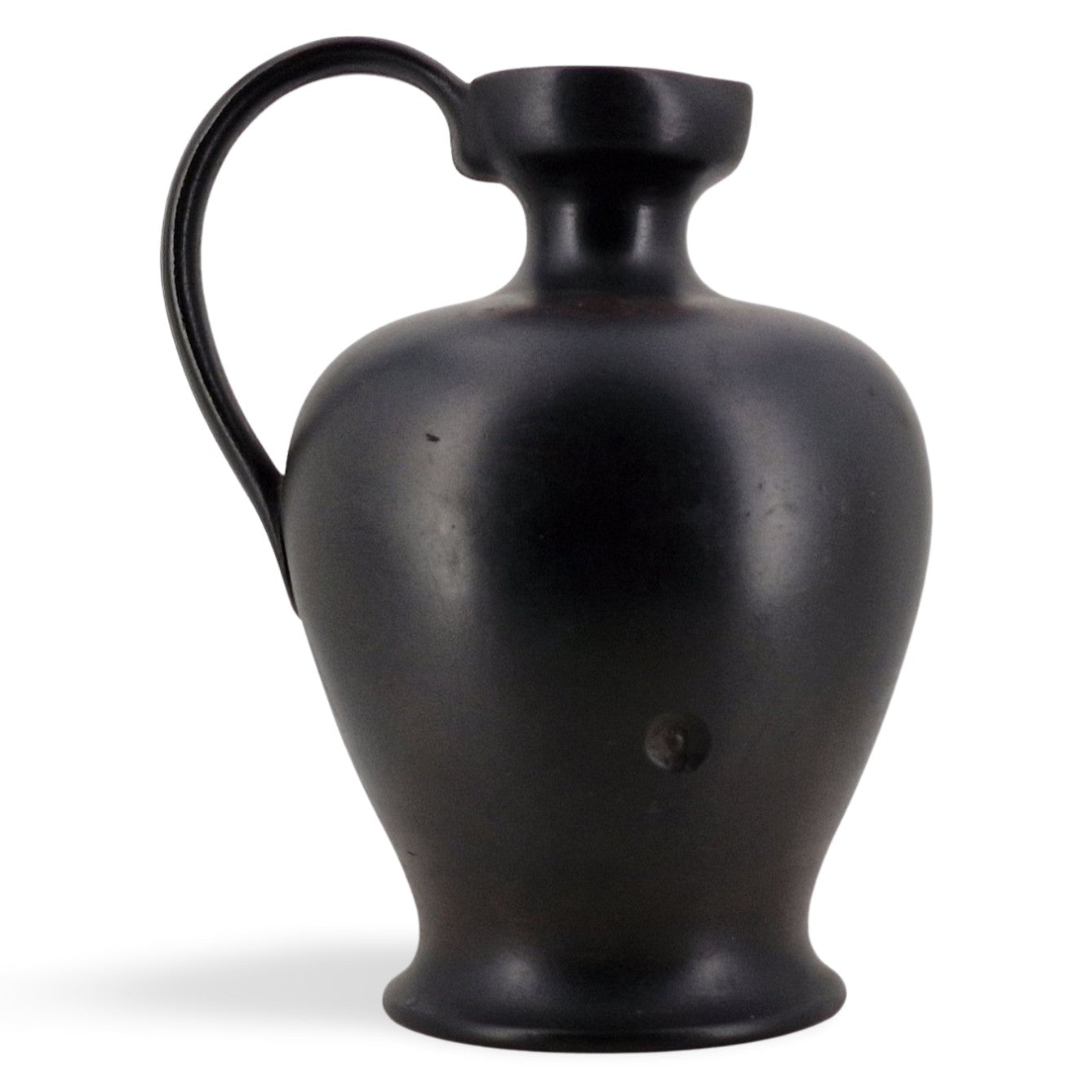 An interesting basalt lekythos, with the beginnings of encaustic decoration. A transfer-printed outline of an elaborate scheme can just be seen.
