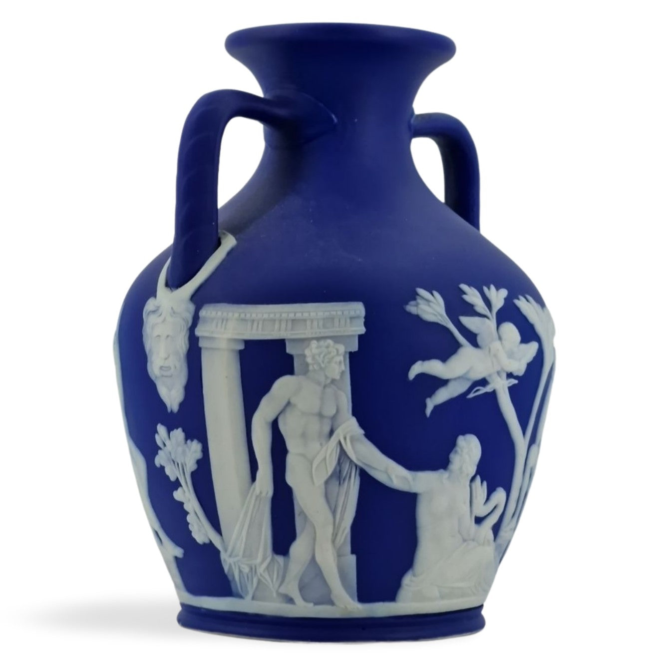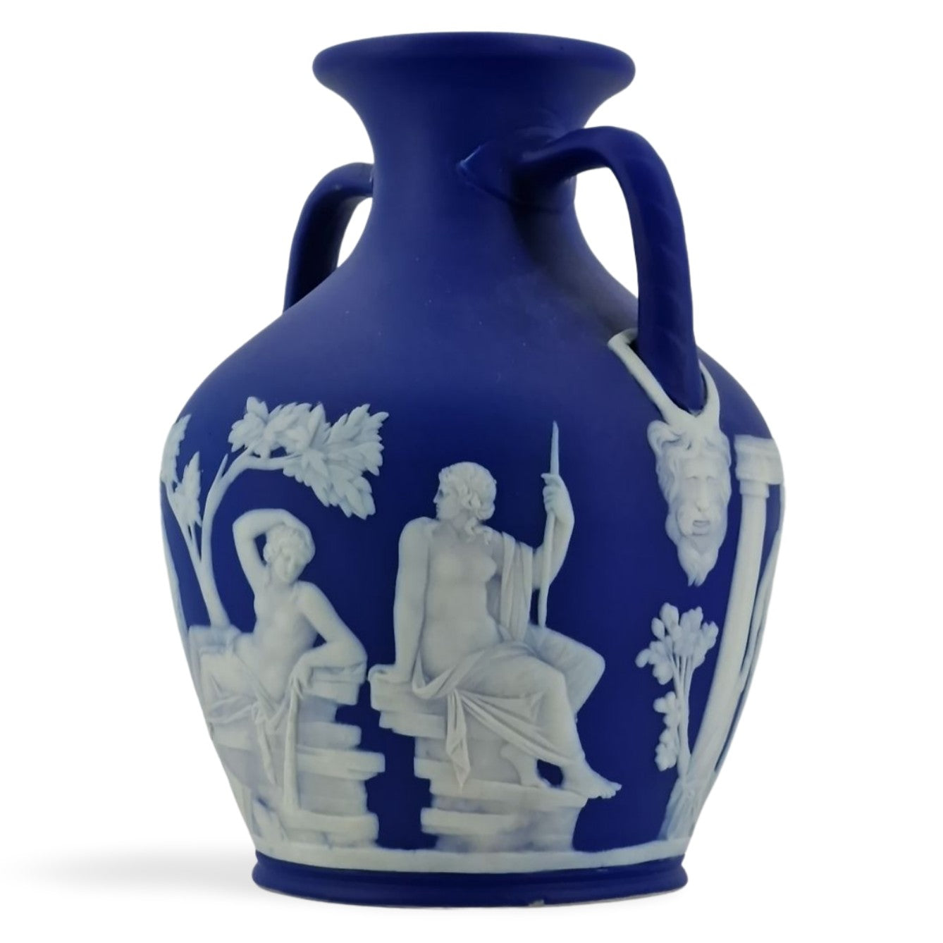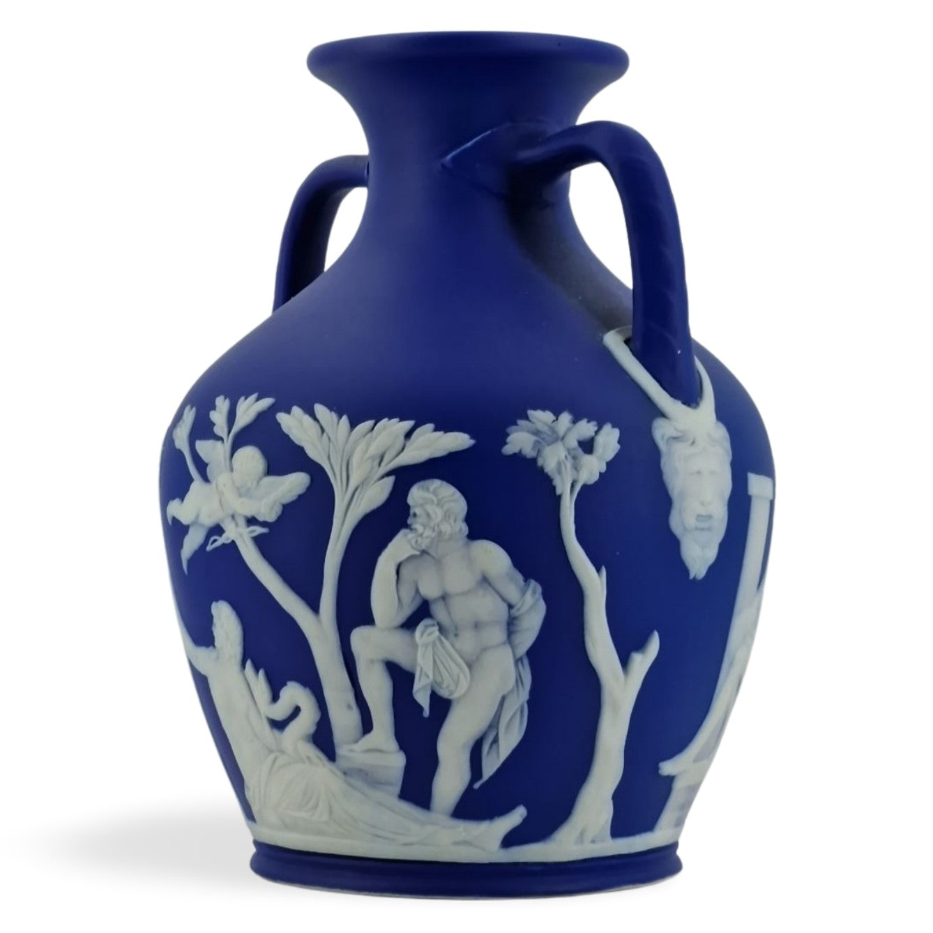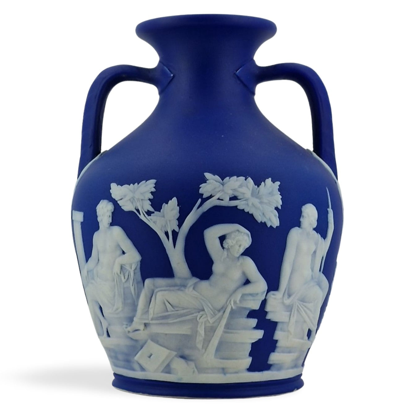 In cobalt jasper dip. A nice size for this iconic piece of Wedgwood jasperware.