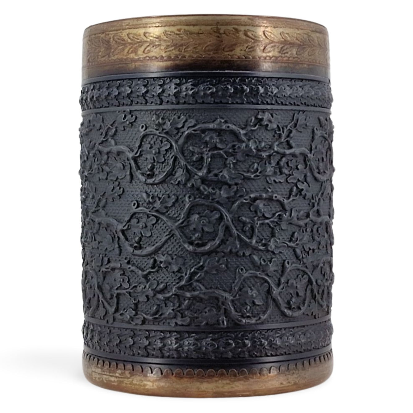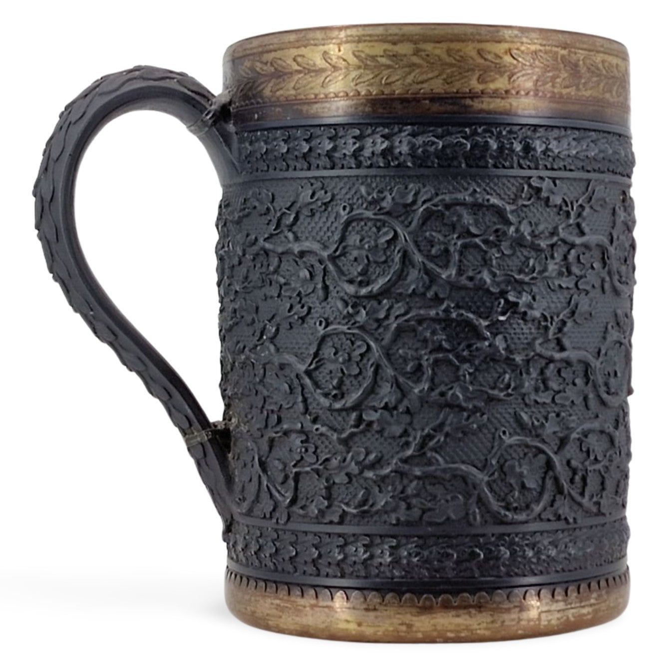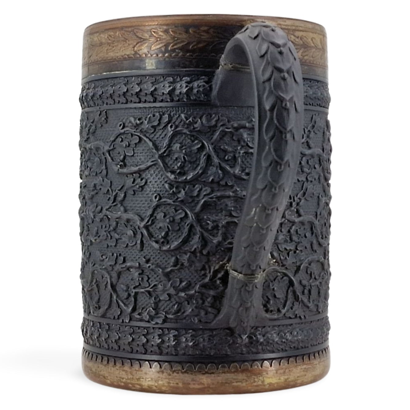Cider muf of enormous size, decorated with oak branches and bands of acanthus leaves. Sheffield-plate mounts.
