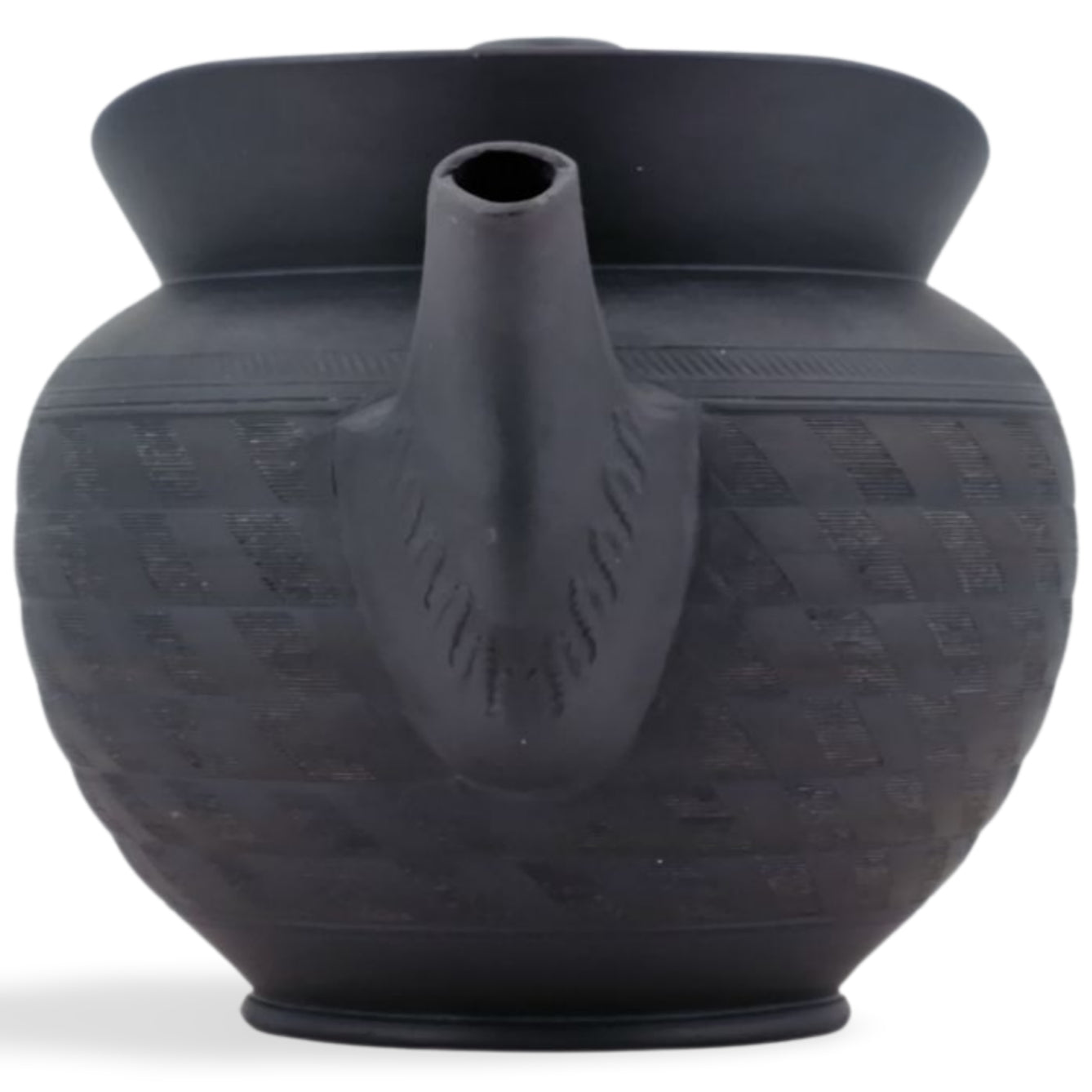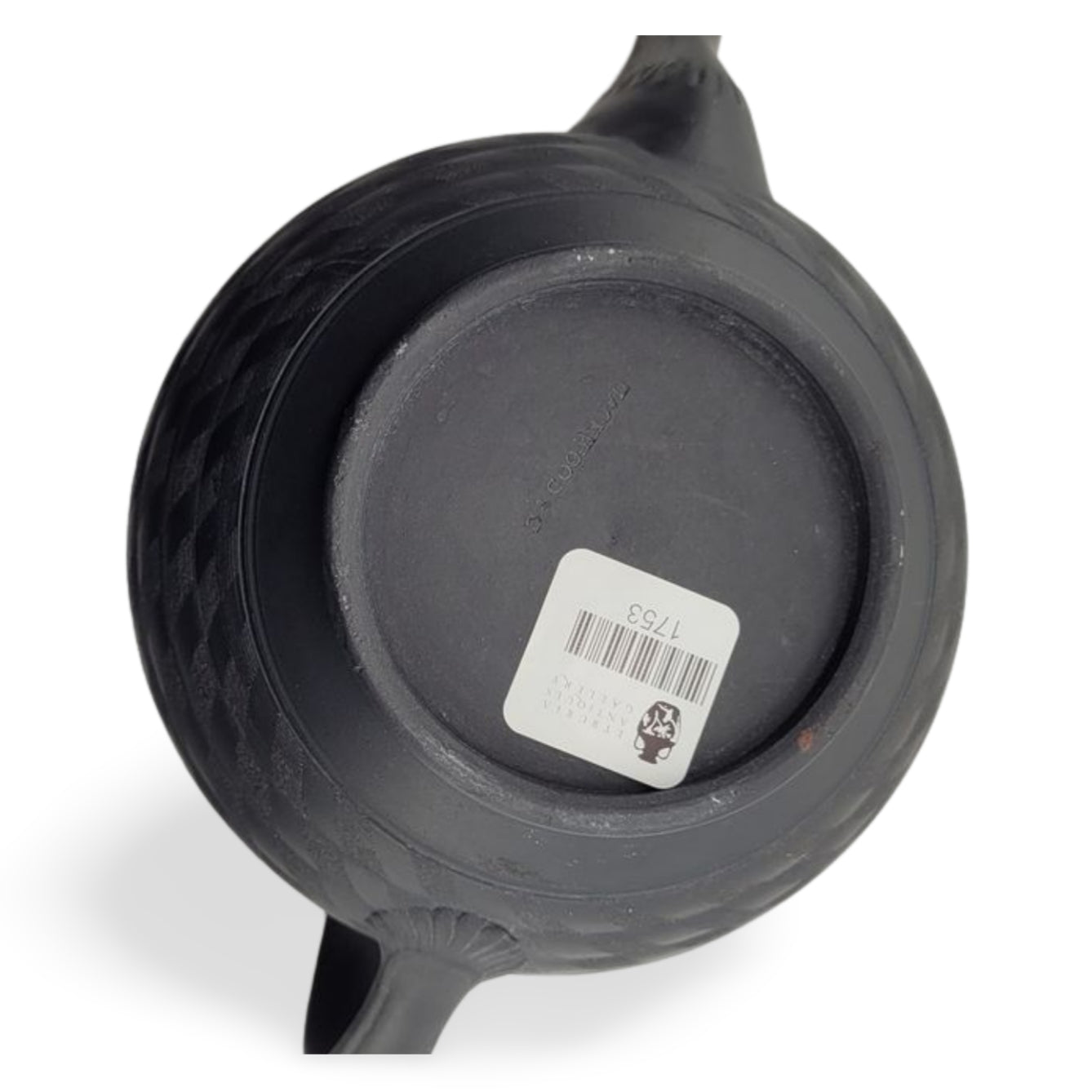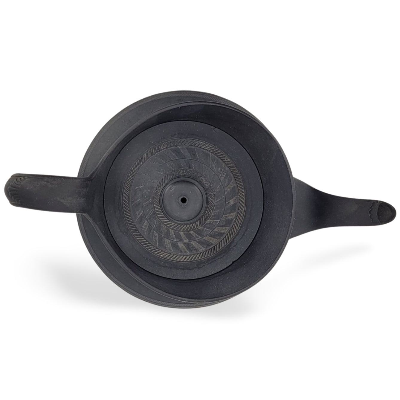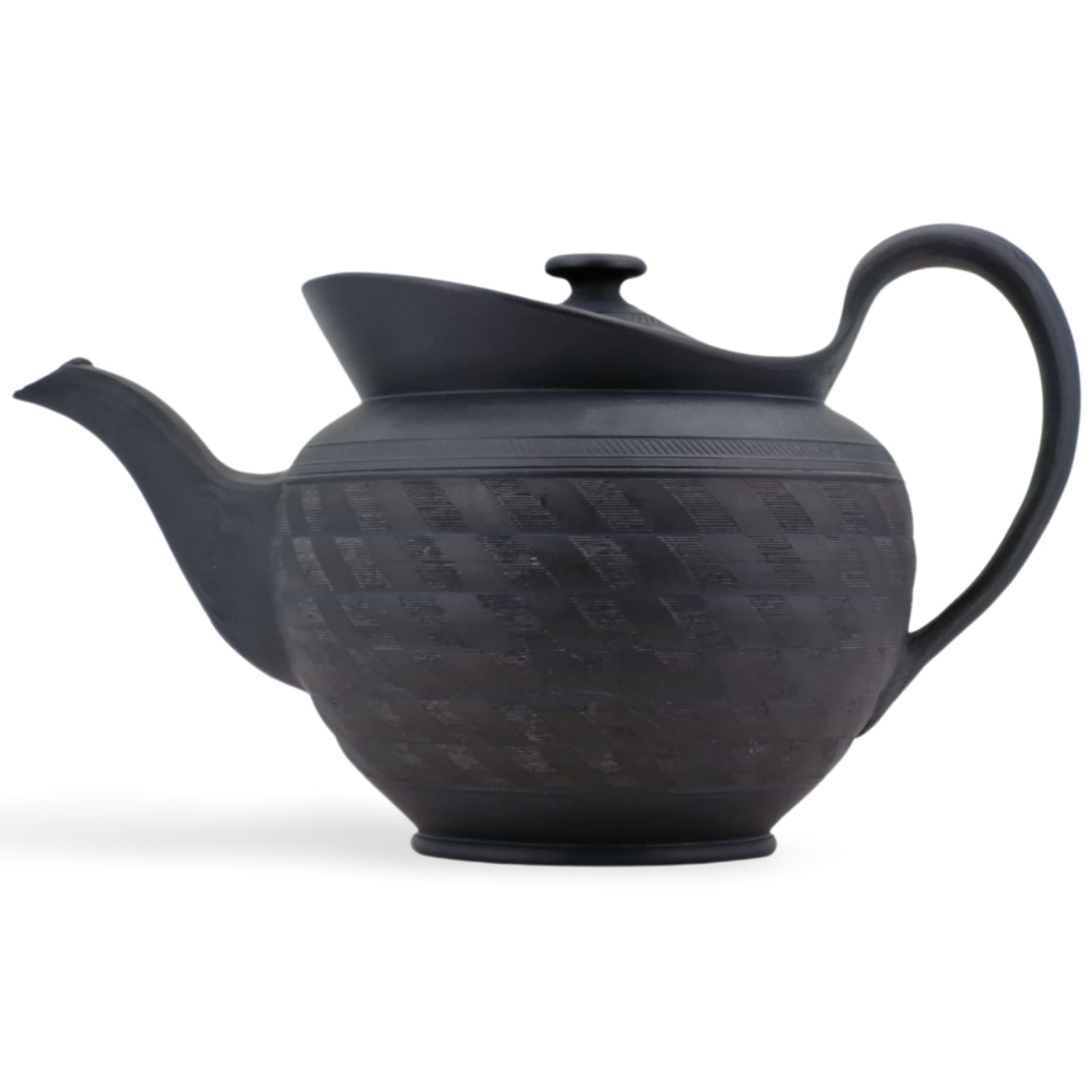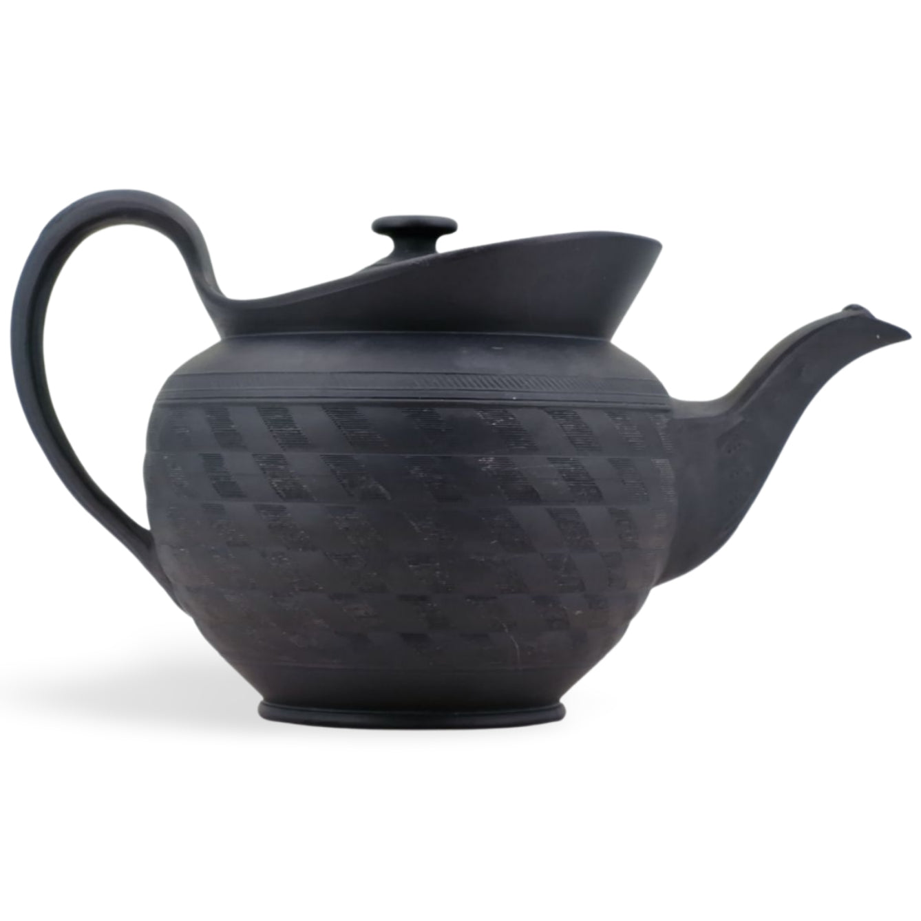 A good basalt teapot with engine-turned decoration; perhaps Leeds shape 4.