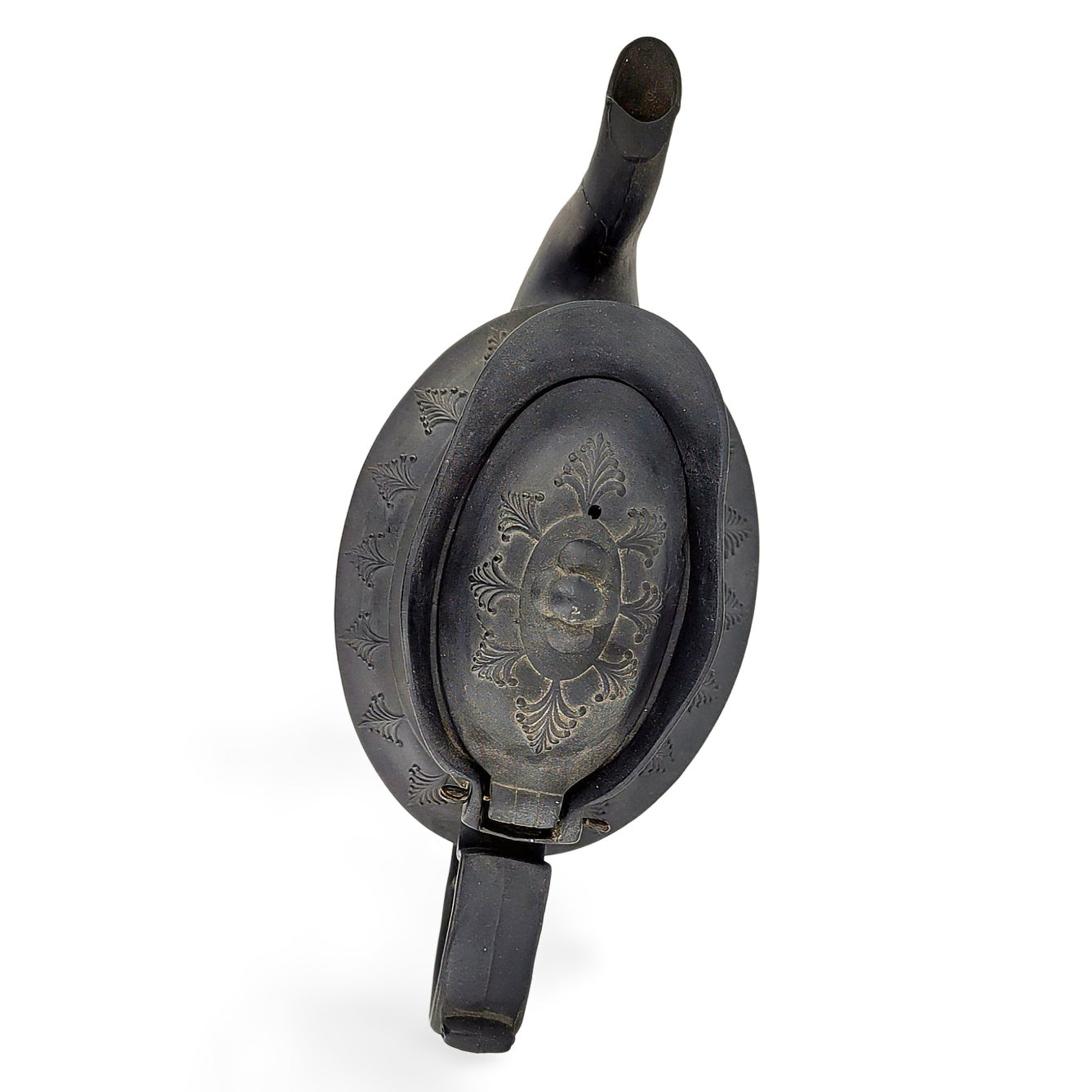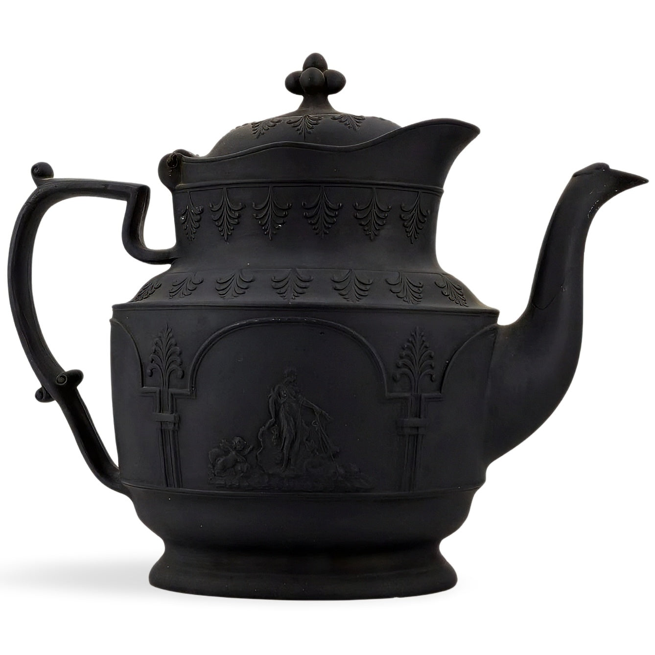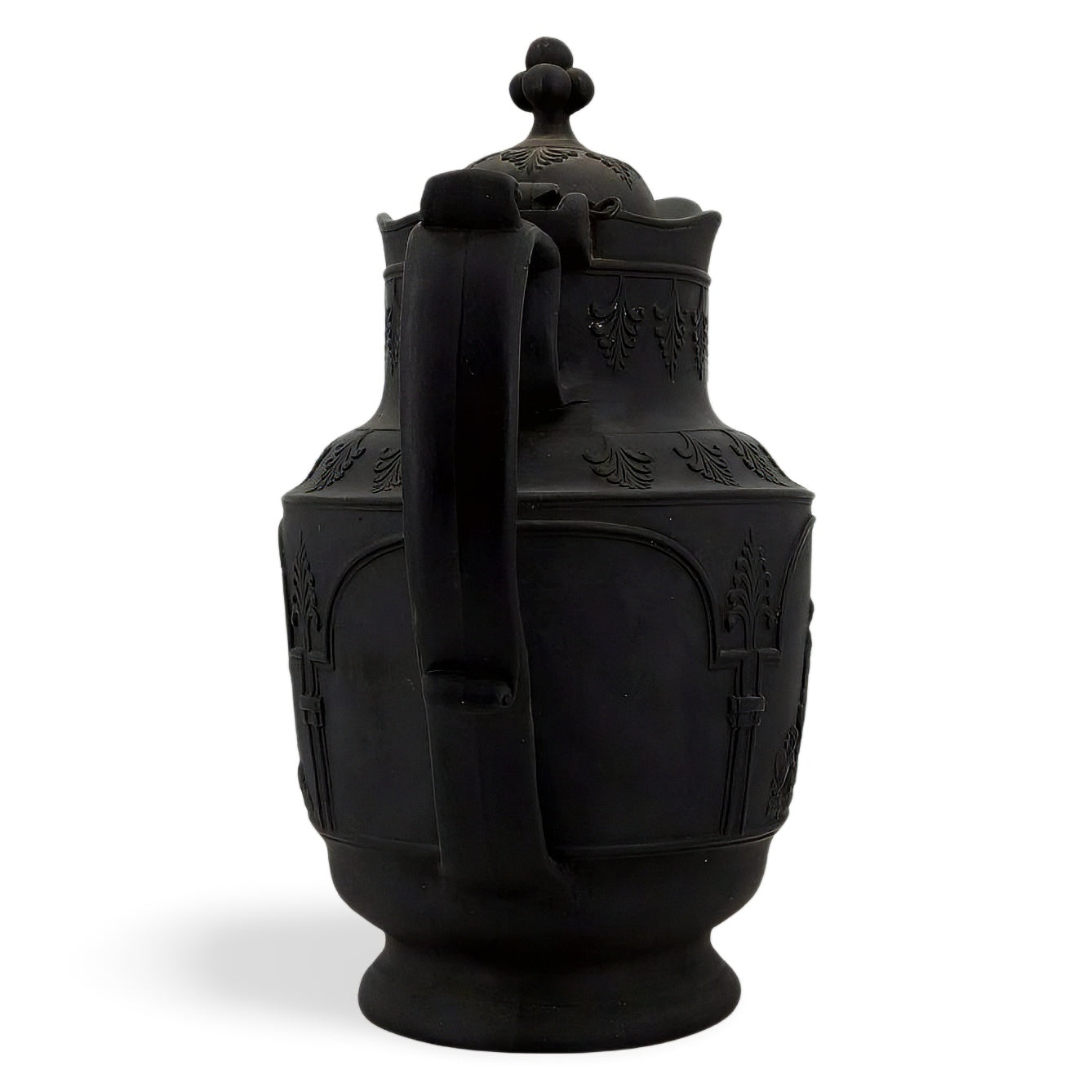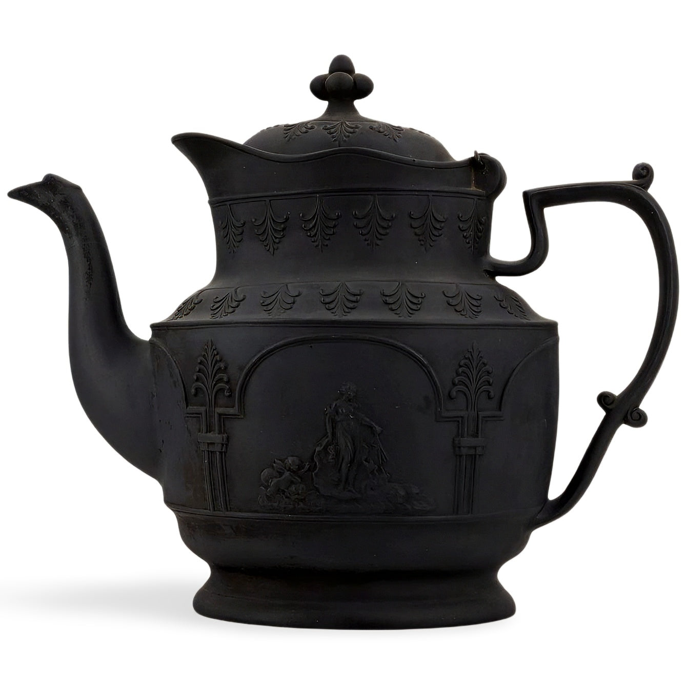 Tea, or perhaps coffee, pot with an unusual hinged lid. Possibly J Glass, though perhaps more likely Adams.
