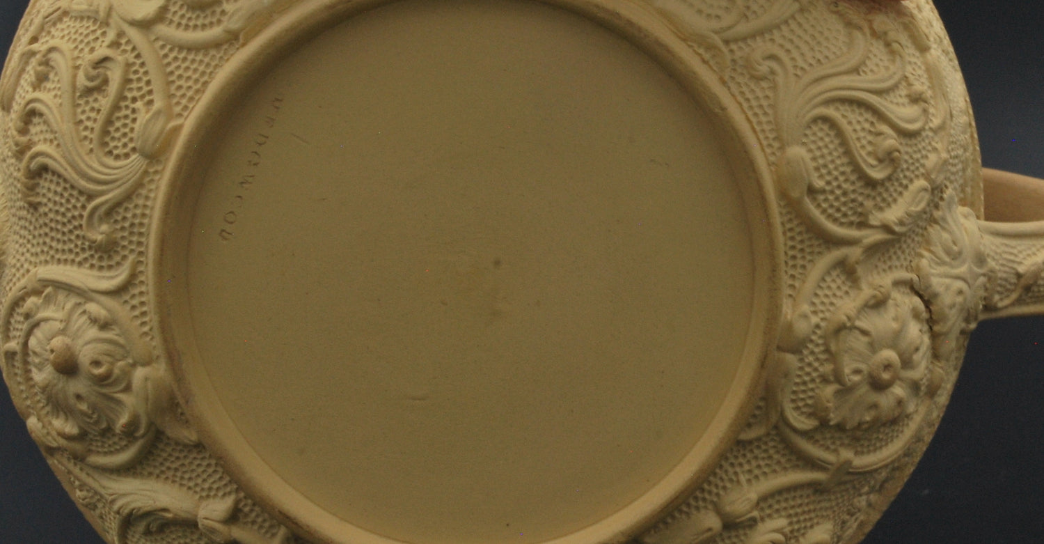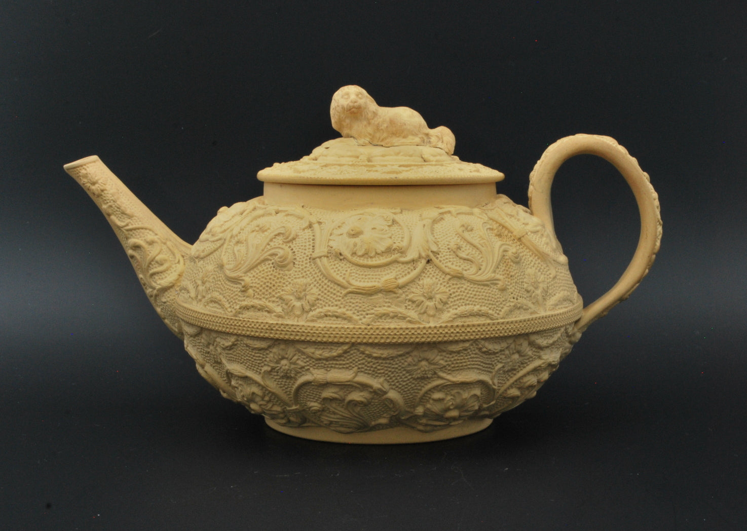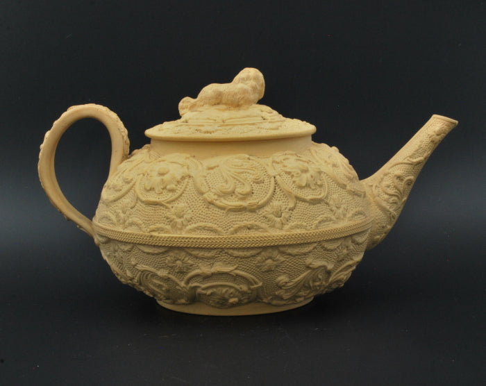 Cabeware teapot, decorated in Arabesque. Spaniel finial.