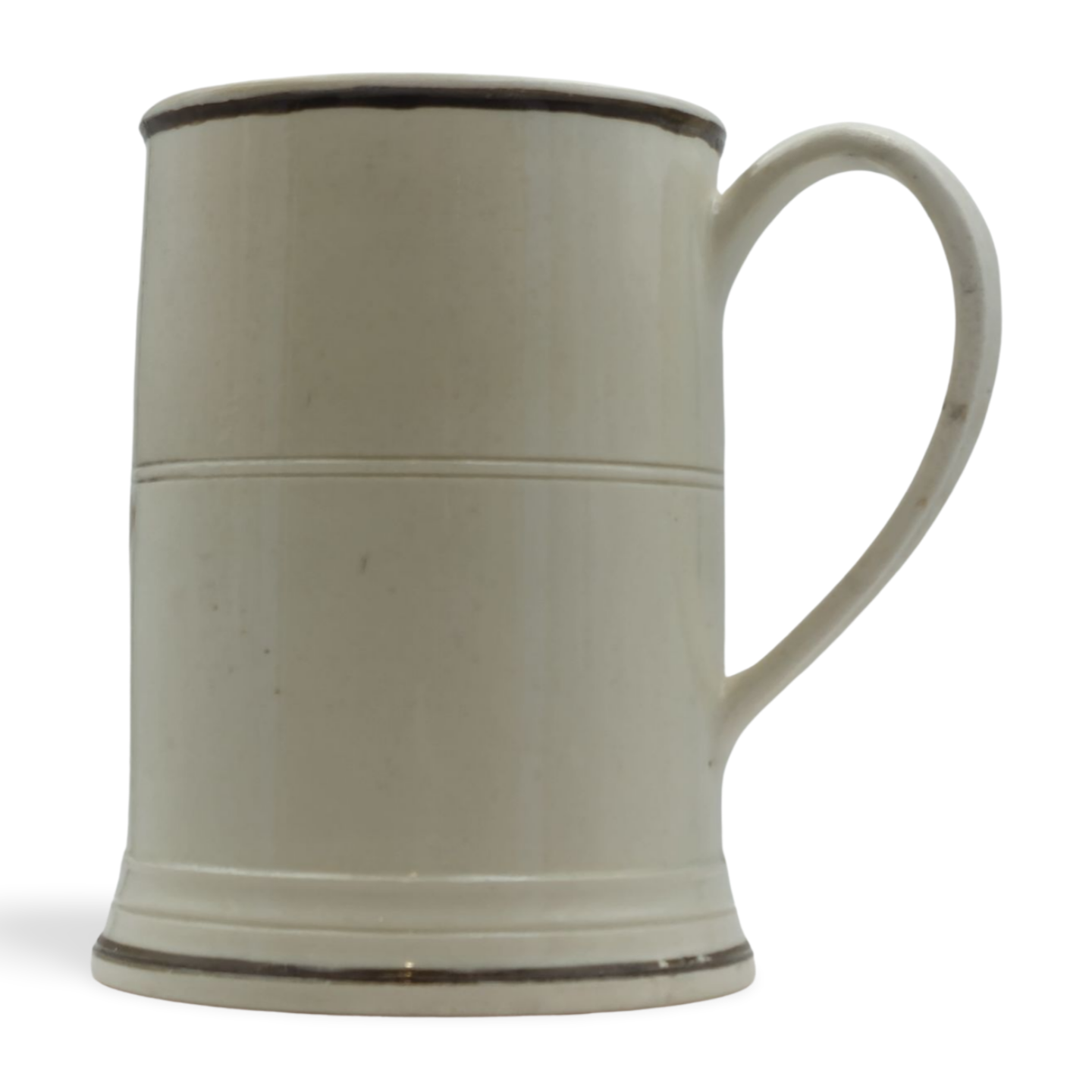 A good early creamware tankard, with a transfer print from a stippled copper plate of the Pusey Horn.