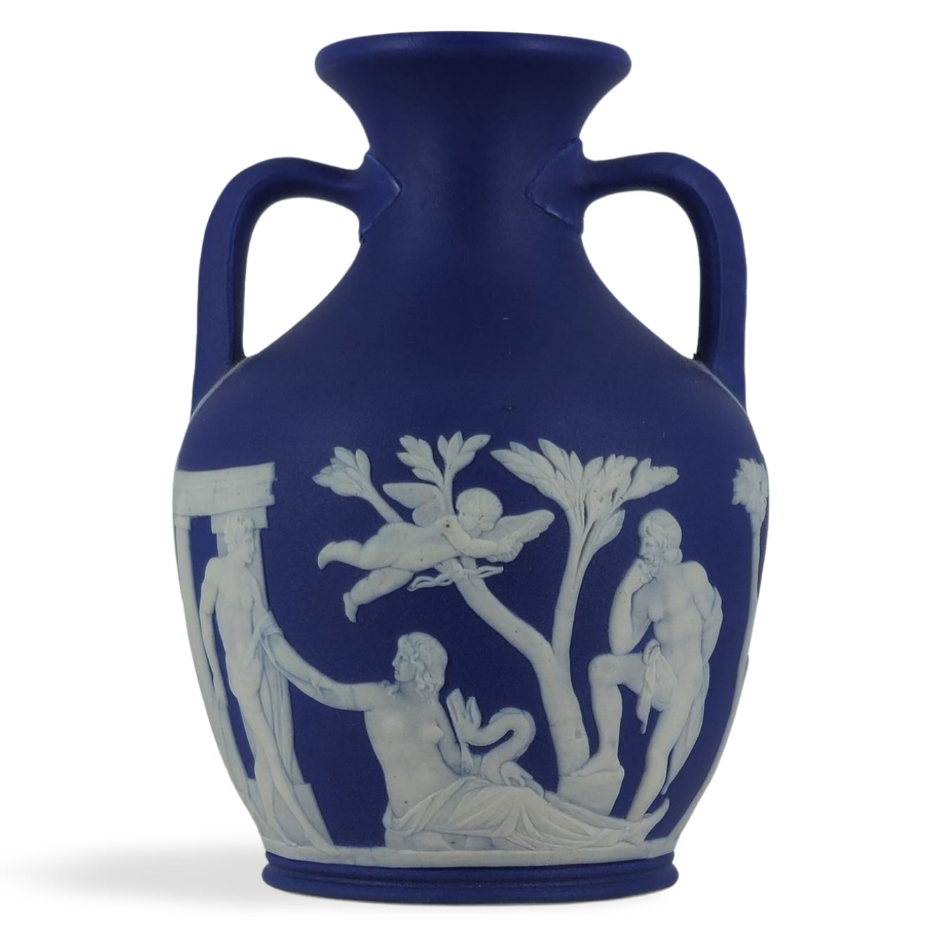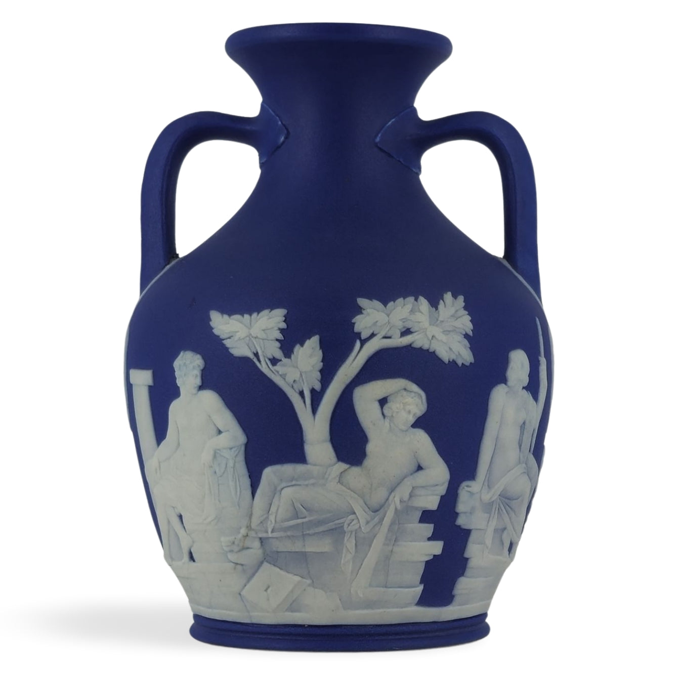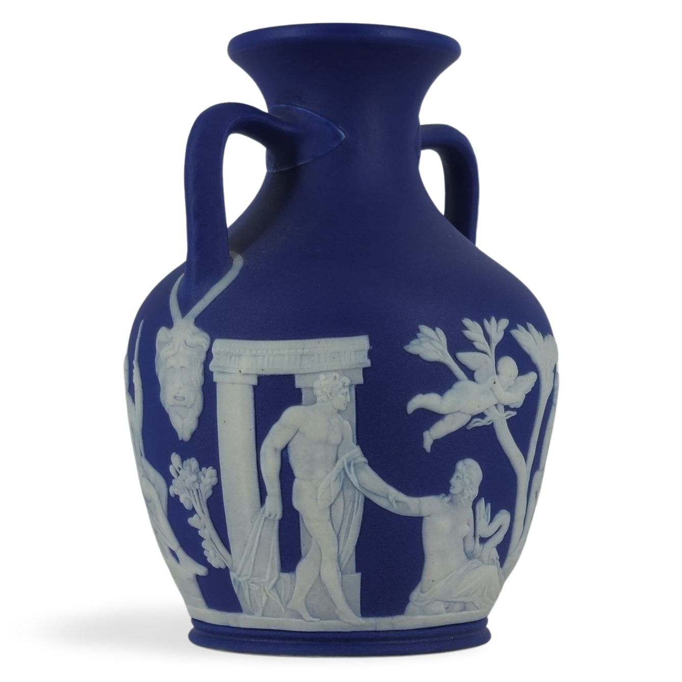 Early, small version of the Portland Vase in cobalt jasper dip. Good detail and nice translucence.