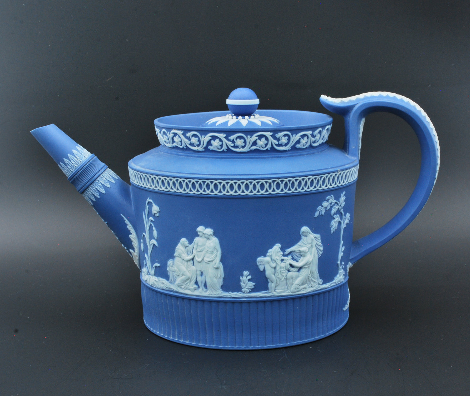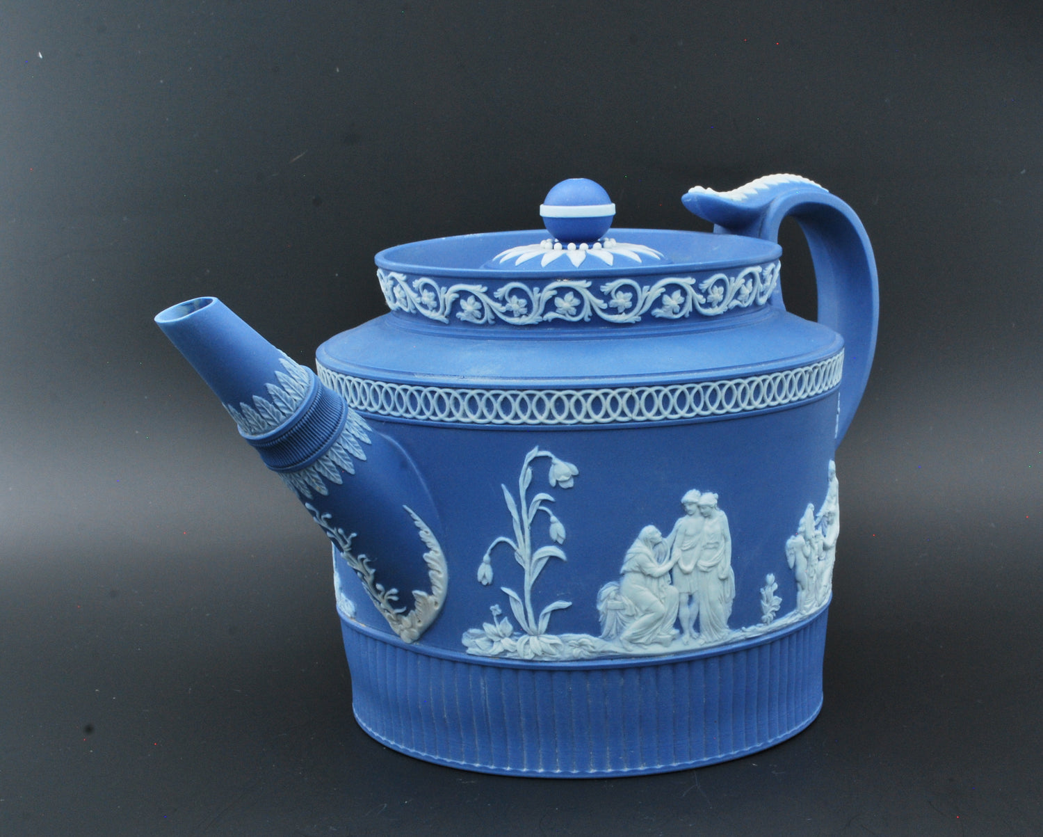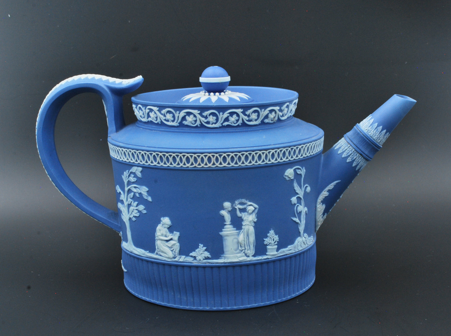 An exceptional teapot by William Adams, who was apprenticed to Josiah Wedgwood and participated in the experiments that led to the invention of jasperware.