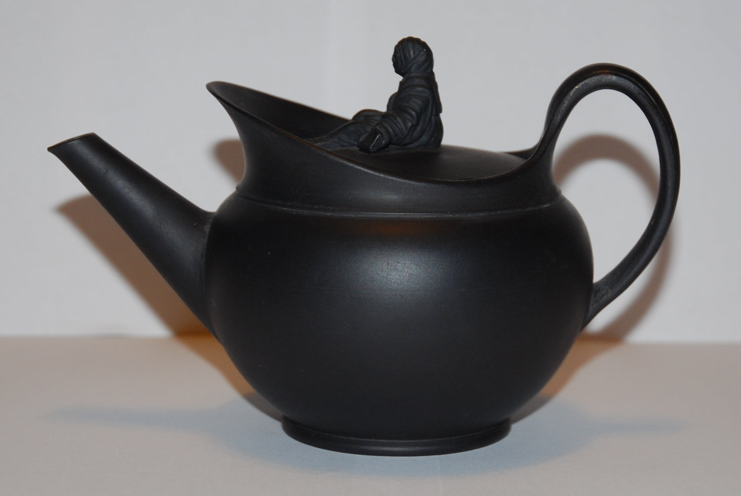 A fine small teapot in black basalt, with a cape gallery and the rare Sybil finial.