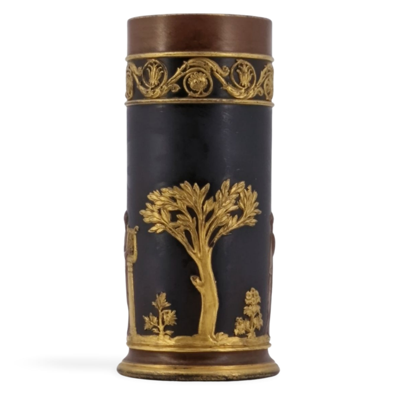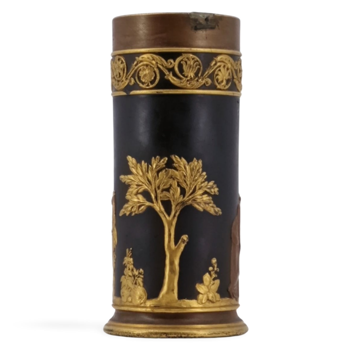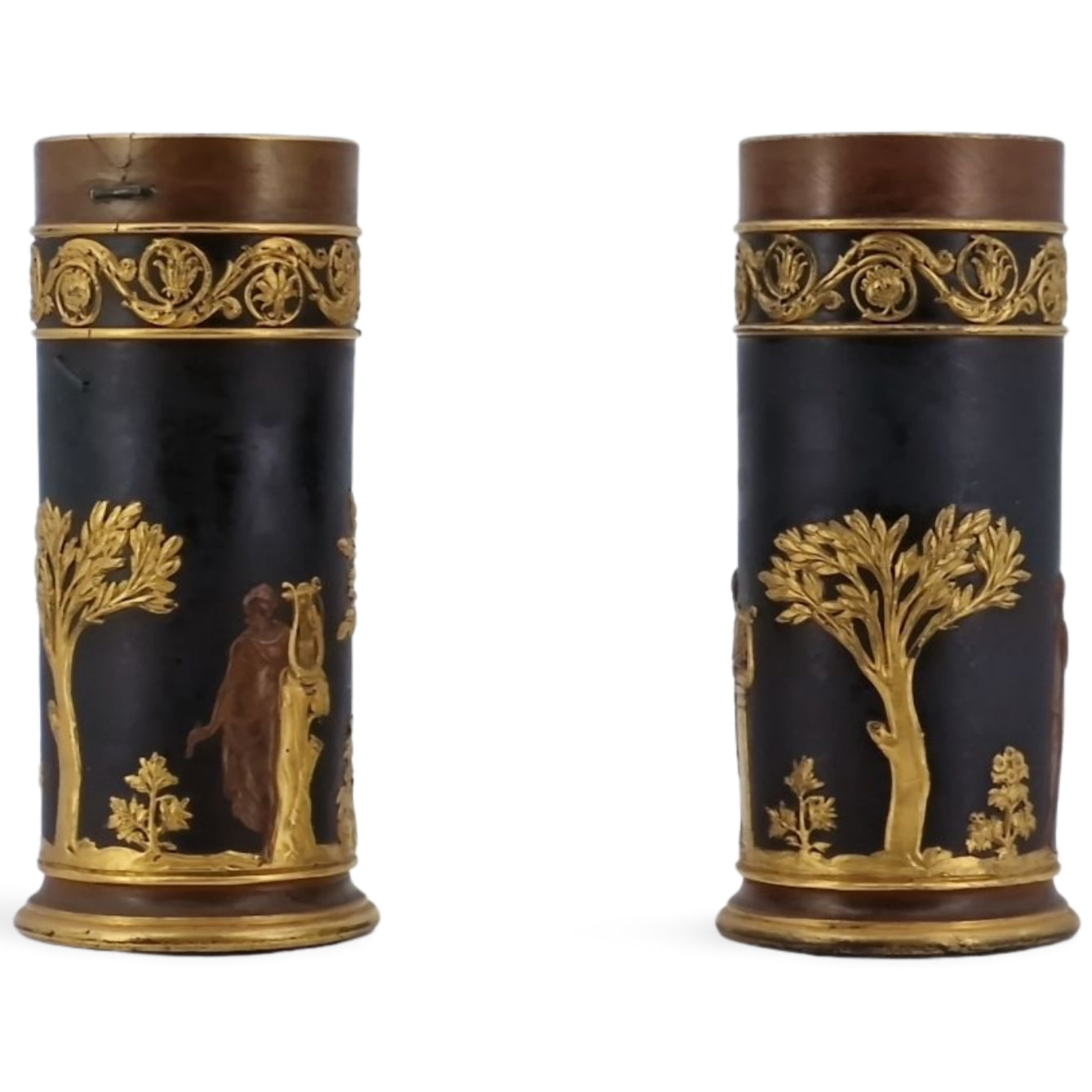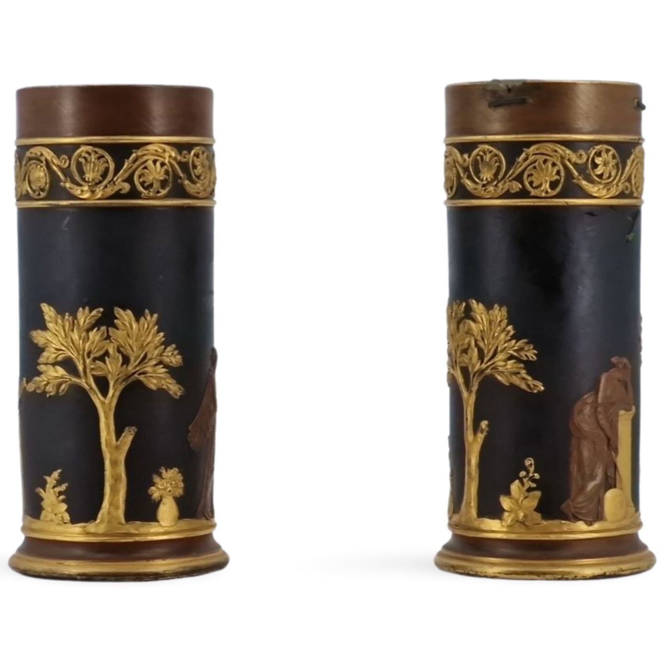 A pair of spill vases in black basalt, decorated with bronze and gilding, in imitation of Japanese bronzes.