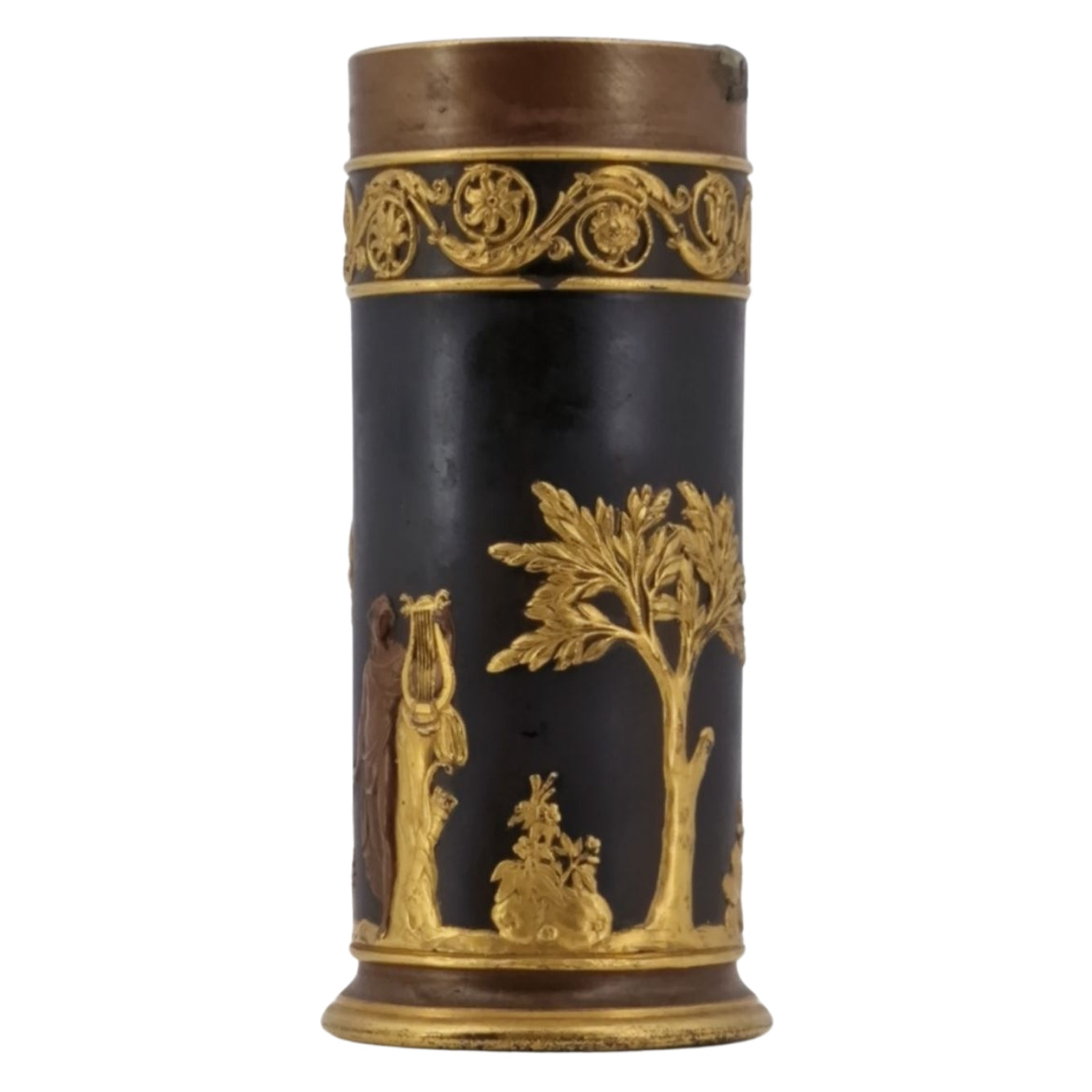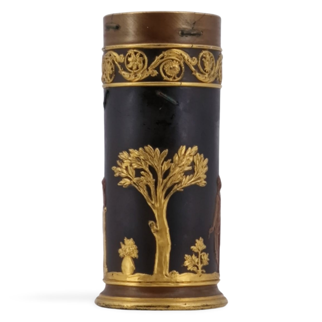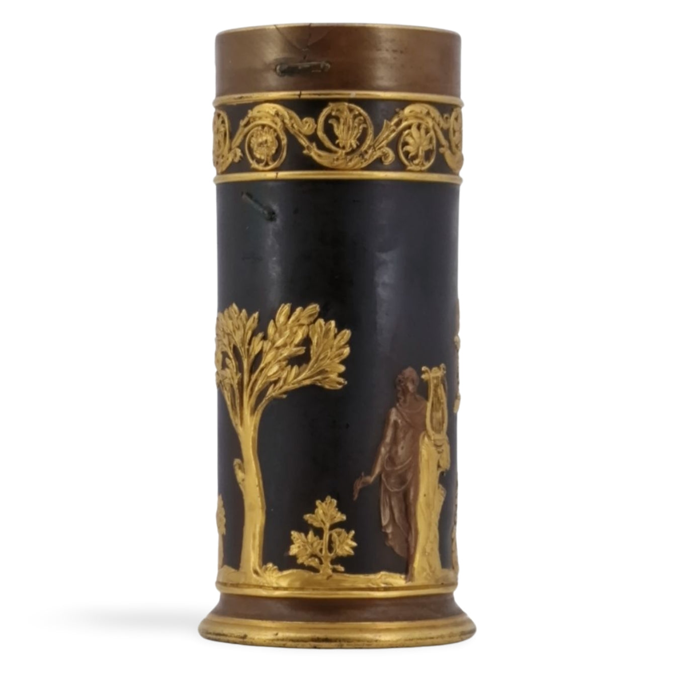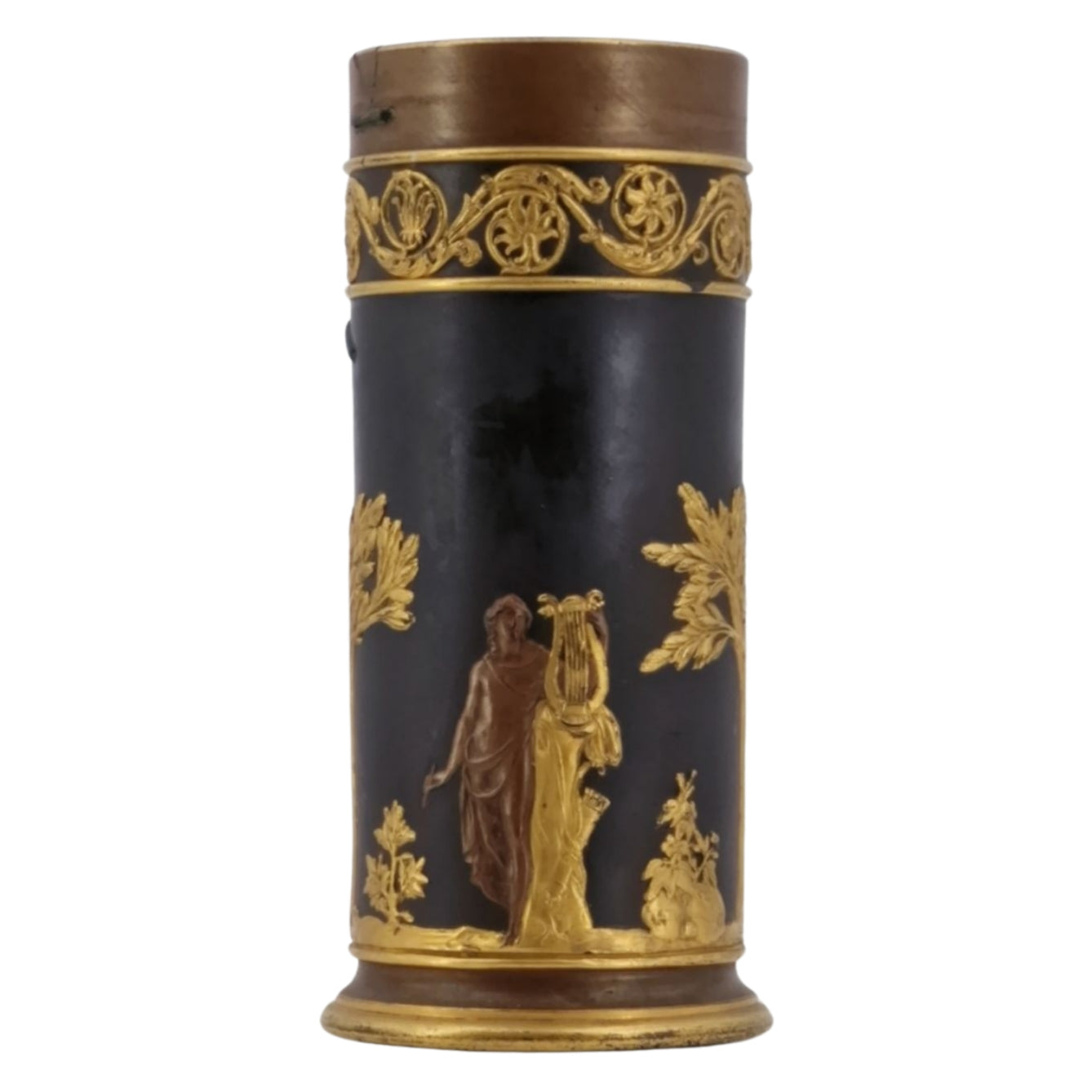 A pair of spill vases in black basalt, decorated with bronze and gilding, in imitation of Japanese bronzes.