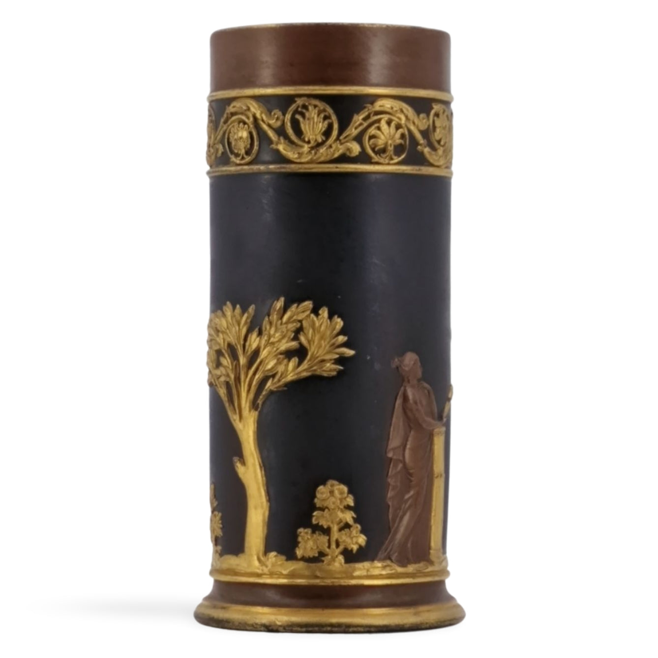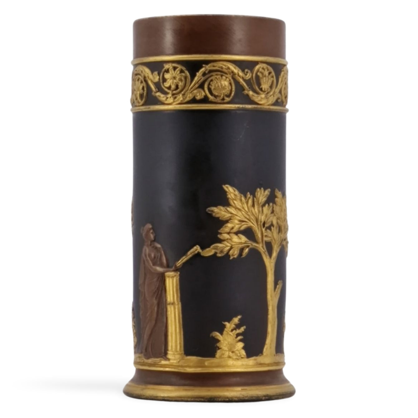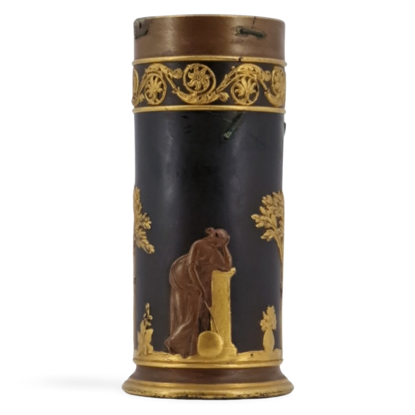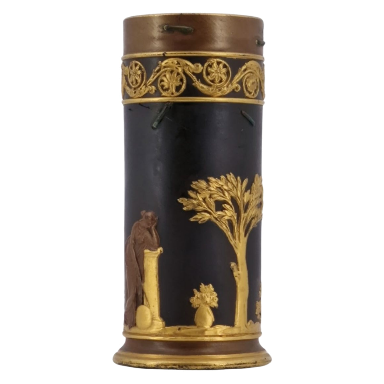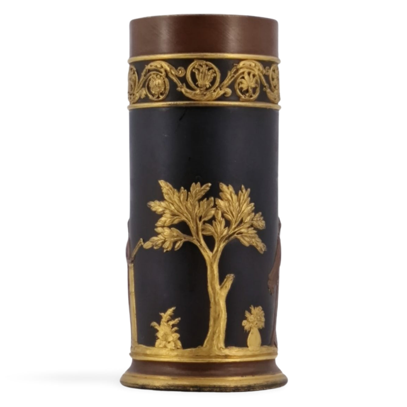 A pair of spill vases in black basalt, decorated with bronze and gilding, in imitation of Japanese bronzes.