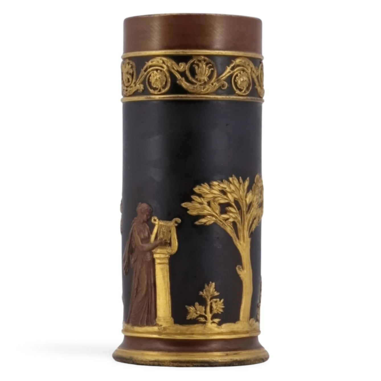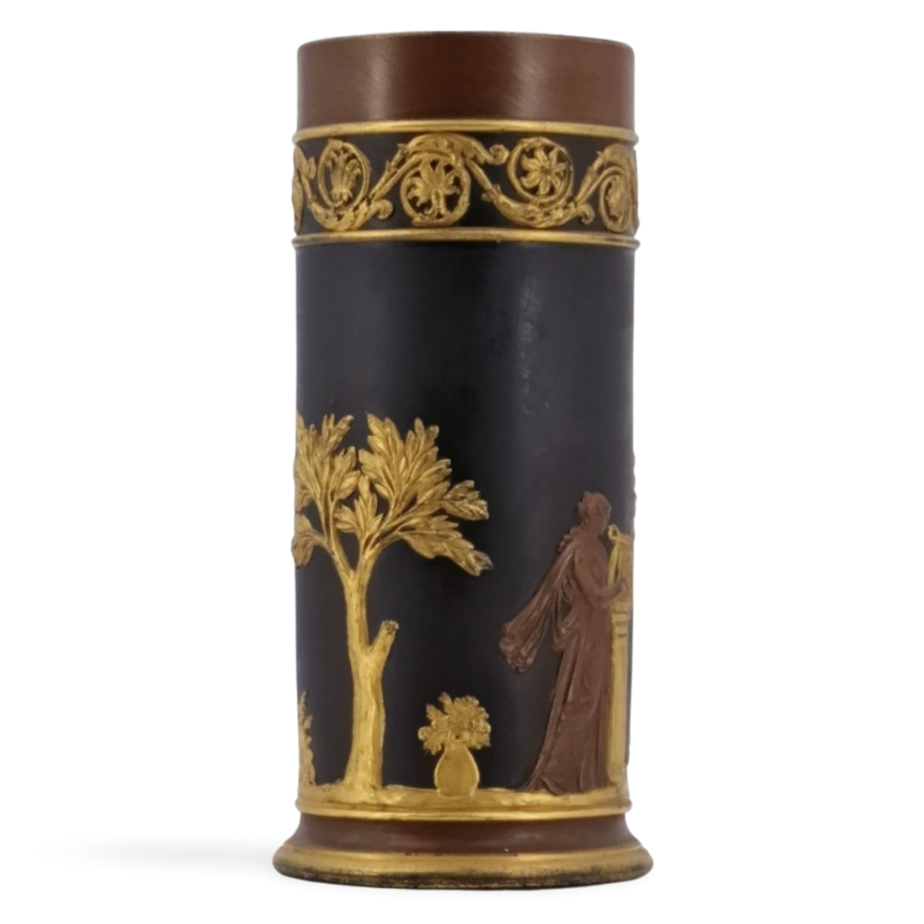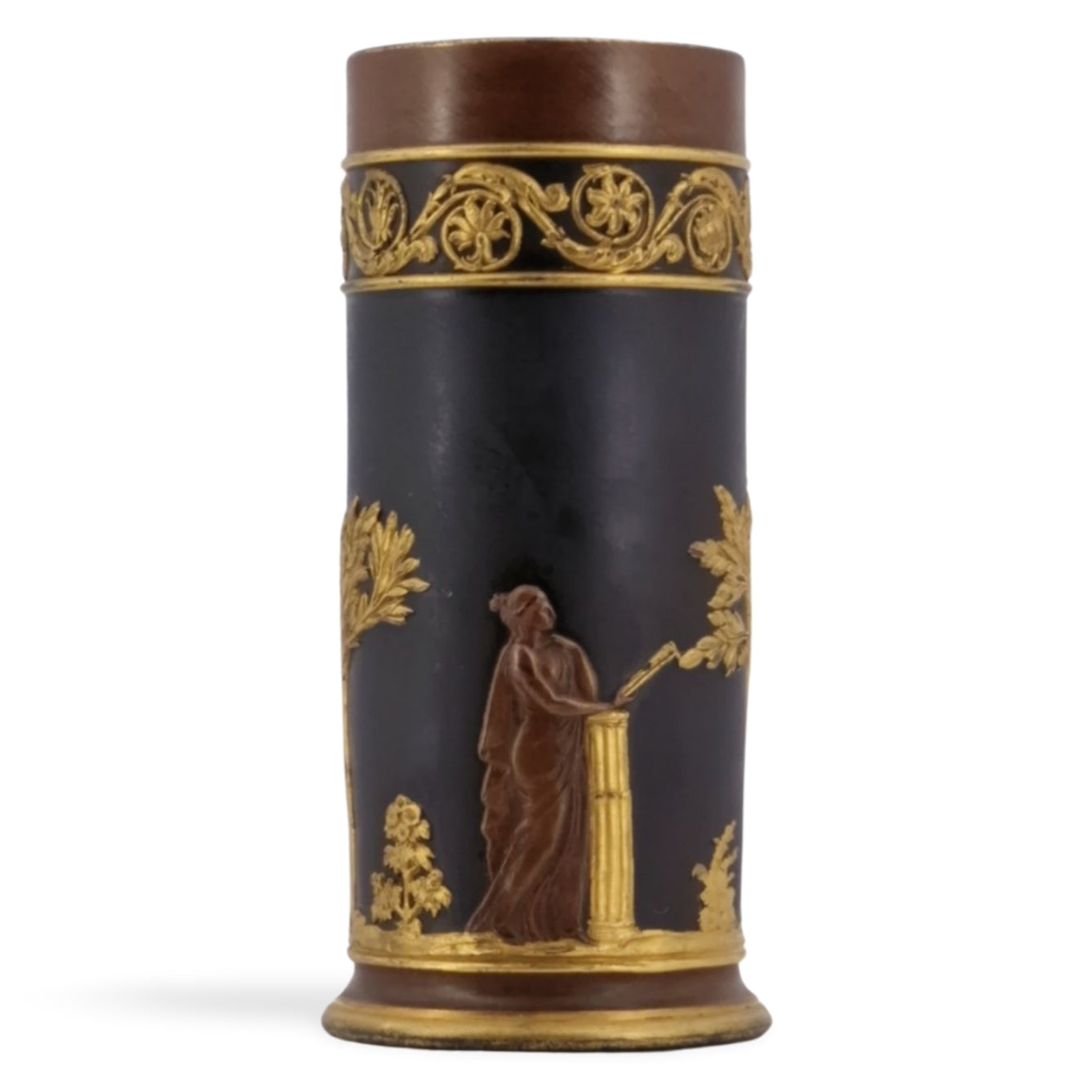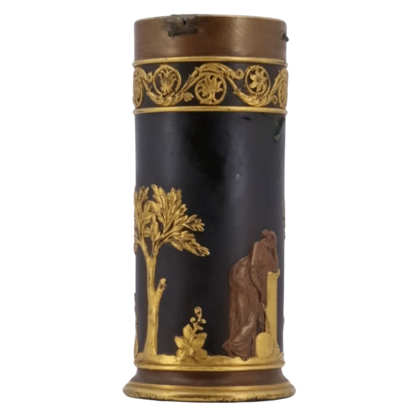 A pair of spill vases in black basalt, decorated with bronze and gilding, in imitation of Japanese bronzes.