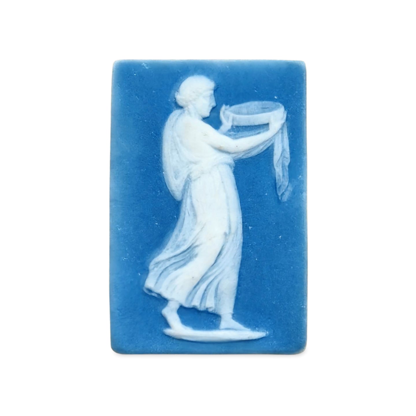 Miniature double-sided medallion in cobalt jasper:Tuccia with her sieve, and Tuccia carrying water on her sieve.