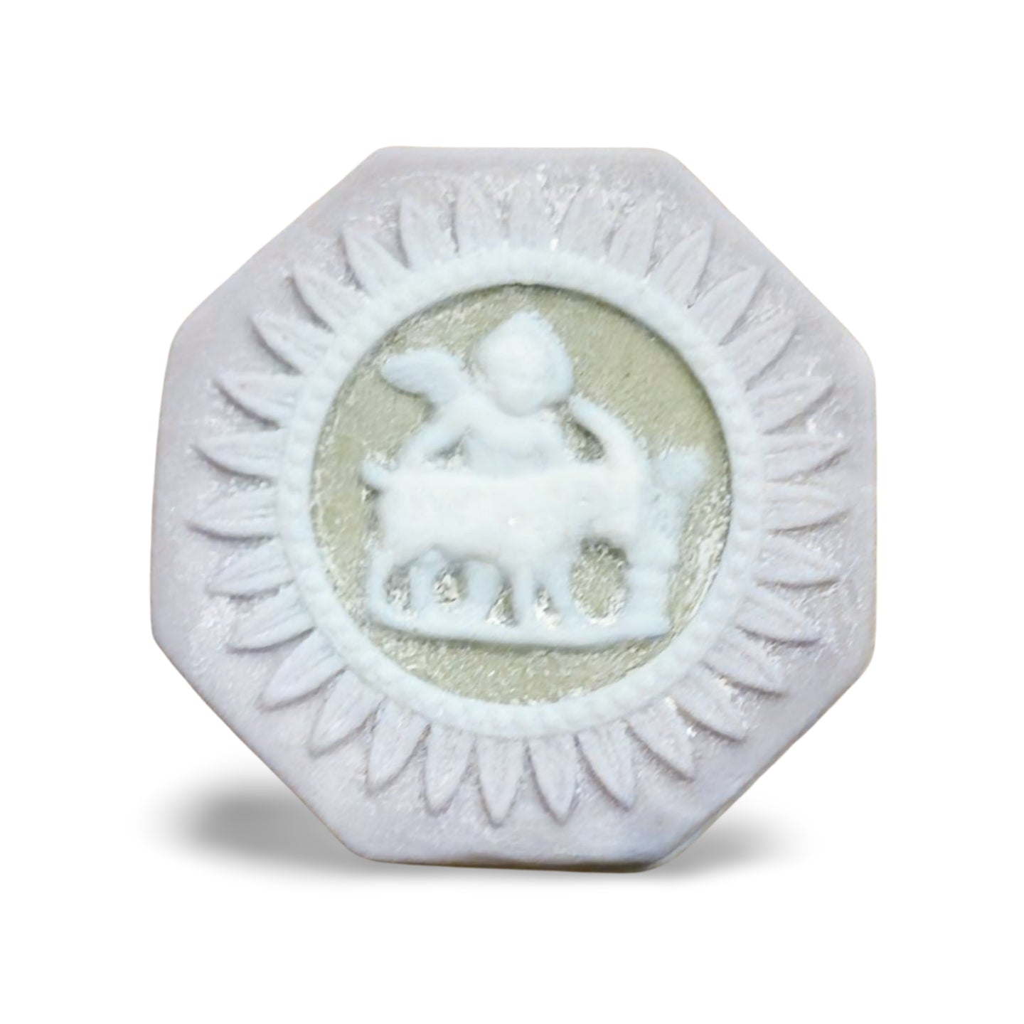 Miniature double-sided medallion in tricolour jasper: Cupid sacrificing a goat; Cupid playing the double flute