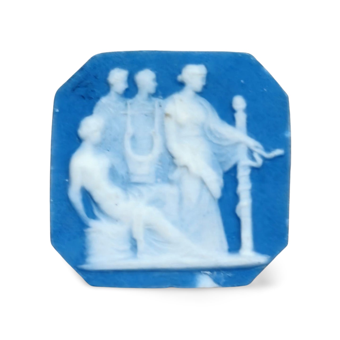 Miniature double-sided medallion in cobalt jasper: Cupid playing the Lyre; Psyche
