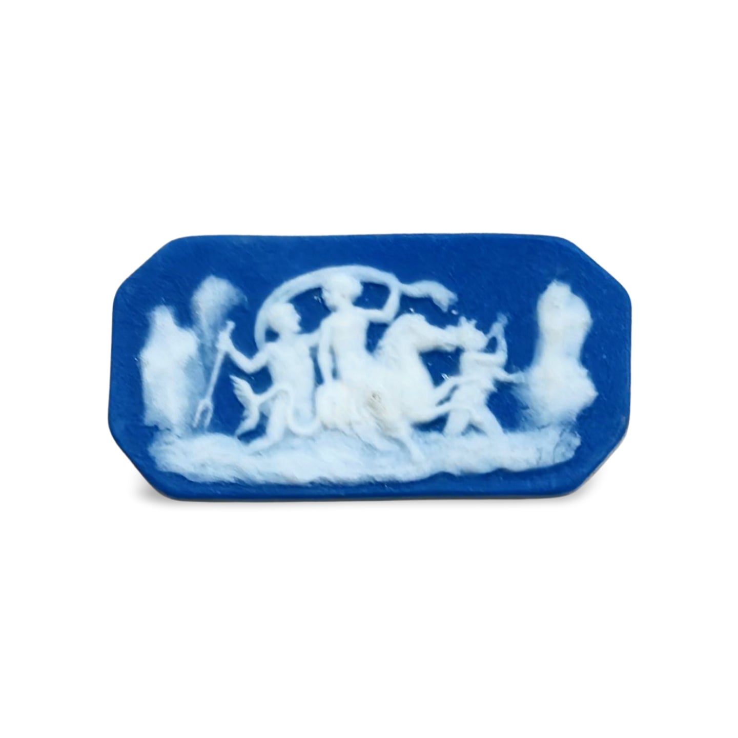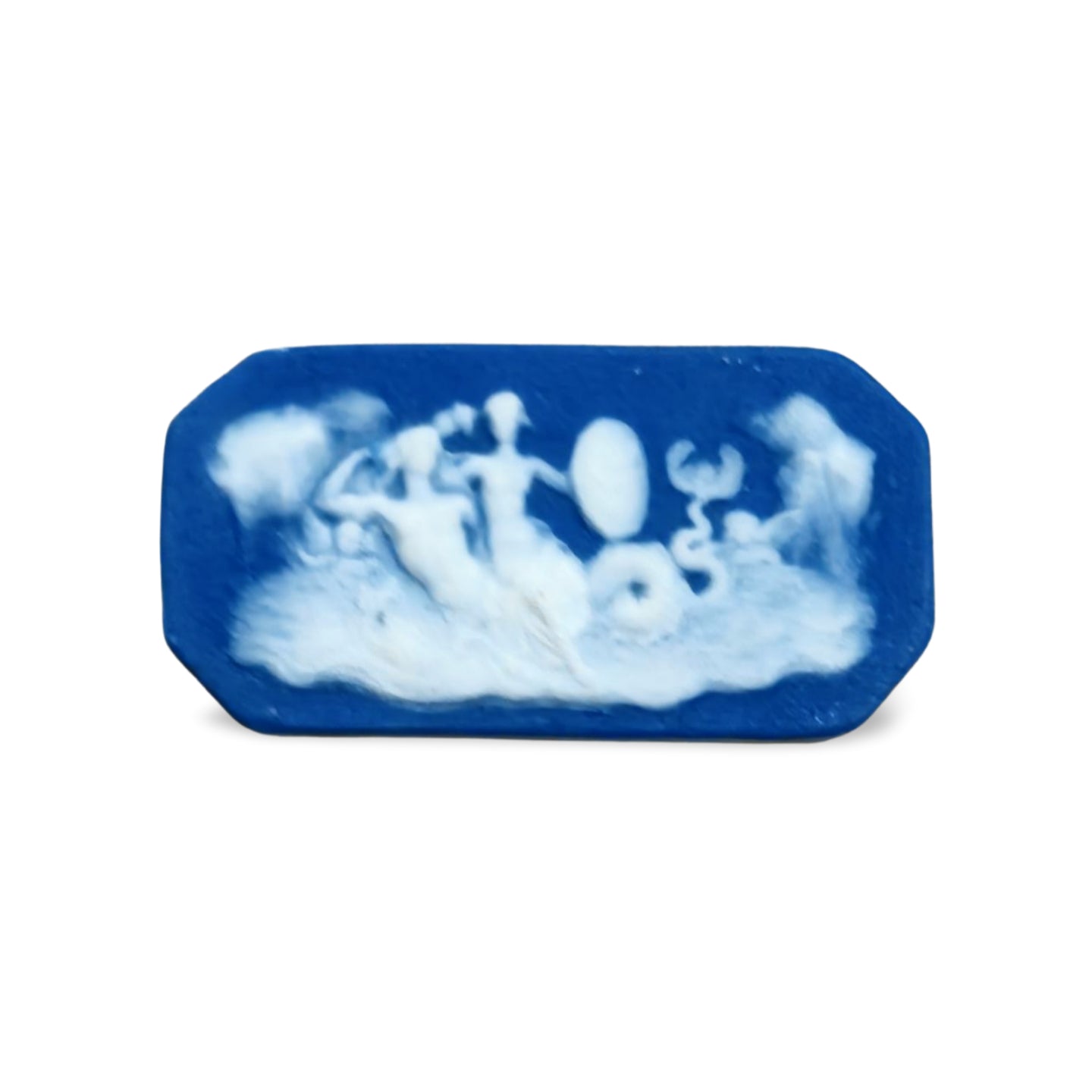 Miniature double-sided medallion in cobalt jasper: Amitrite and Nereids; Amphitrite with Neptune, sea horse, Triton