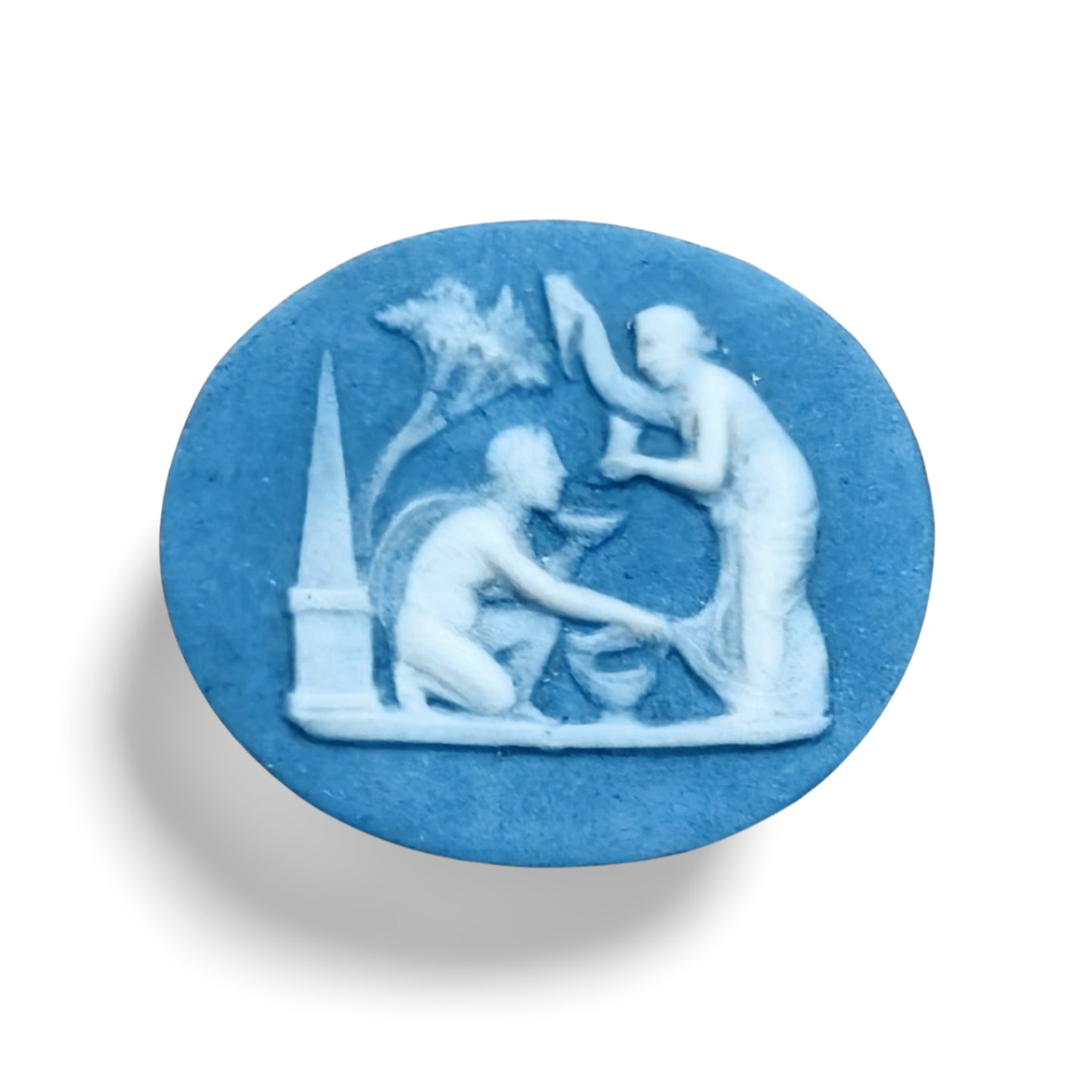 Miniature medallion in cobalt jasper: Sacrifice at a grave