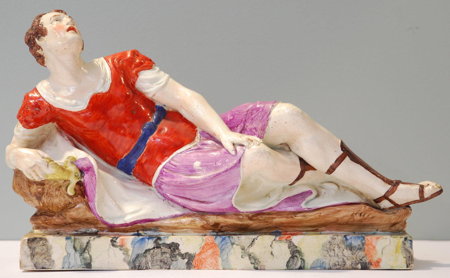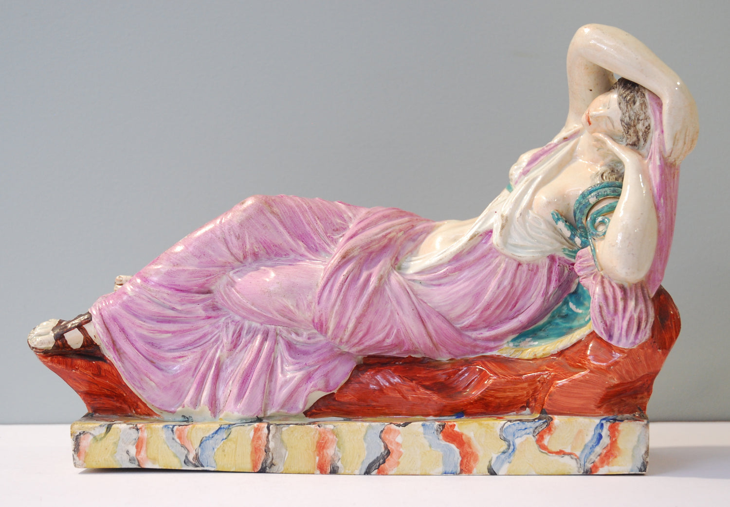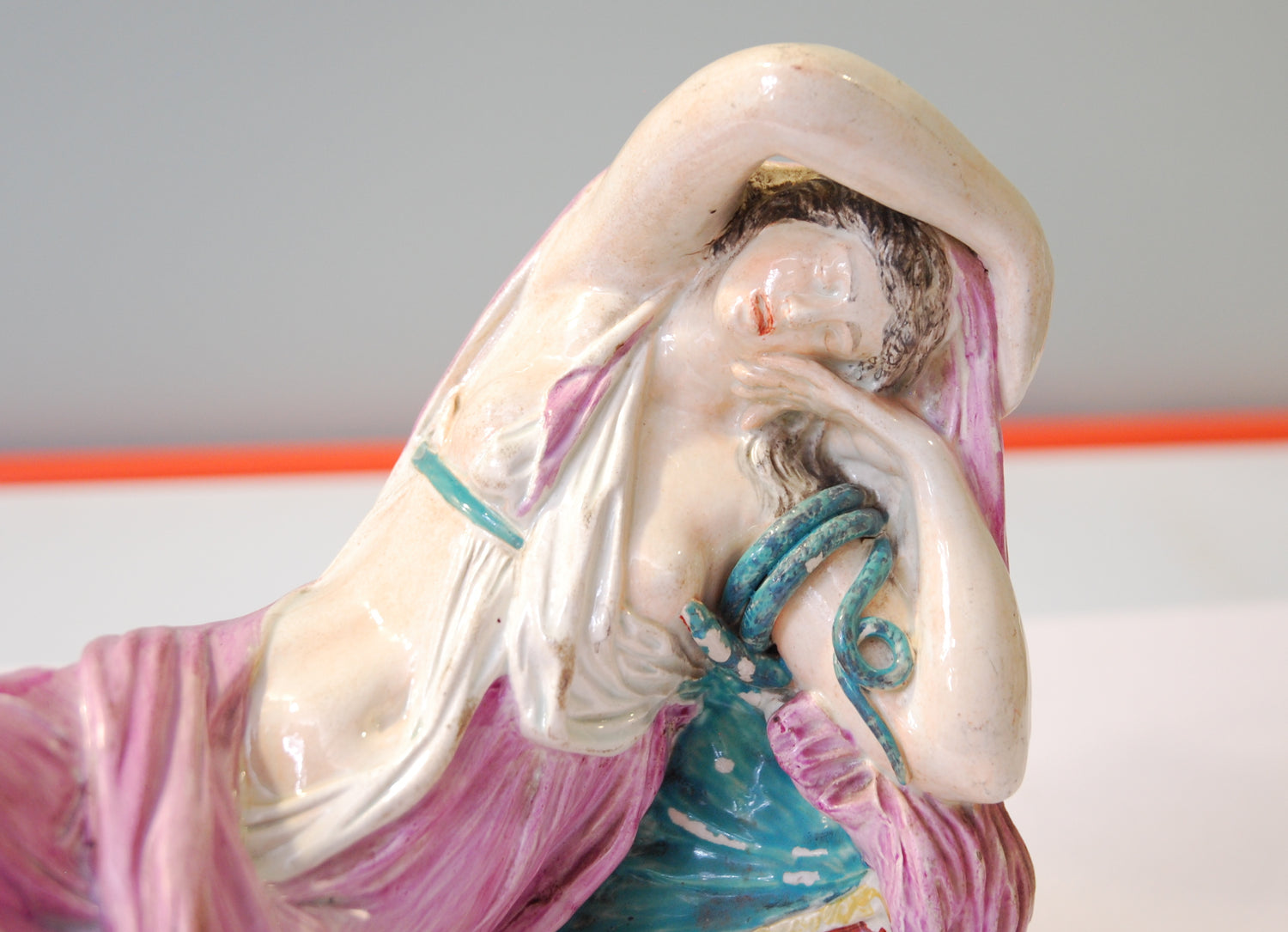 Cleopatra and Mark Antony, in enamelled creamware. After a model by Ralph and Enoch Wood, and quite likely made by this important partnership. A good, early pair in fine condition.