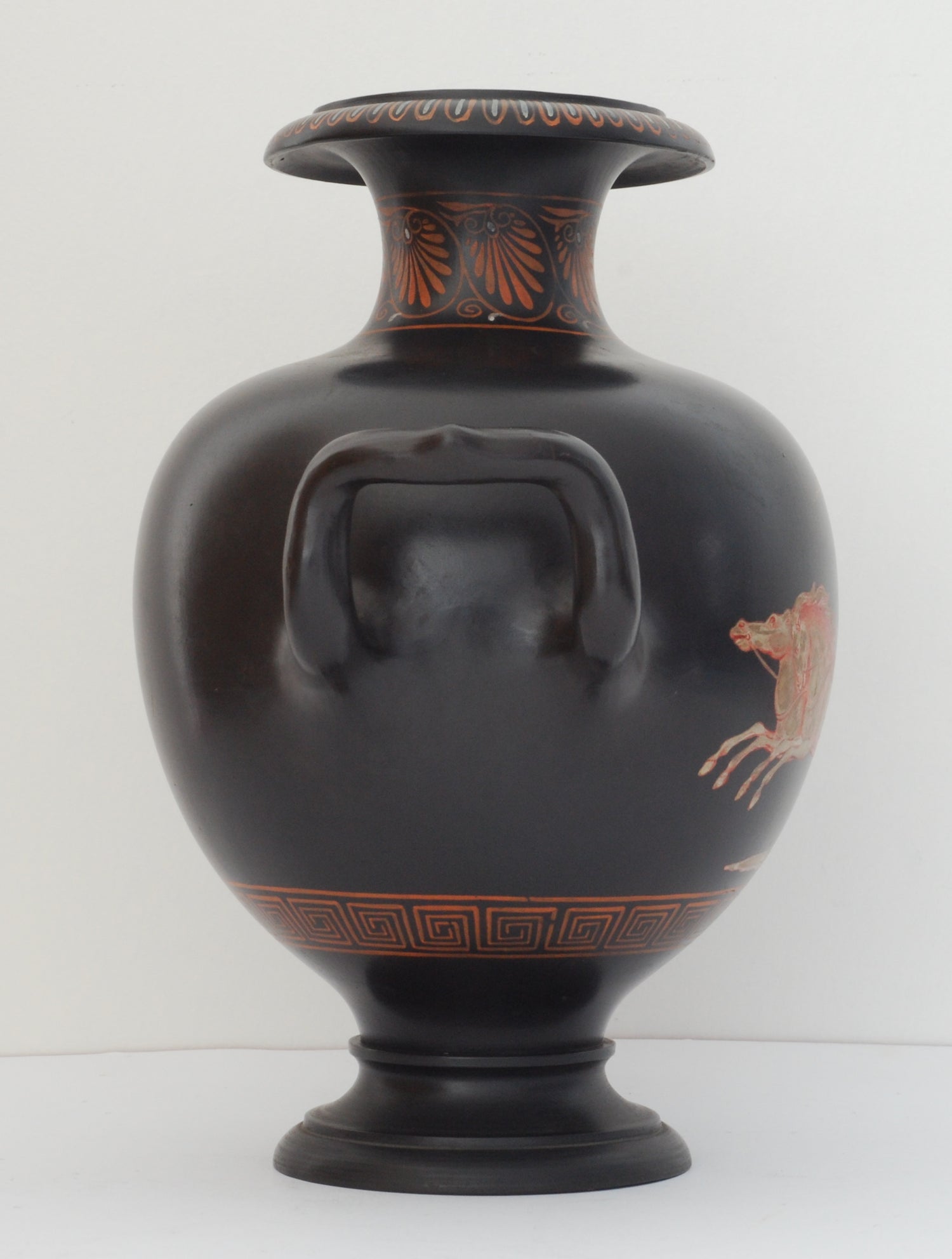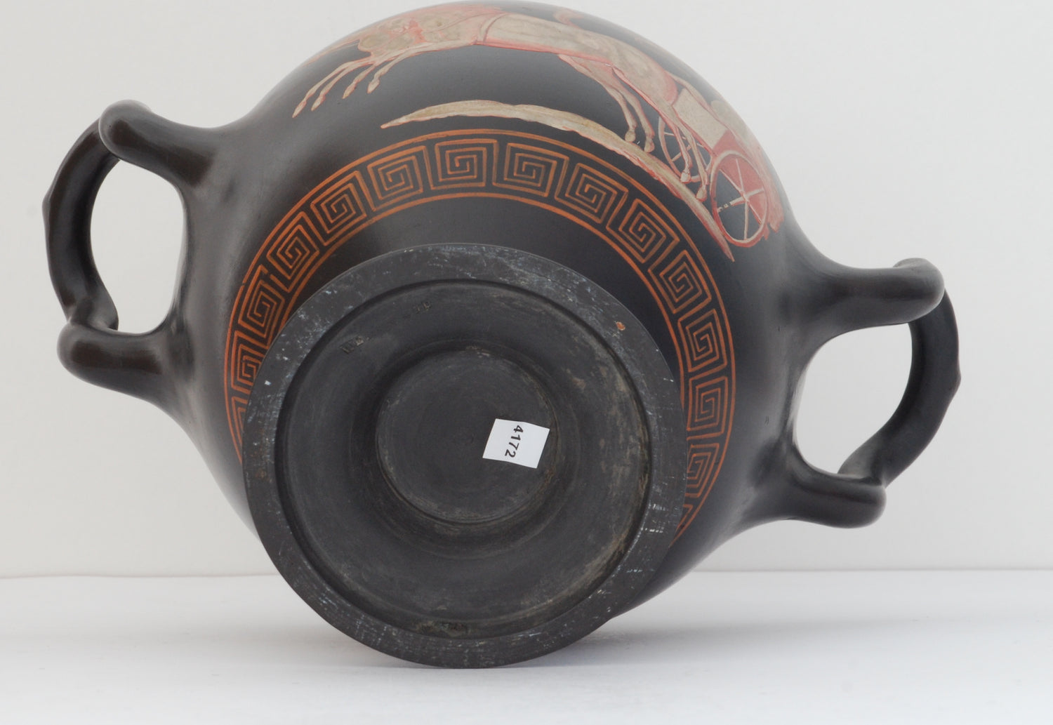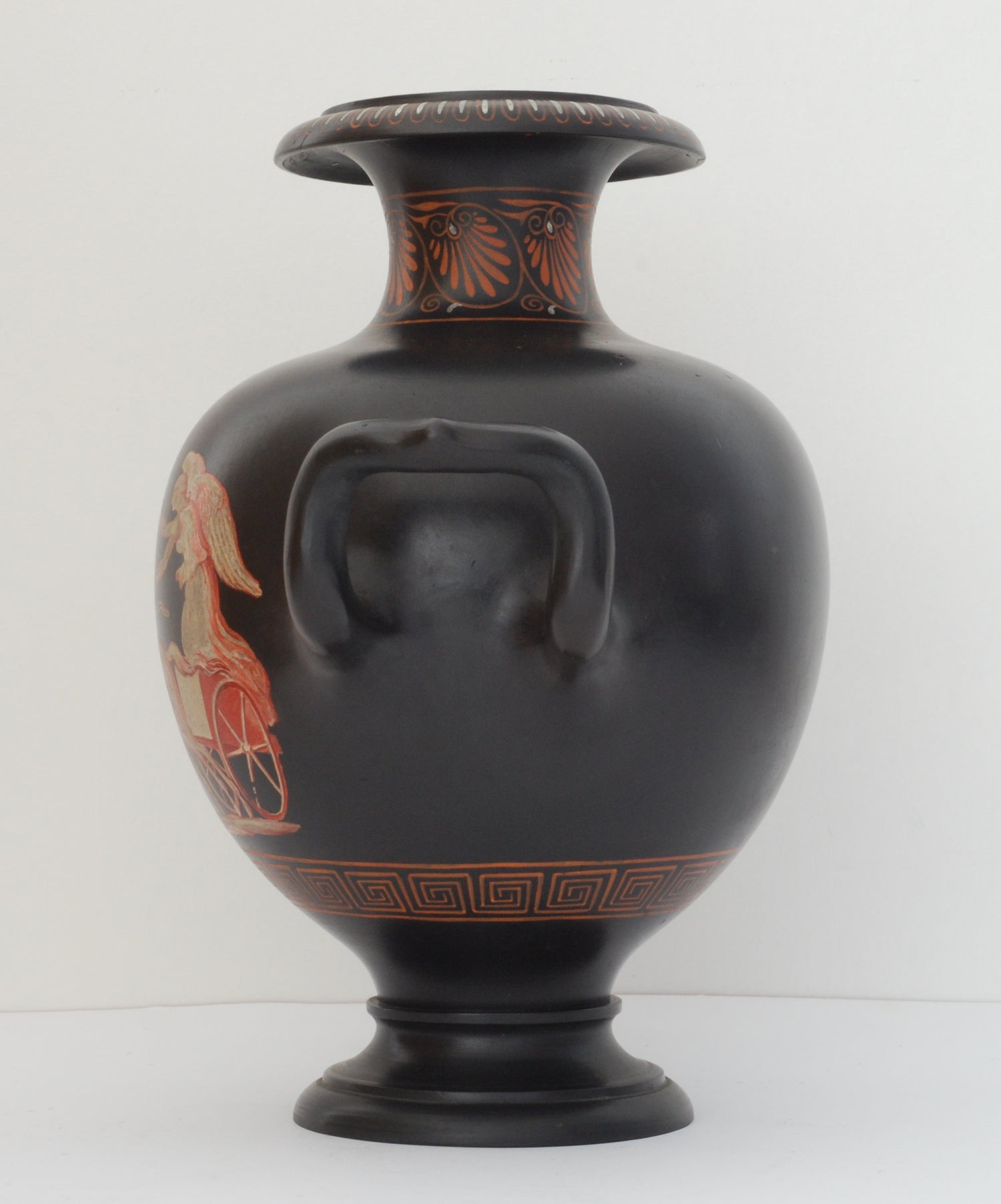 Polished basalt, decorated with Victoria (Nike), Goddess of Victory, in her chariot; possibly after a Roman model such as the wall paintings at Herculaneum.