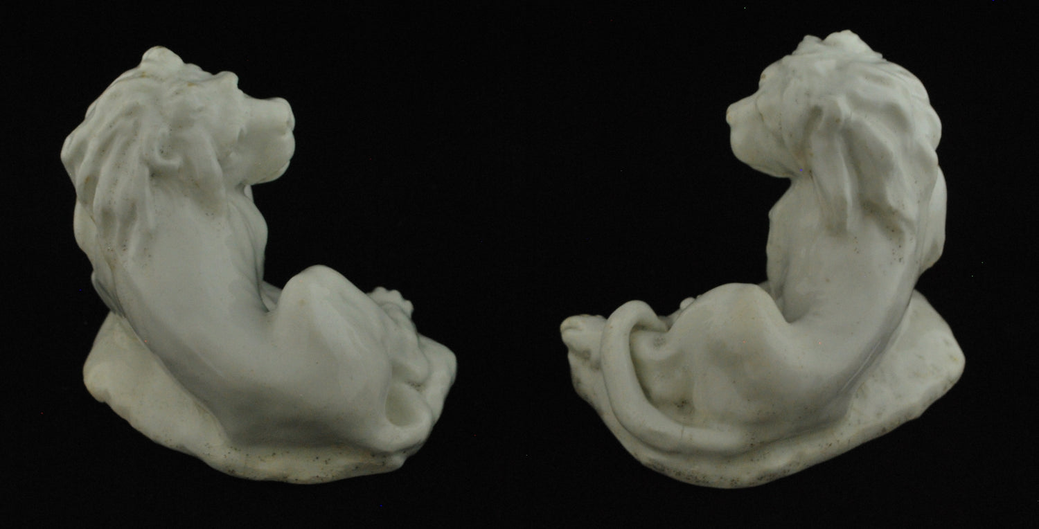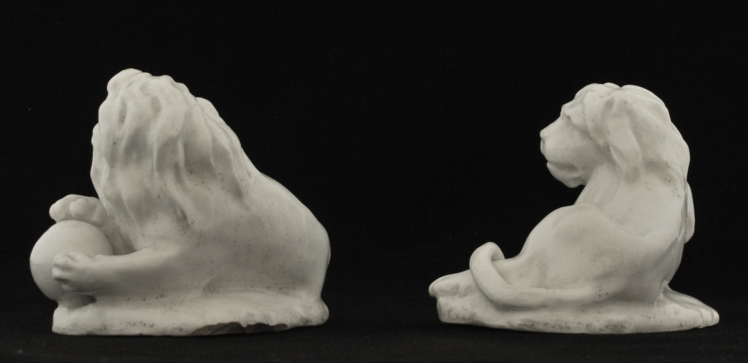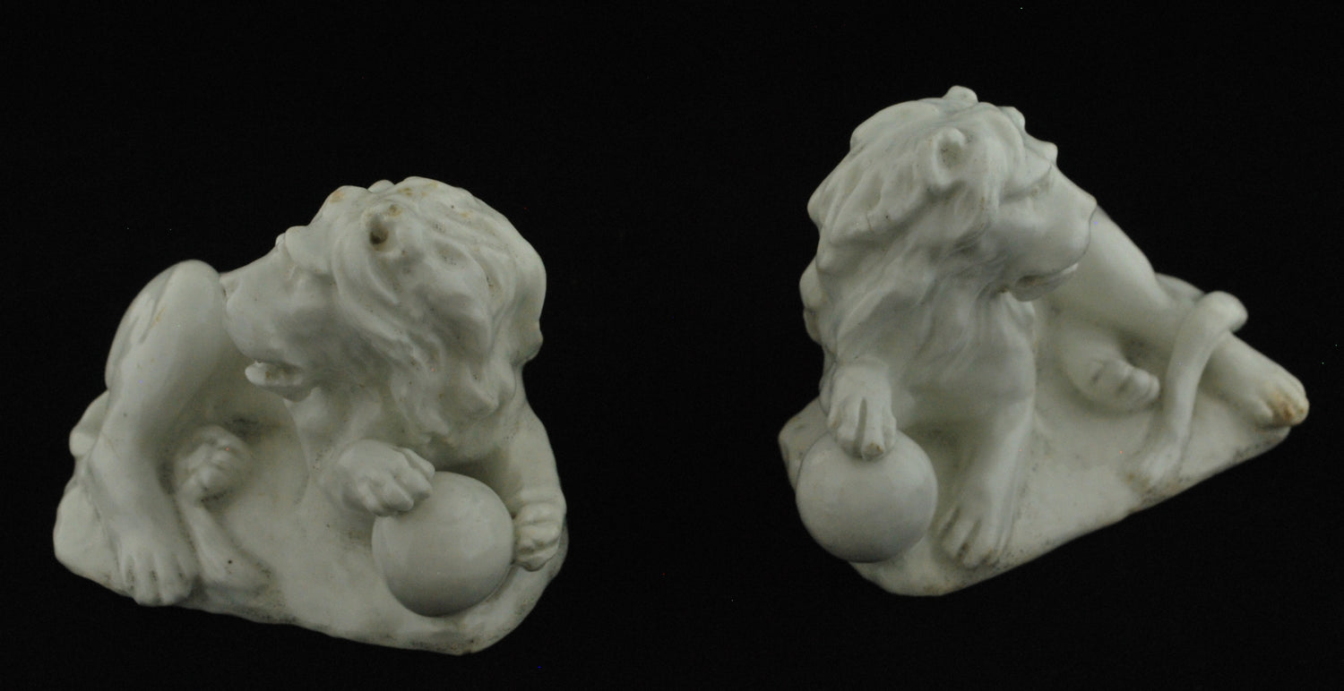 Most lion figures were apparently in the white although enamelled versions are known, some depicting the globes with geographic ‘details’ in colours: see Katz Collection, MFA, Boston, as circa 1752, #1988.588.
