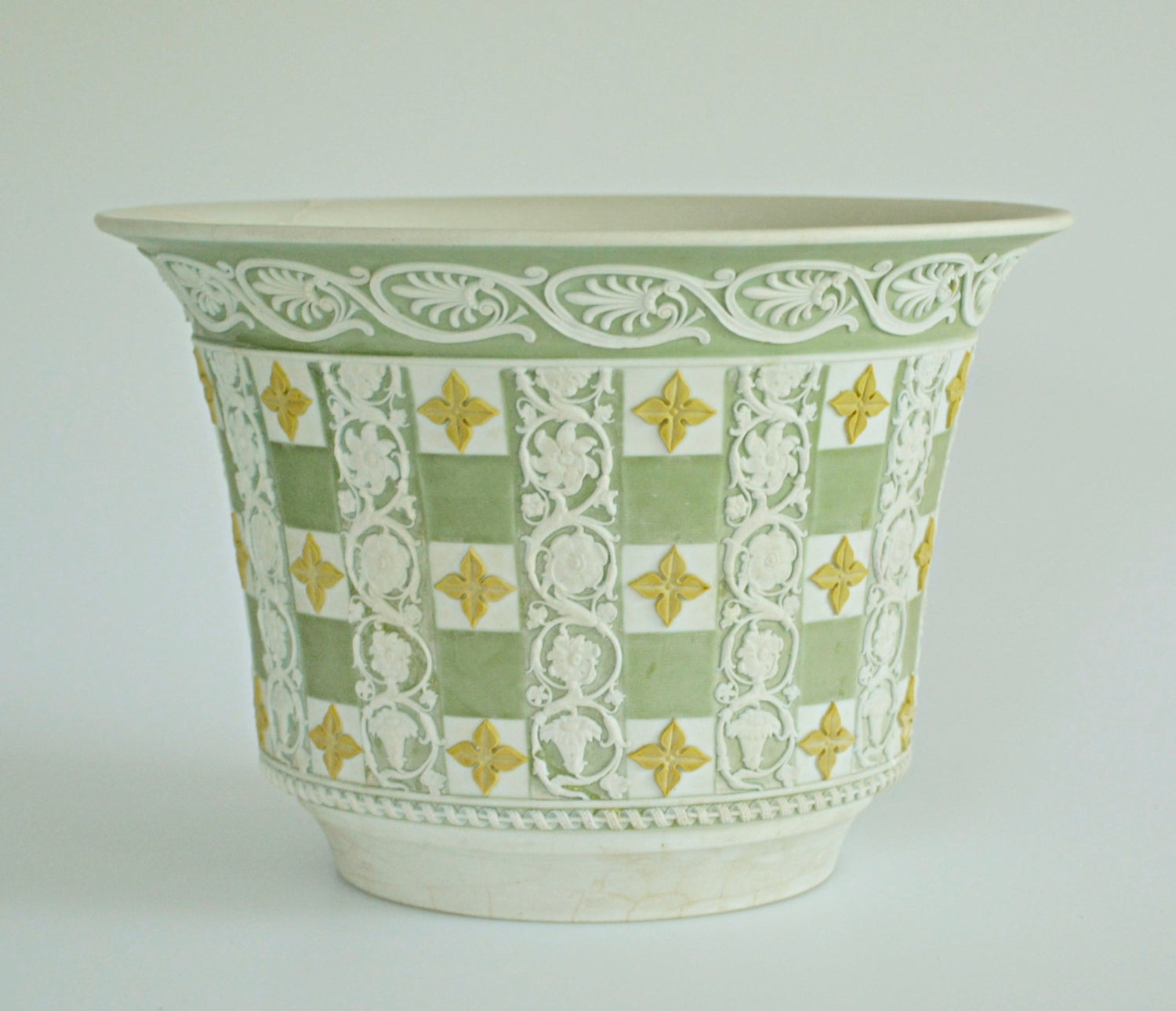 An early tricolour, engine-turned flower-pot, or cache-pot.