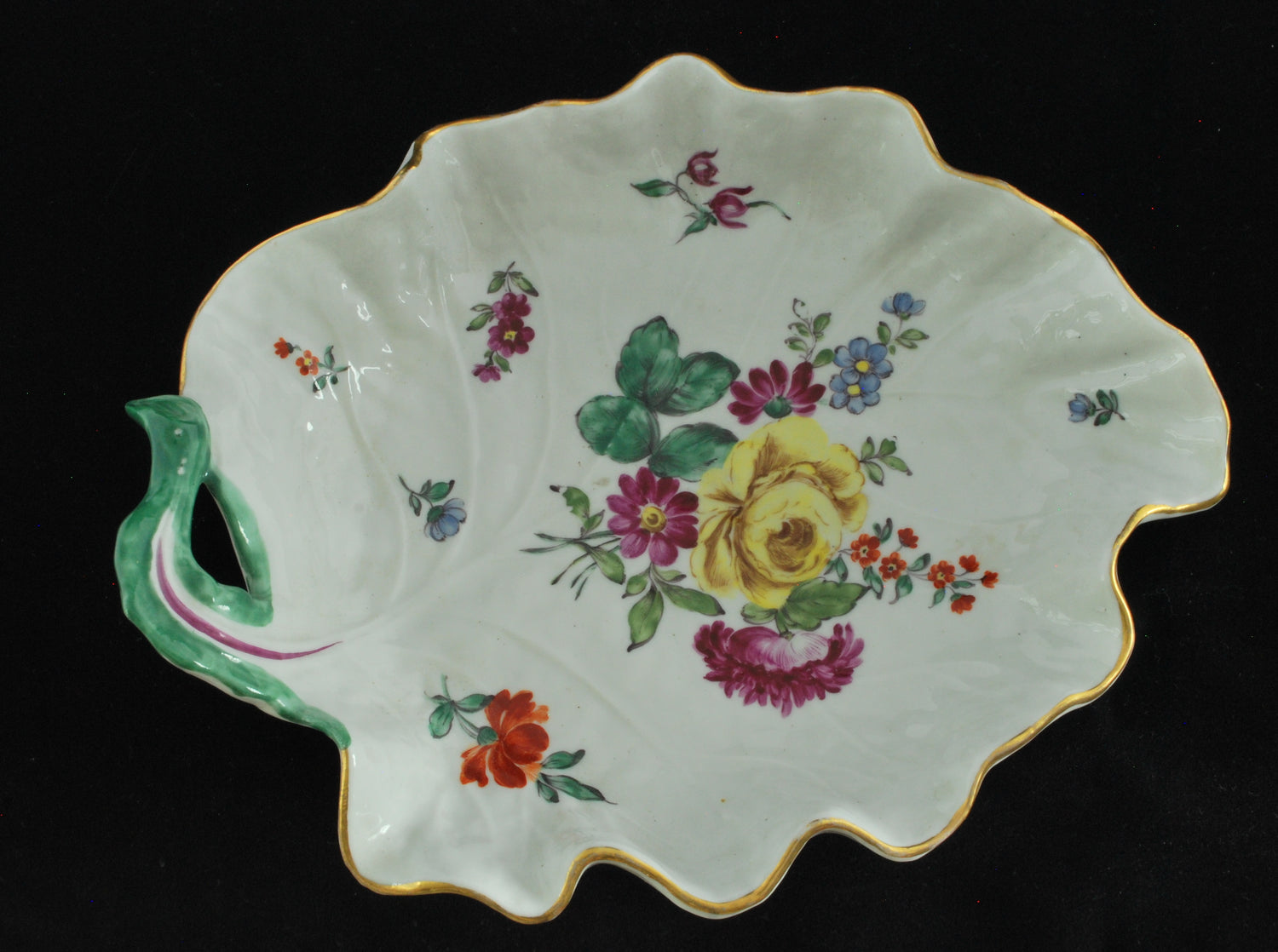 A fair imitation of a Chelsea leaf dish, probably by Samson of Paris.
