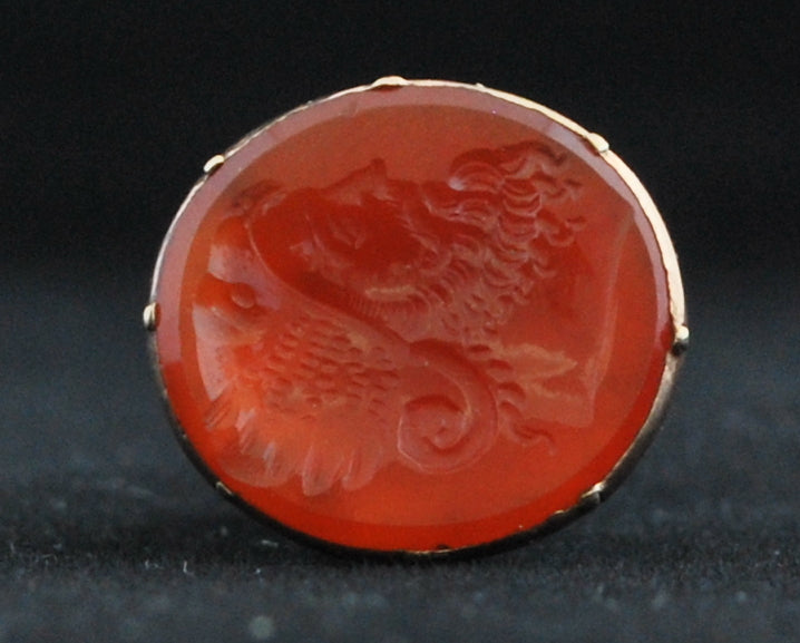 Engraved gemstone to base.