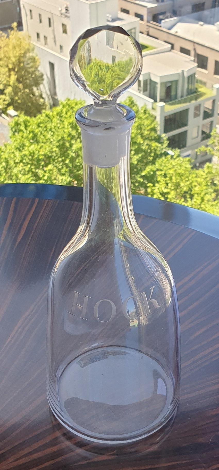 A very fine sugar-loaf shaped decanter, engraved for Hock, a name for any German white wine at the time.