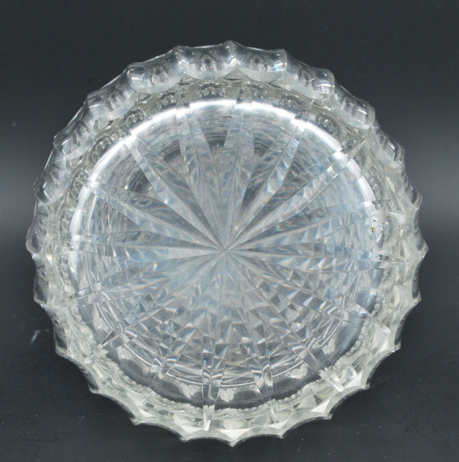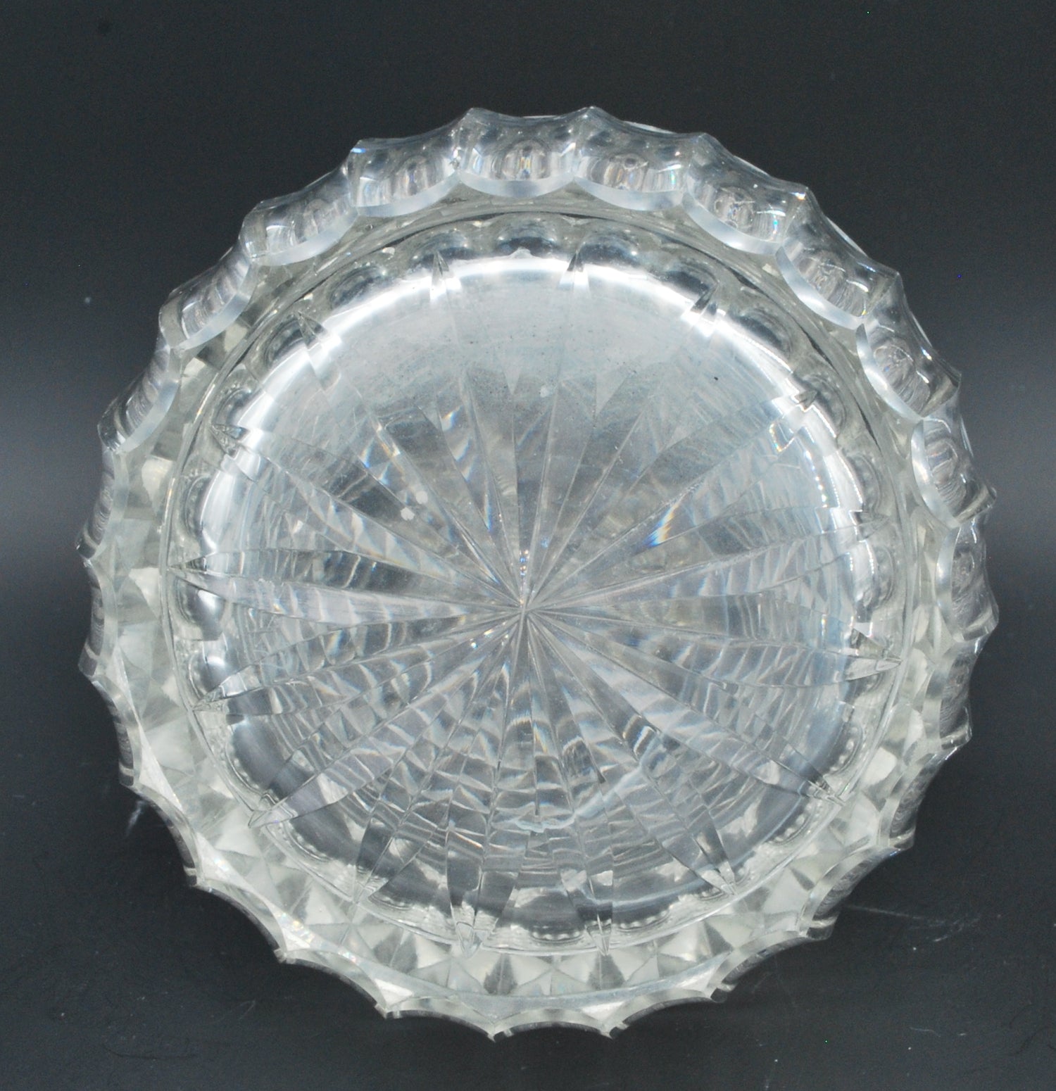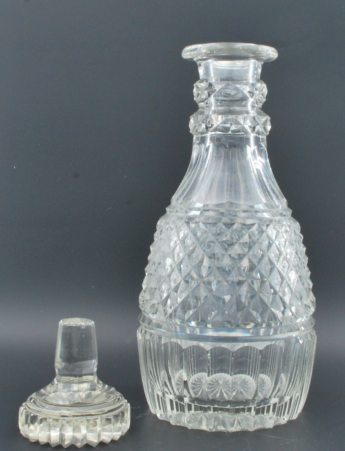 A good pair of mallet-shaped decanters, with two diamond-cut rings to necks, fluting and diamond-cuts to bodies.