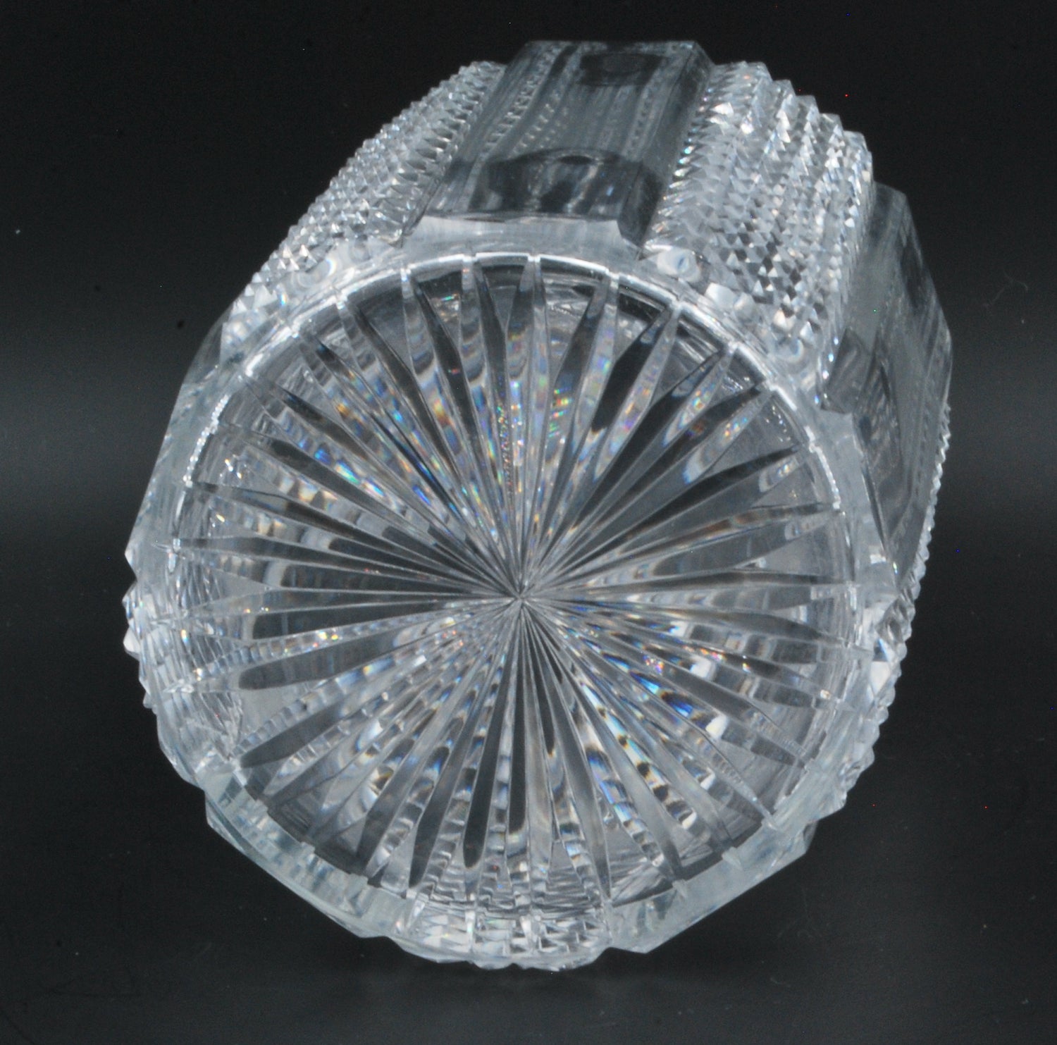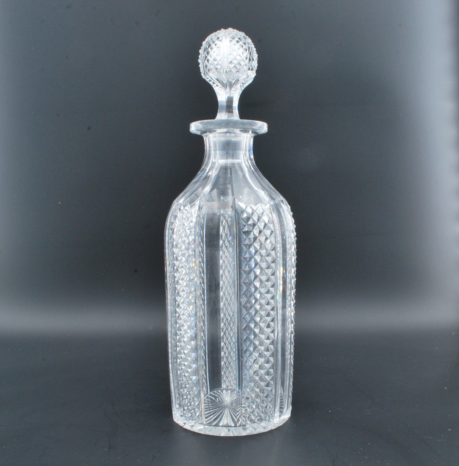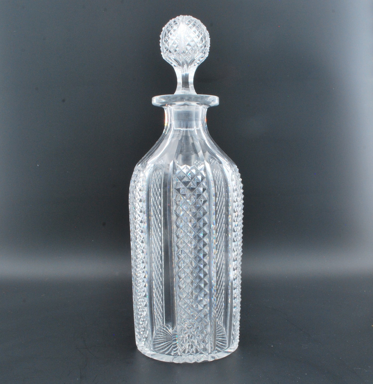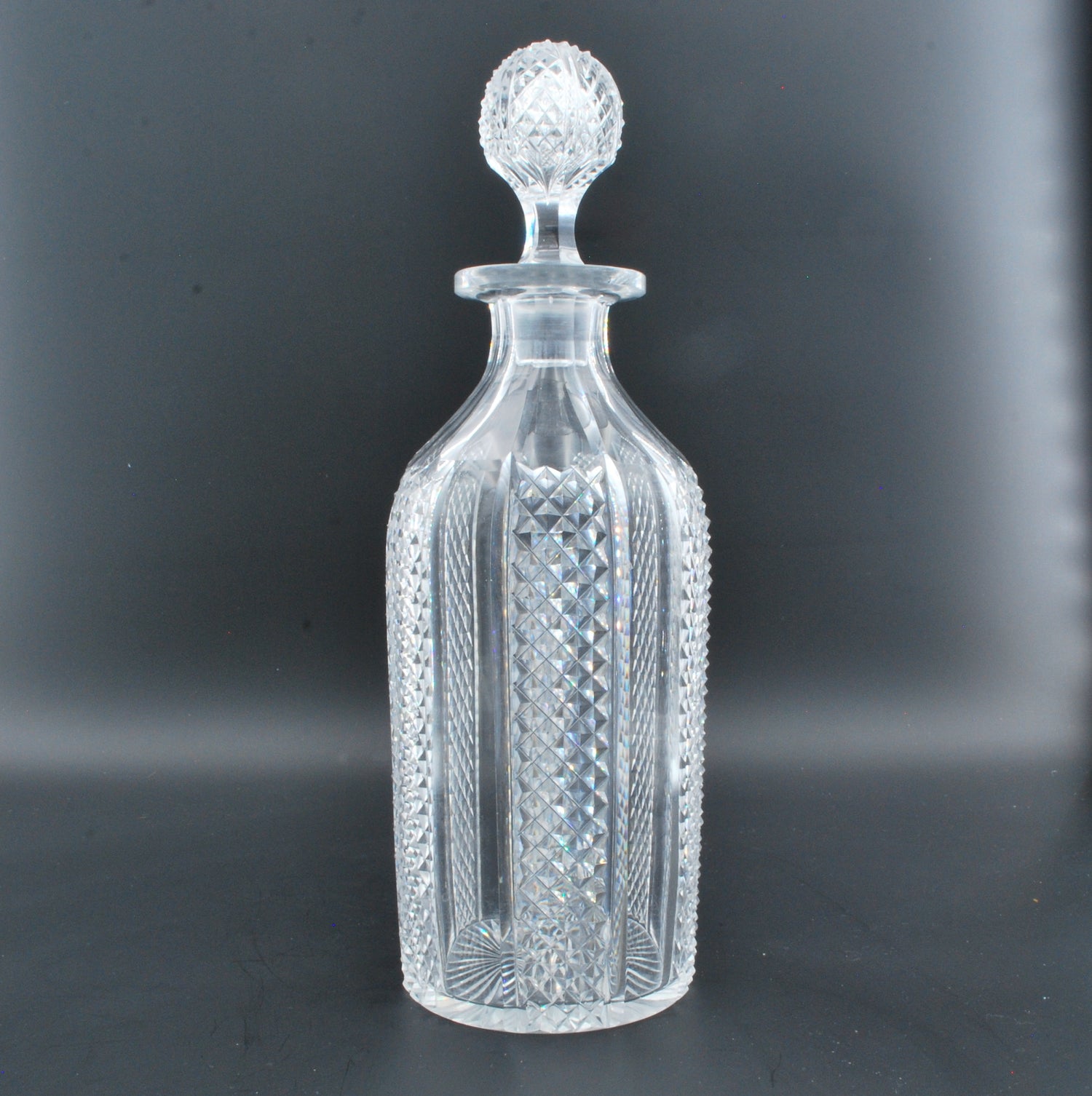 An exceptional cylinder-shape pint decanter, cut with fine diamonds and pillars. The workmanship is particularly fine, perhaps Irish.