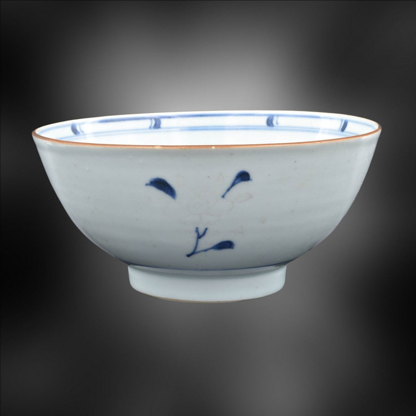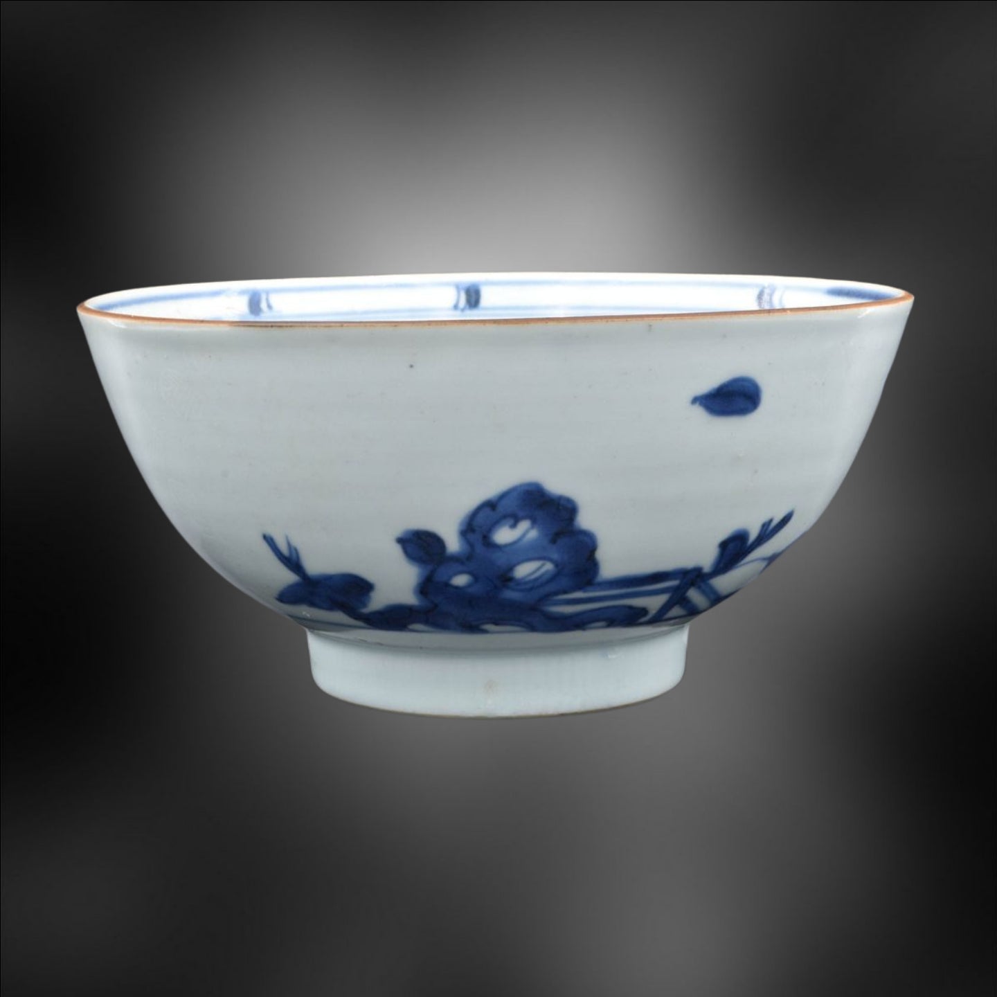 From the Nanking Cargo, a bowl decorated with rocks and plants.