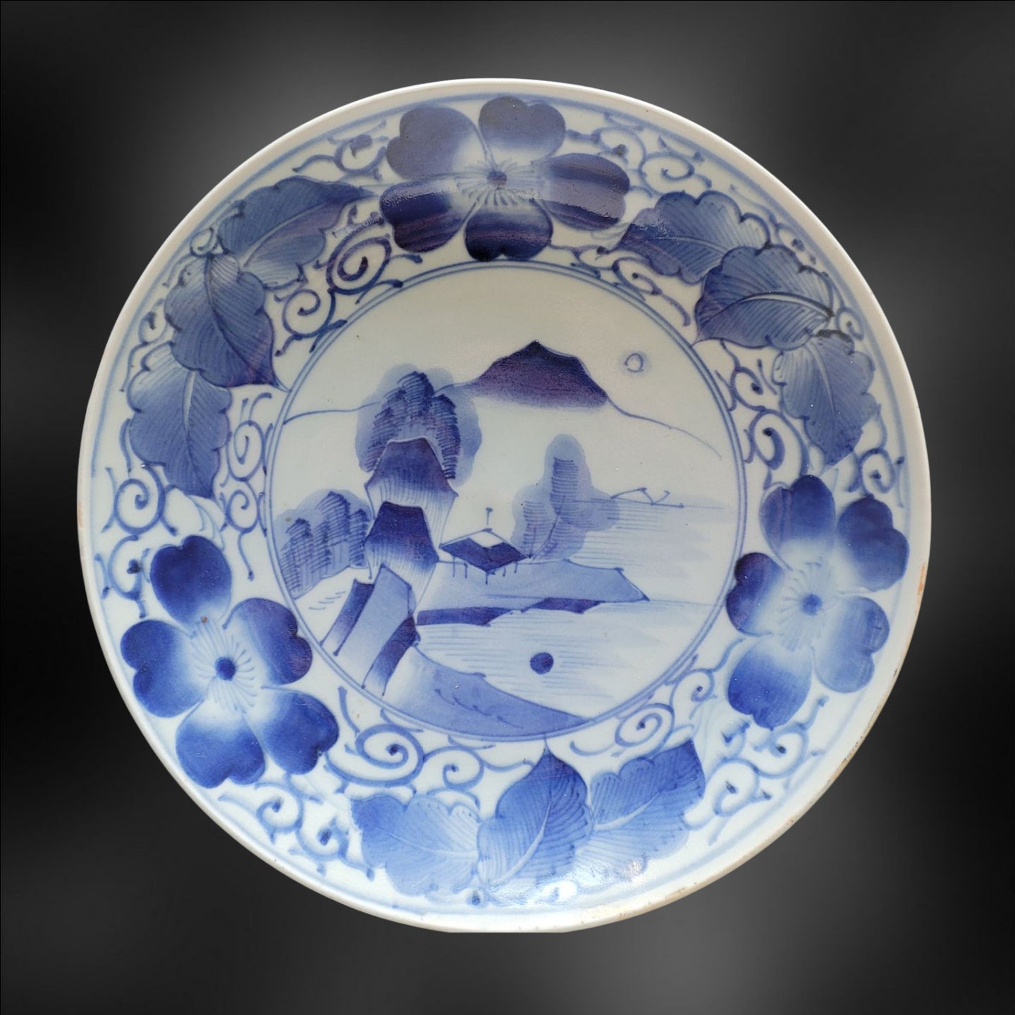 A fine small charger (or large dish), decorated with a view of Mt Fuji.