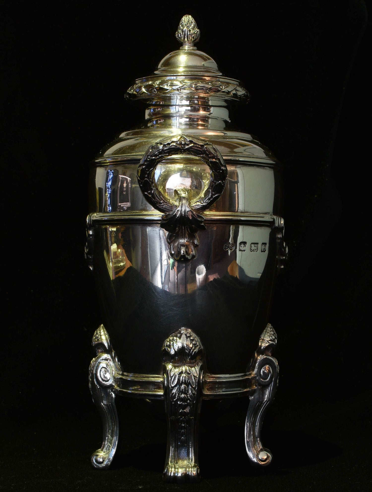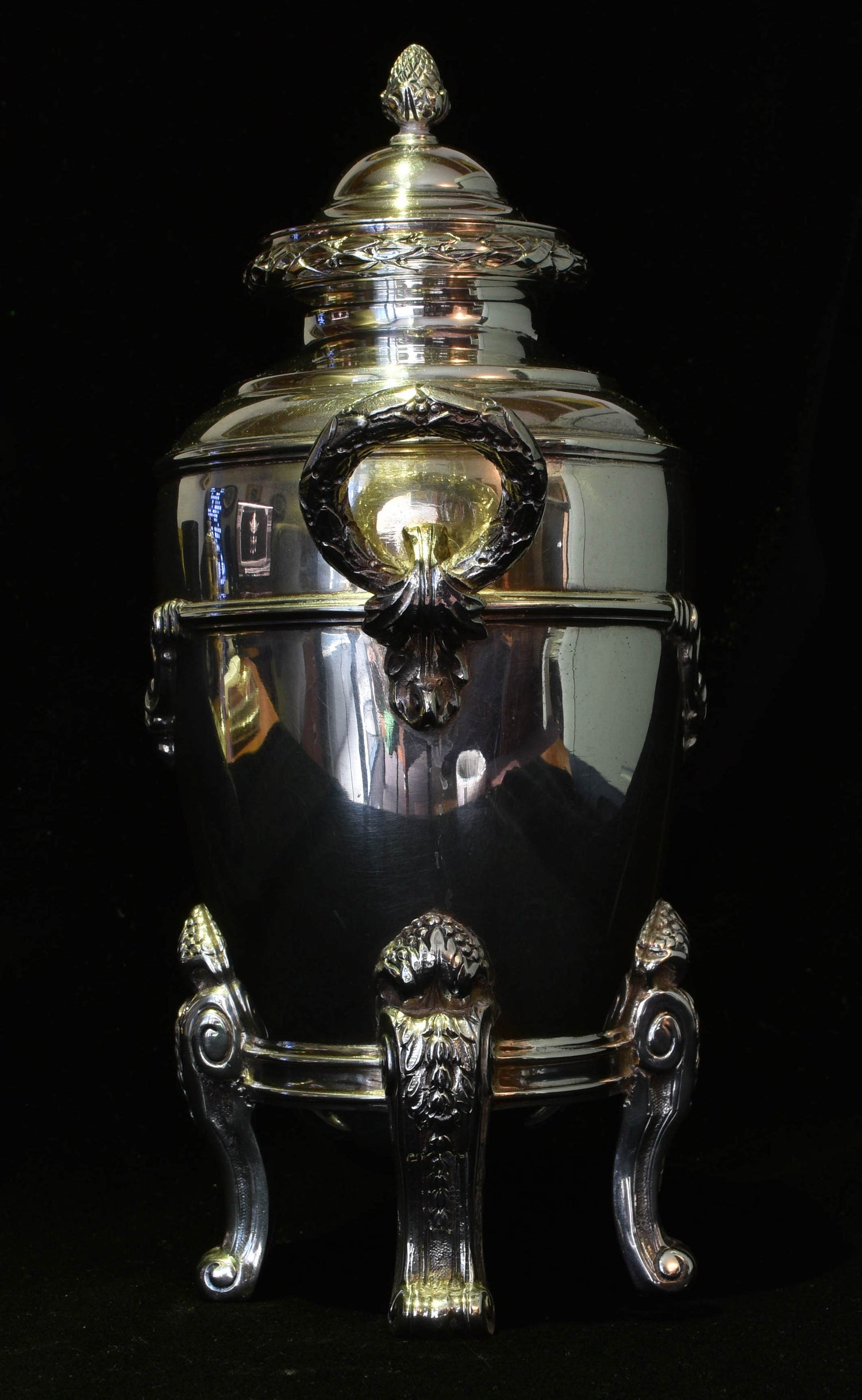 Neoclassical Tea canister in sterling silver. Very finely made, and good weight. Lid fits tightly.