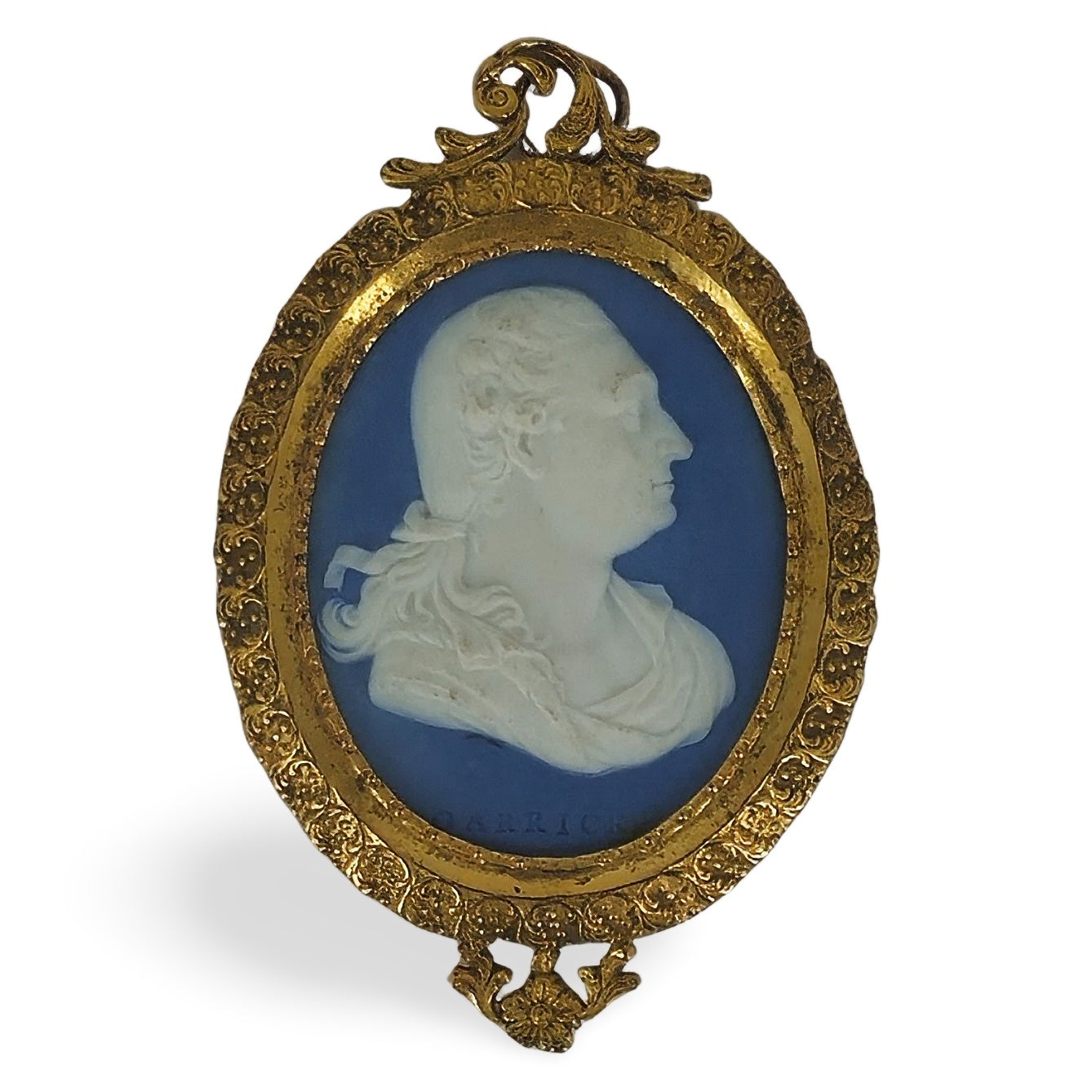 An early jasperware portair medallion of the great actor. Mounted in an ormolu frame, after models by Boulton.