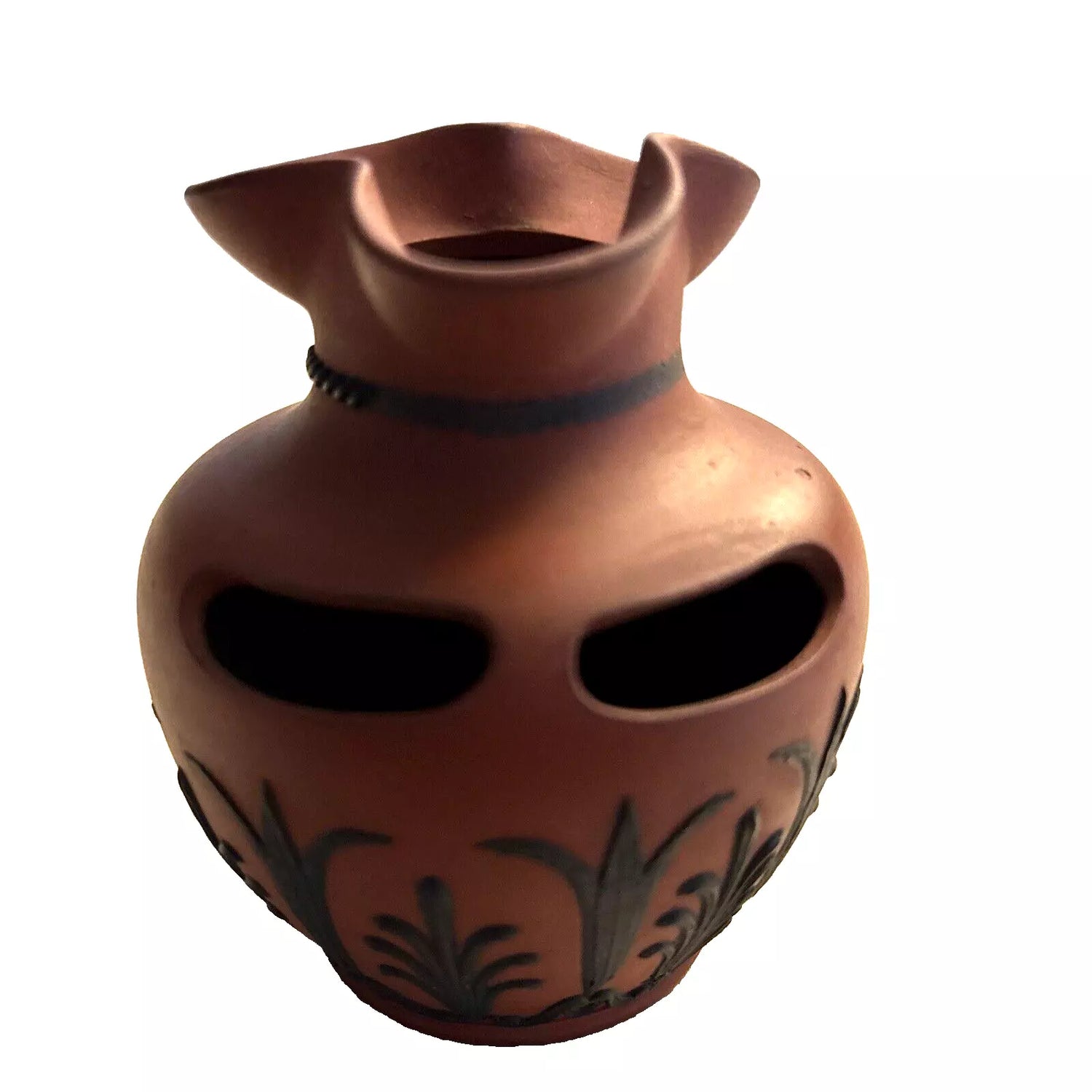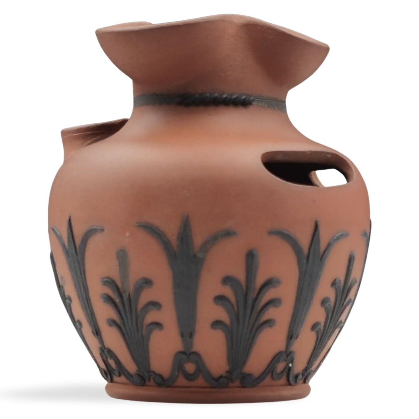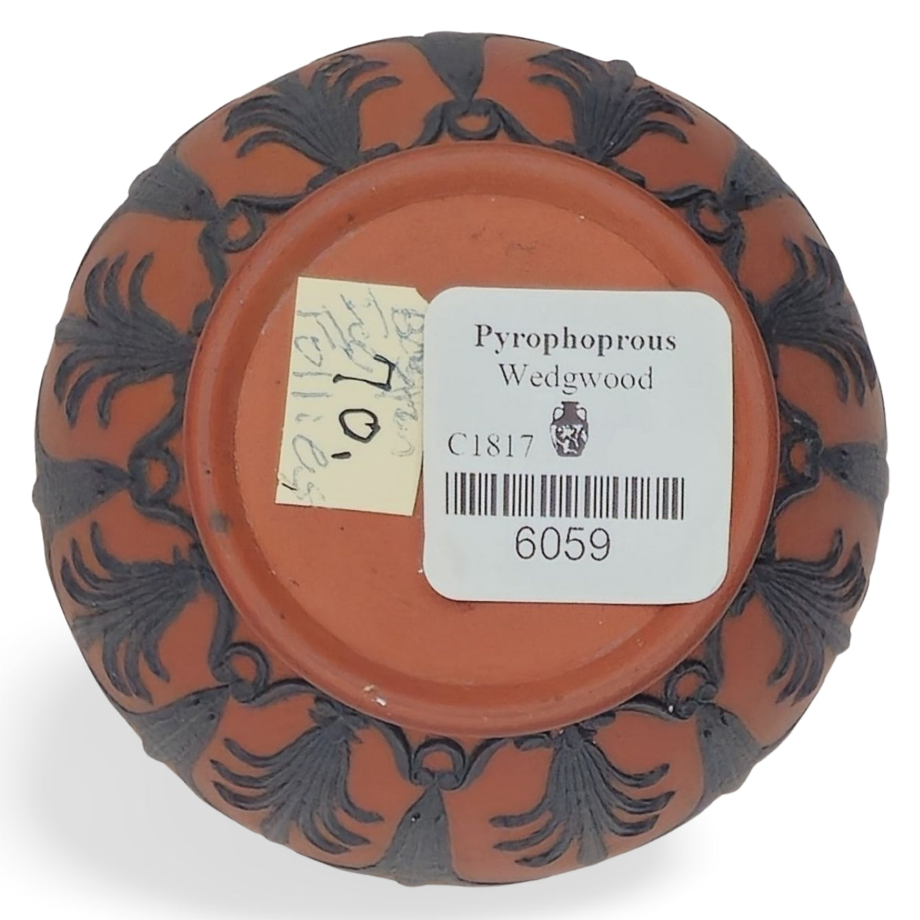 Vase in rosso with black decoration. It is intended for sulphur matches, a short-lived invention that was supplanted by the much safer phosphourous variety.