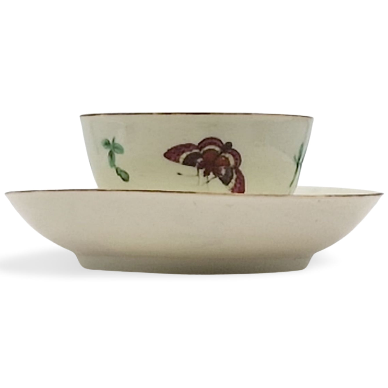 A very fine tea bowl and saucer, decorated in London at the Giles workshop.