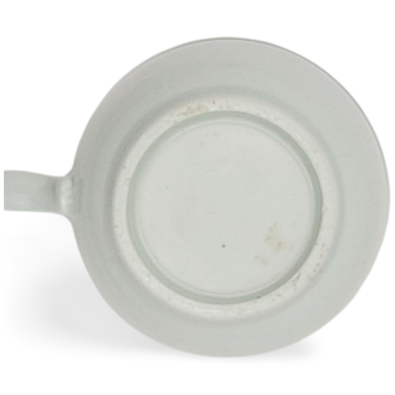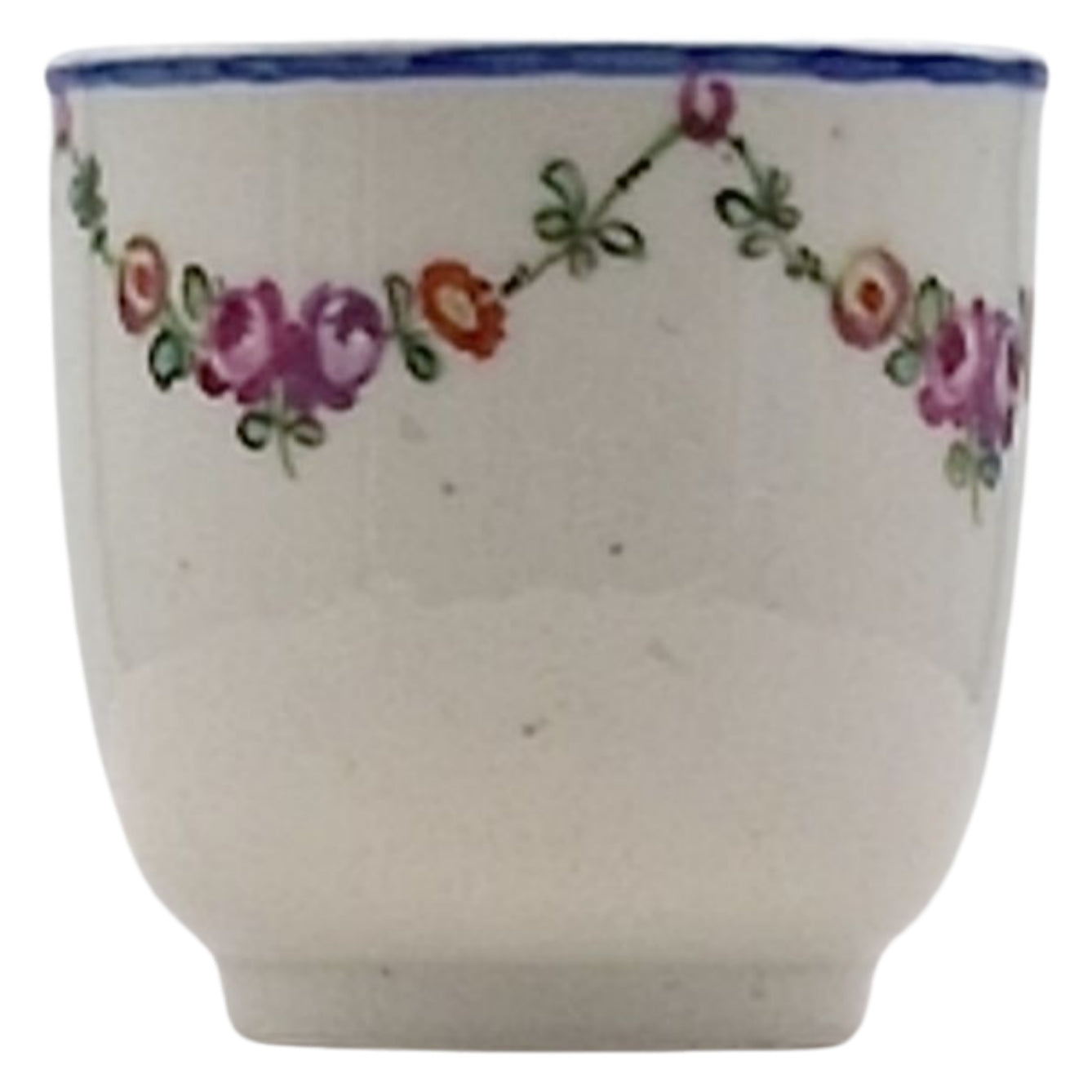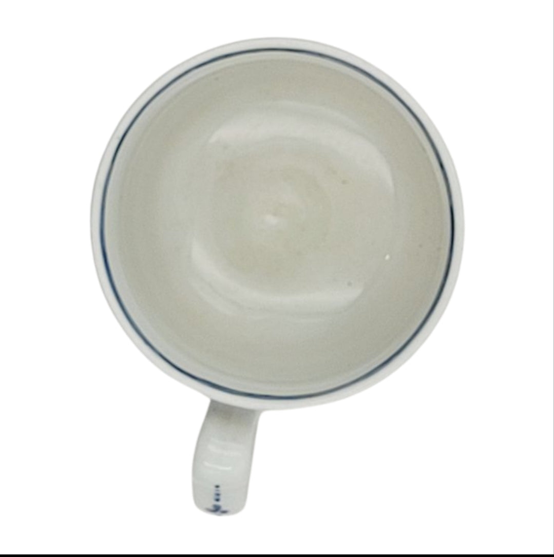 Coffee Cup with garlands of flowers and a distinctive blue rim.