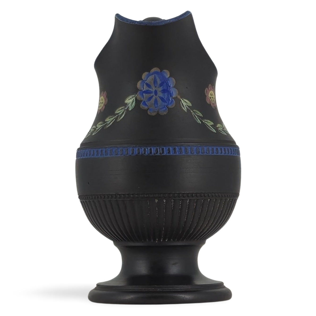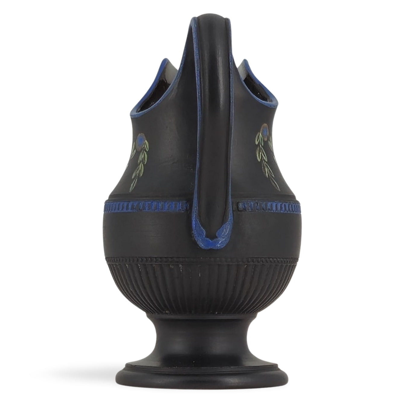 Silver-shaped creamer with unusual blue enamelling. Possibly by Palmer.