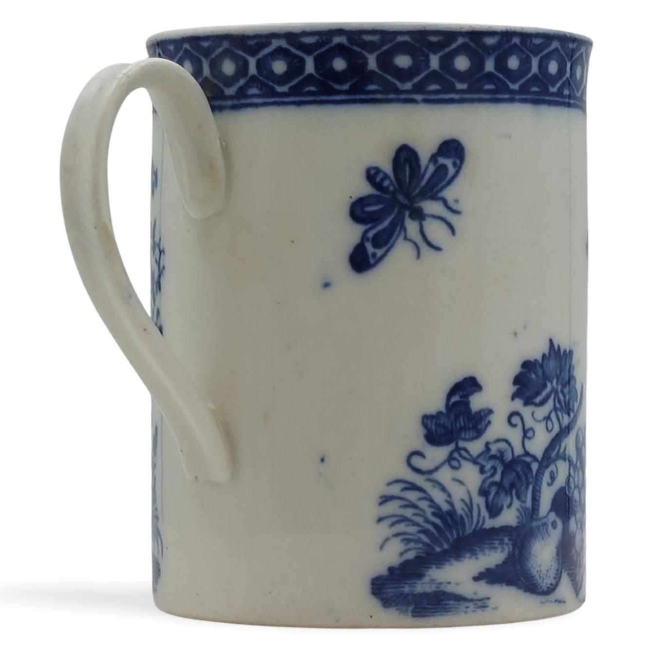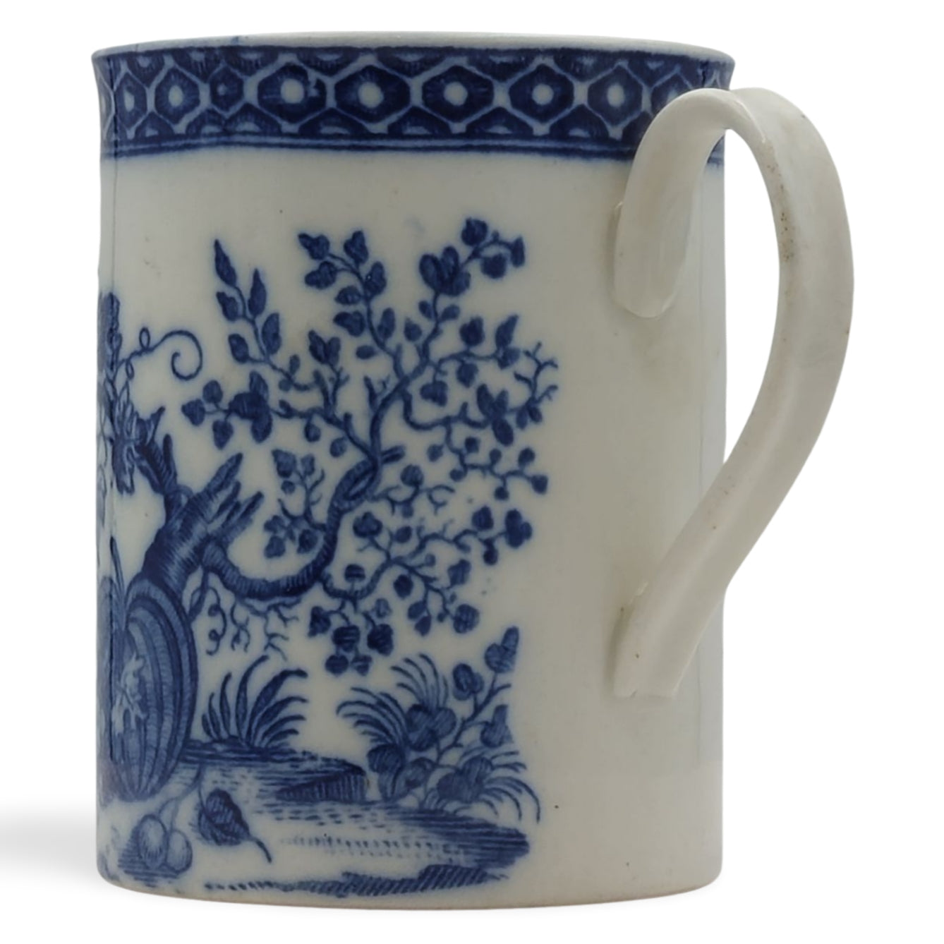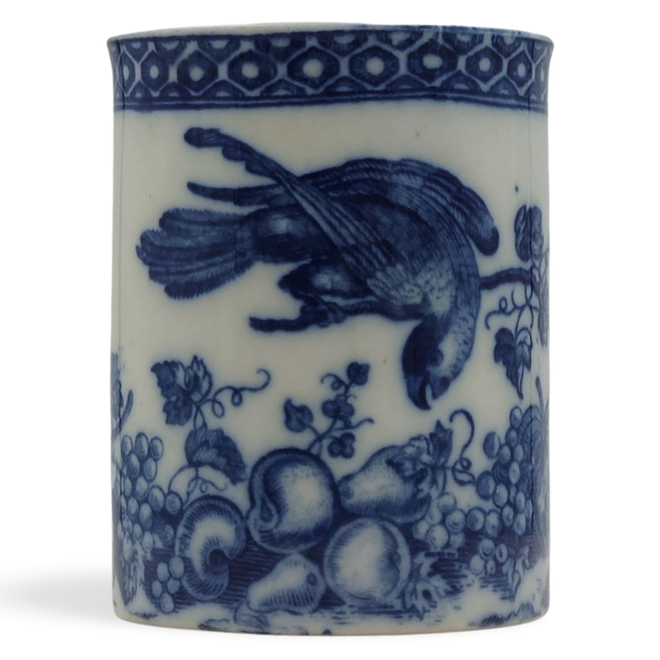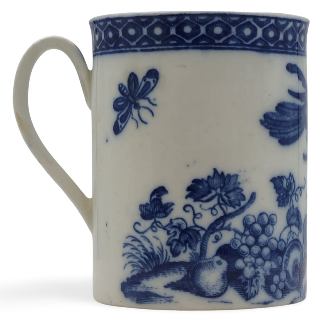 Mug, decorated with the Parrot Pecking Fruit pattern, with a cell border.