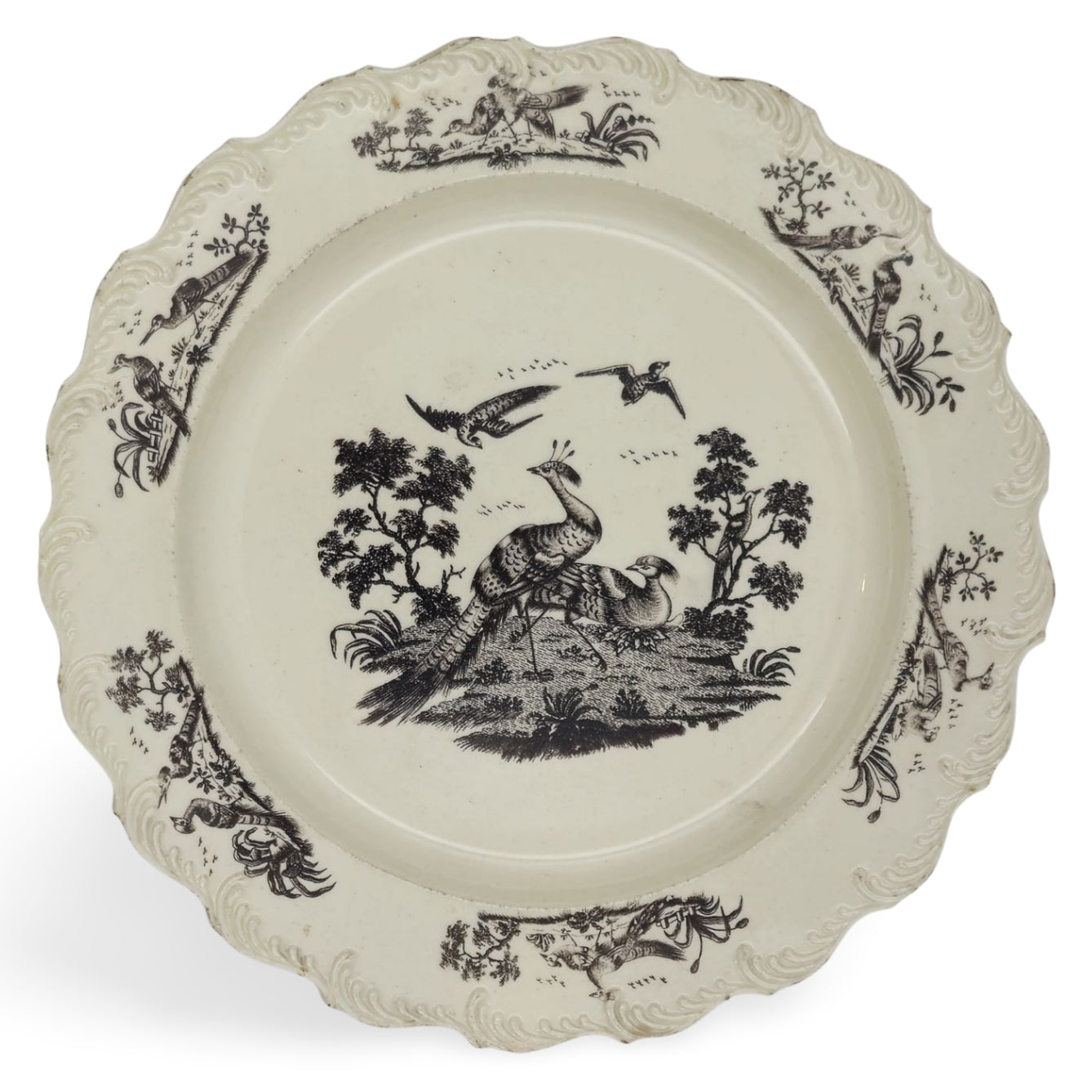 Feather-edged plate, decorated with transfer-printed Liver birds.