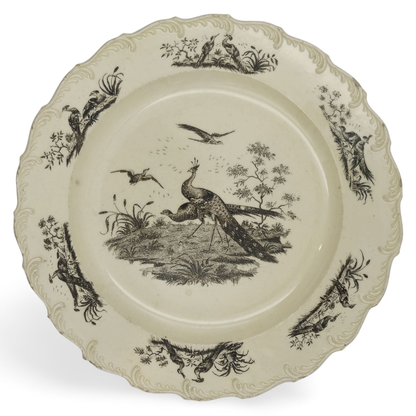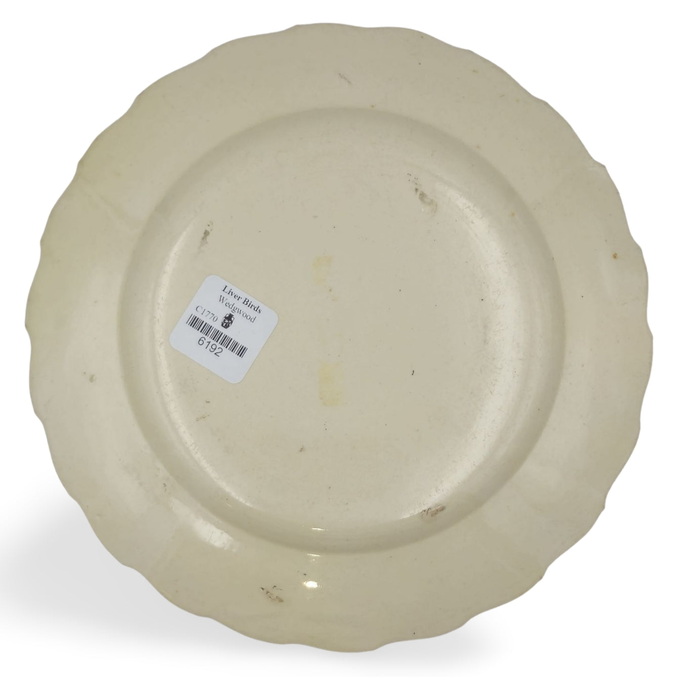Feather-edged plate, decorated with transfer-printed Liver birds.