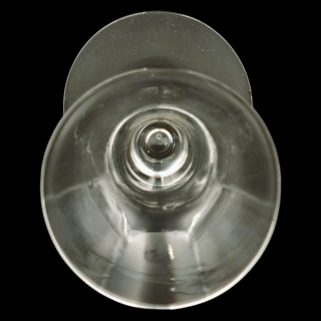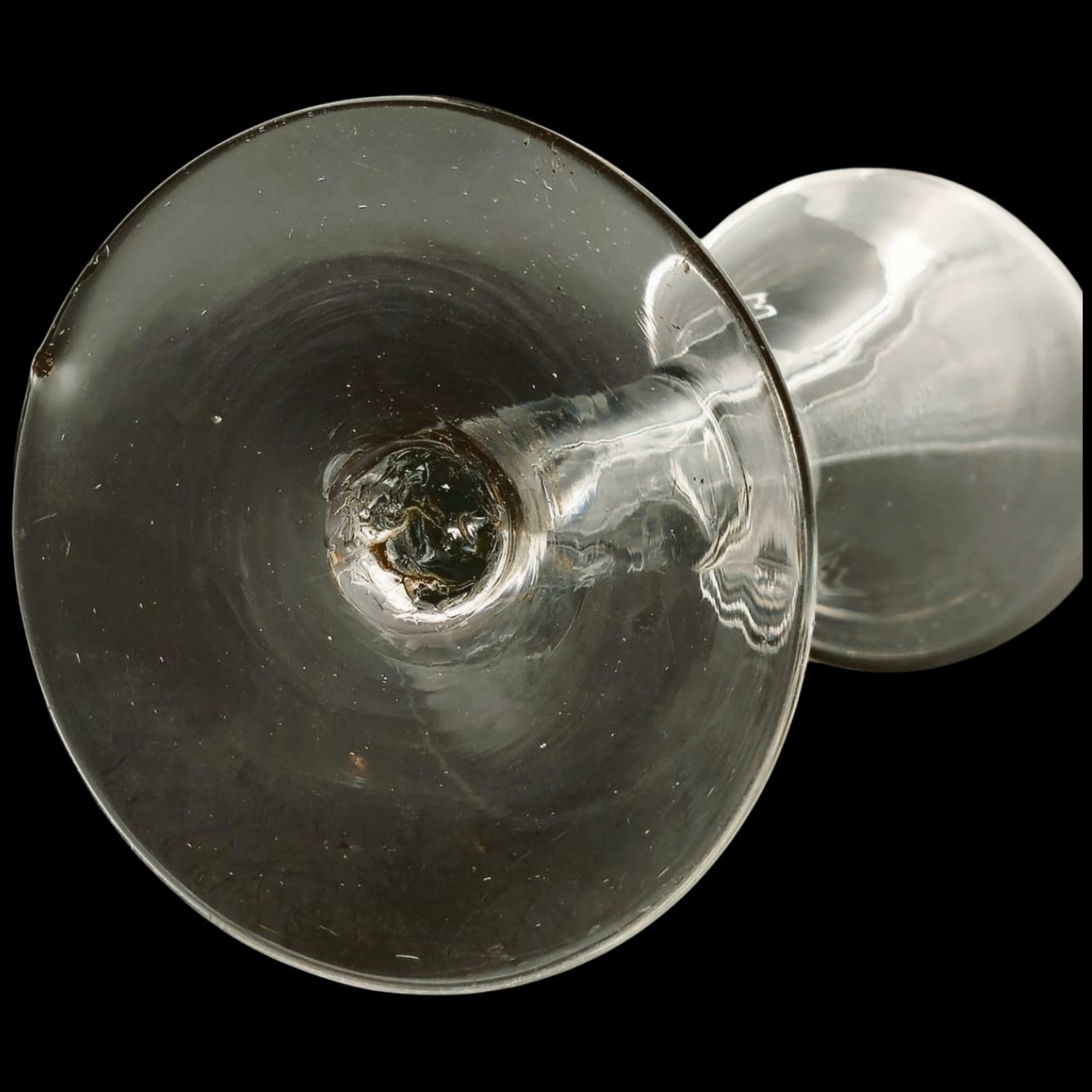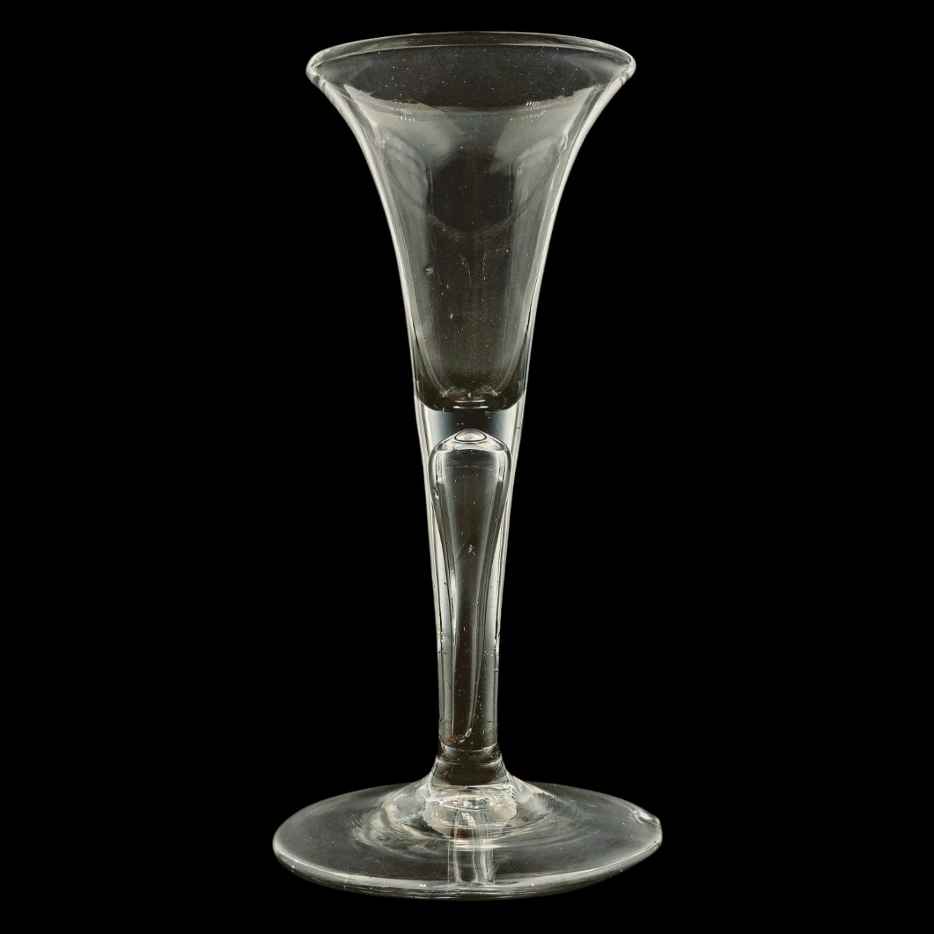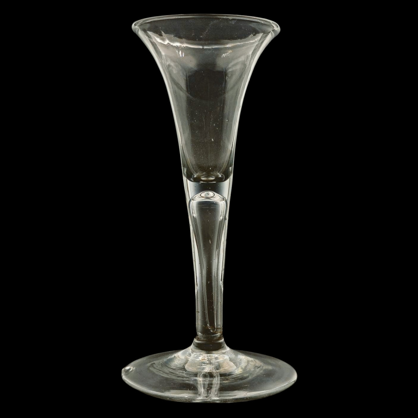 Drawn trumpet bowl, with plain stem containing a long tear; conical foot.