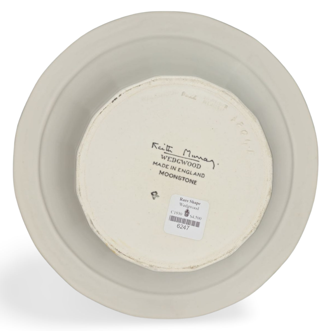 A Keith Murray vase in a rare and undocumented shape. Moonstone glaze.