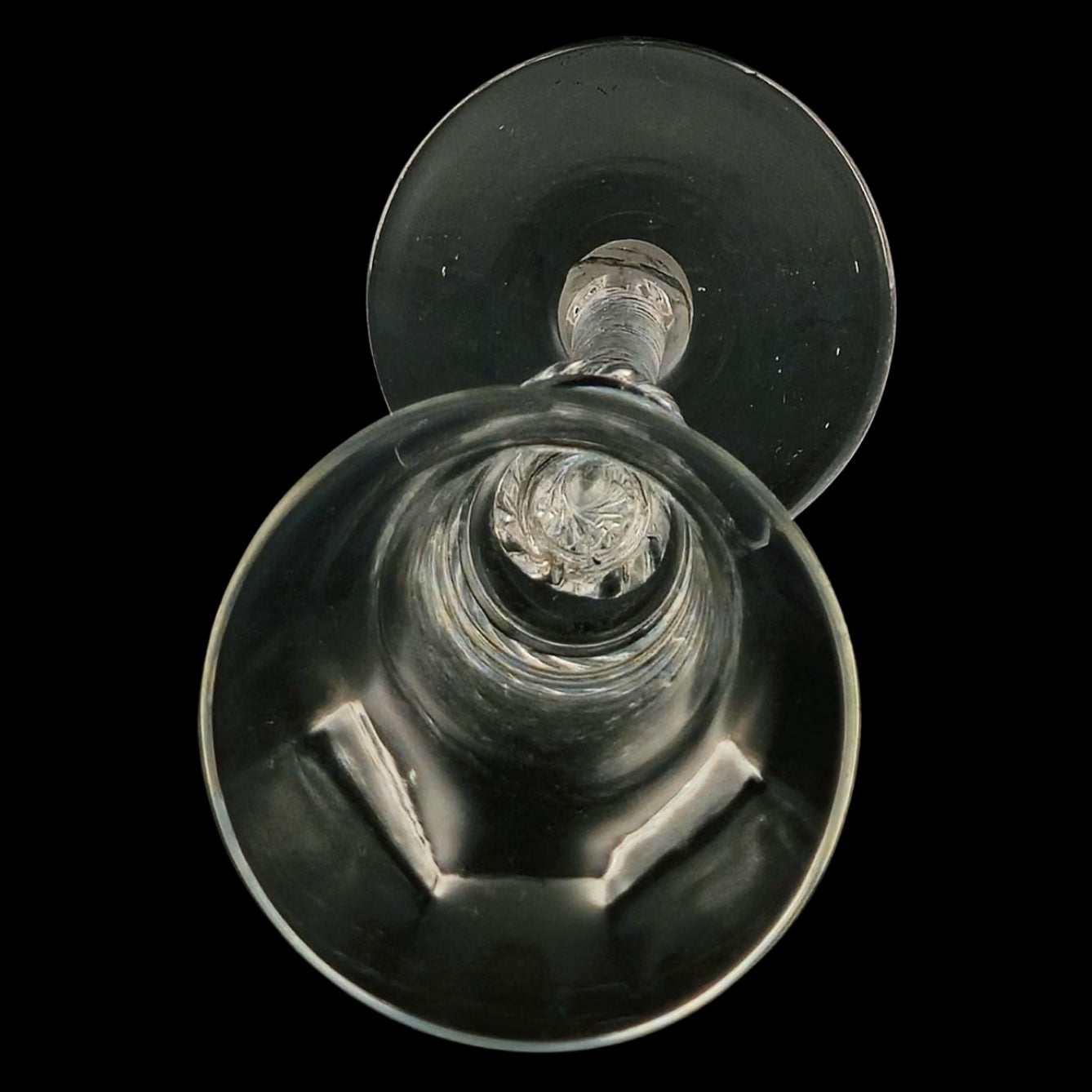Flared bucket bowl, on a multiple-spiral air-twist stem with a knop at the shoulder.