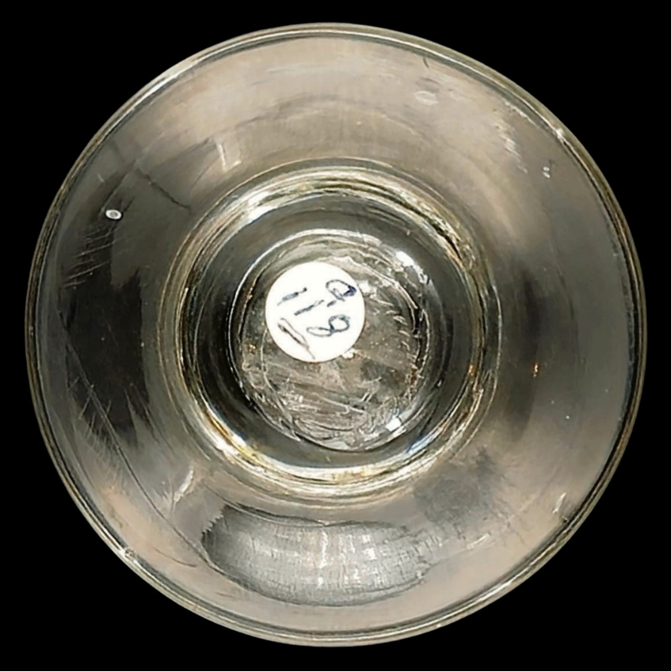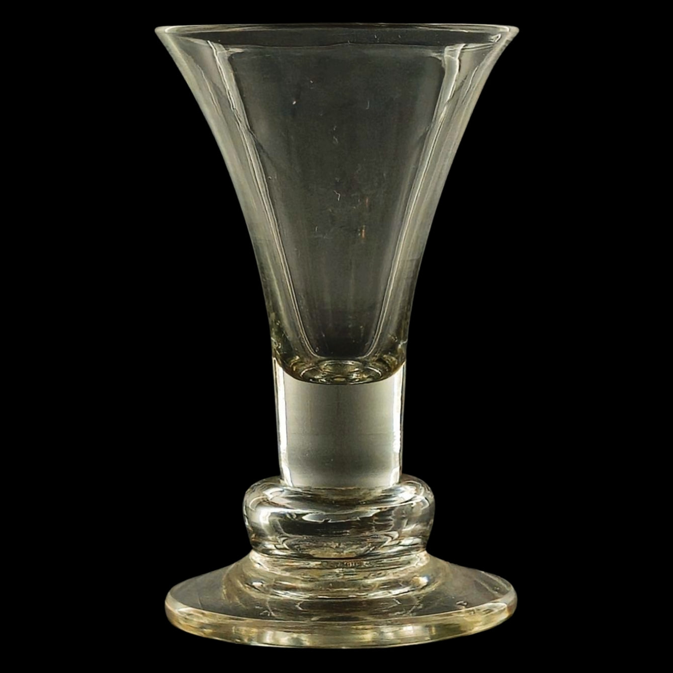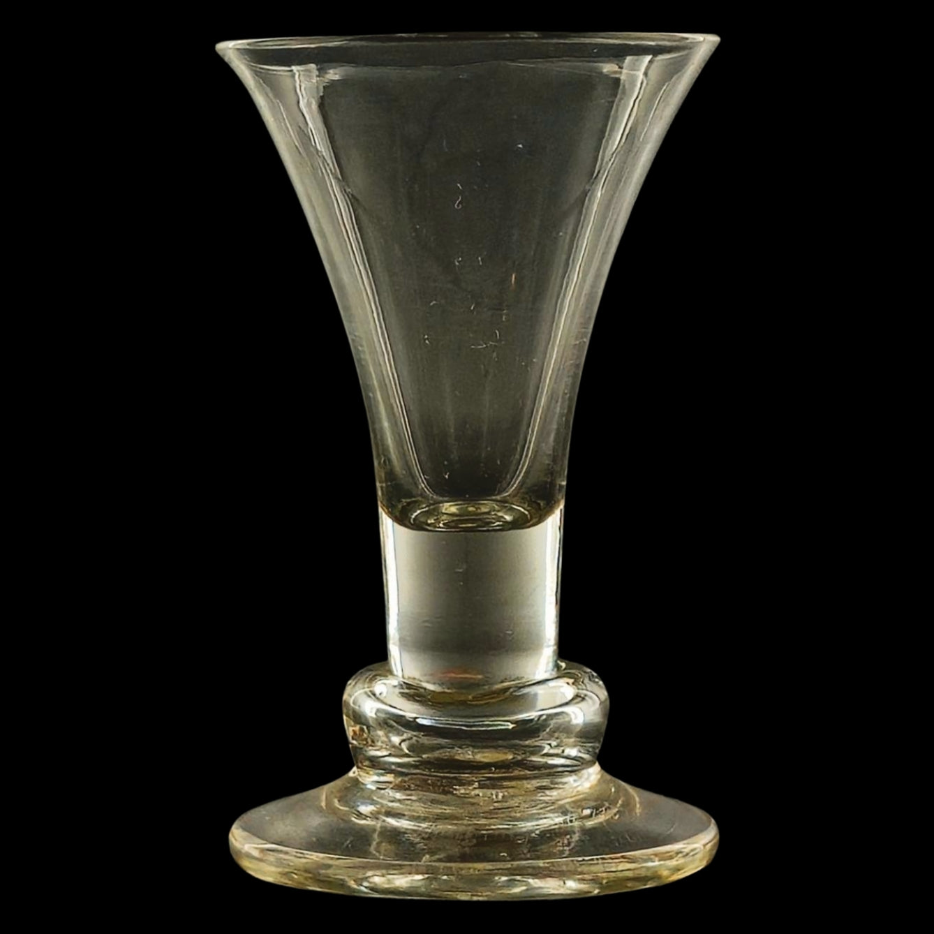 Drawn trumpet bowl on a cushioned stem. The type of glass seen in Hogarth's paintings.