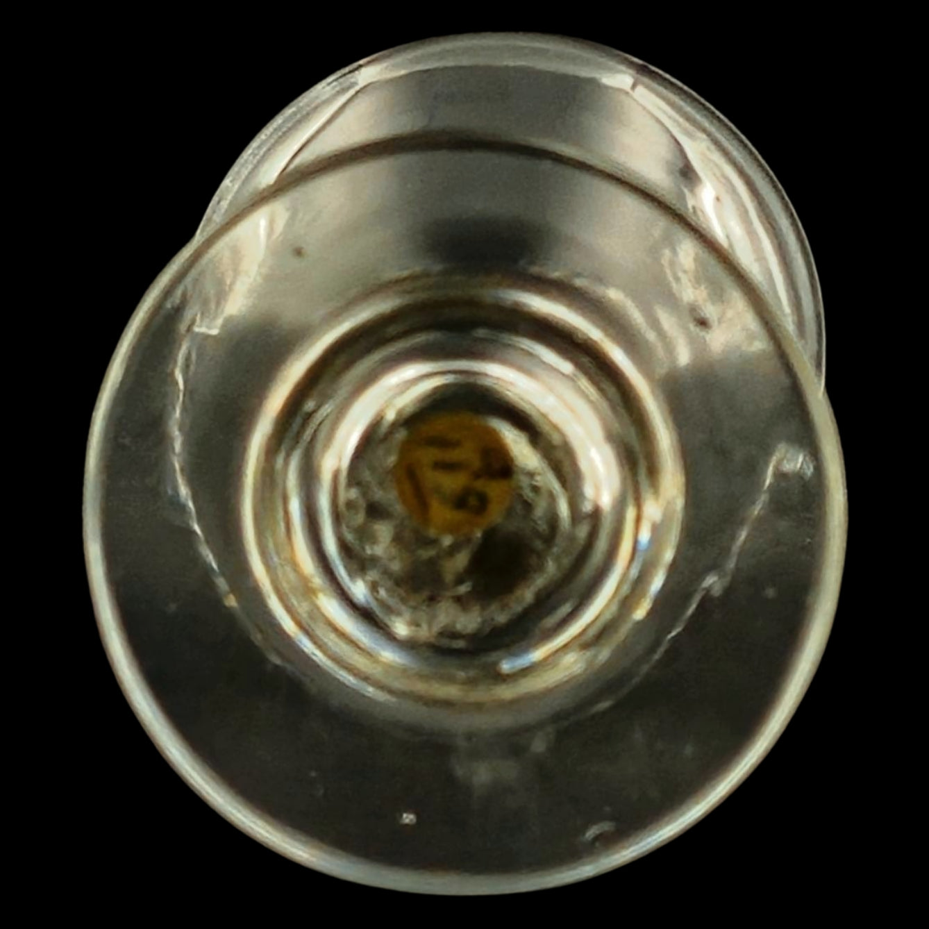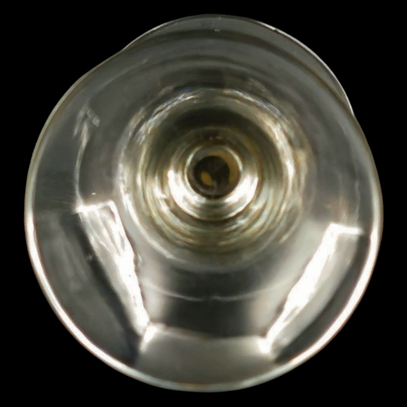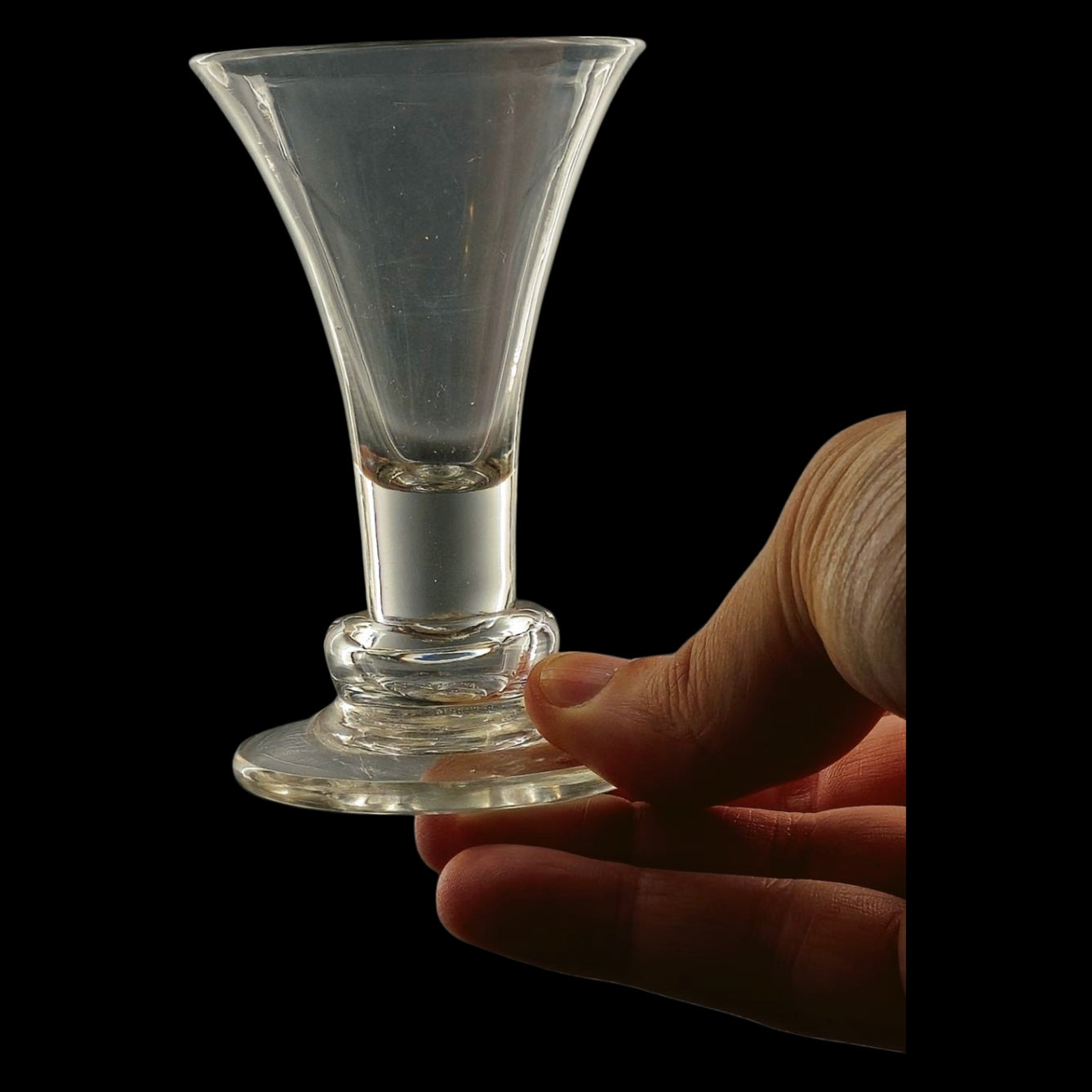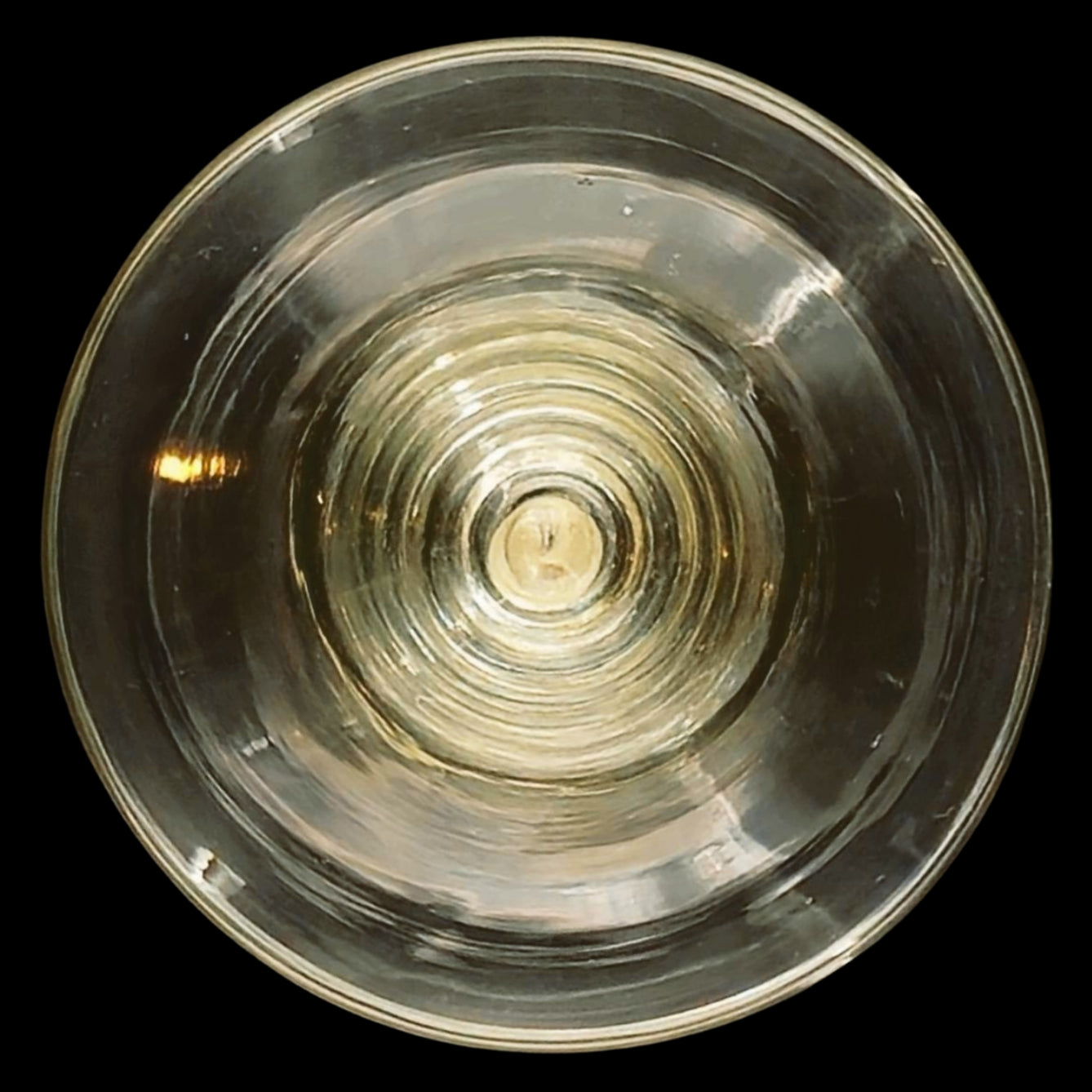 Drawn trumpet bowl on a cushioned stem. The type of glass seen in Hogarth's paintings.