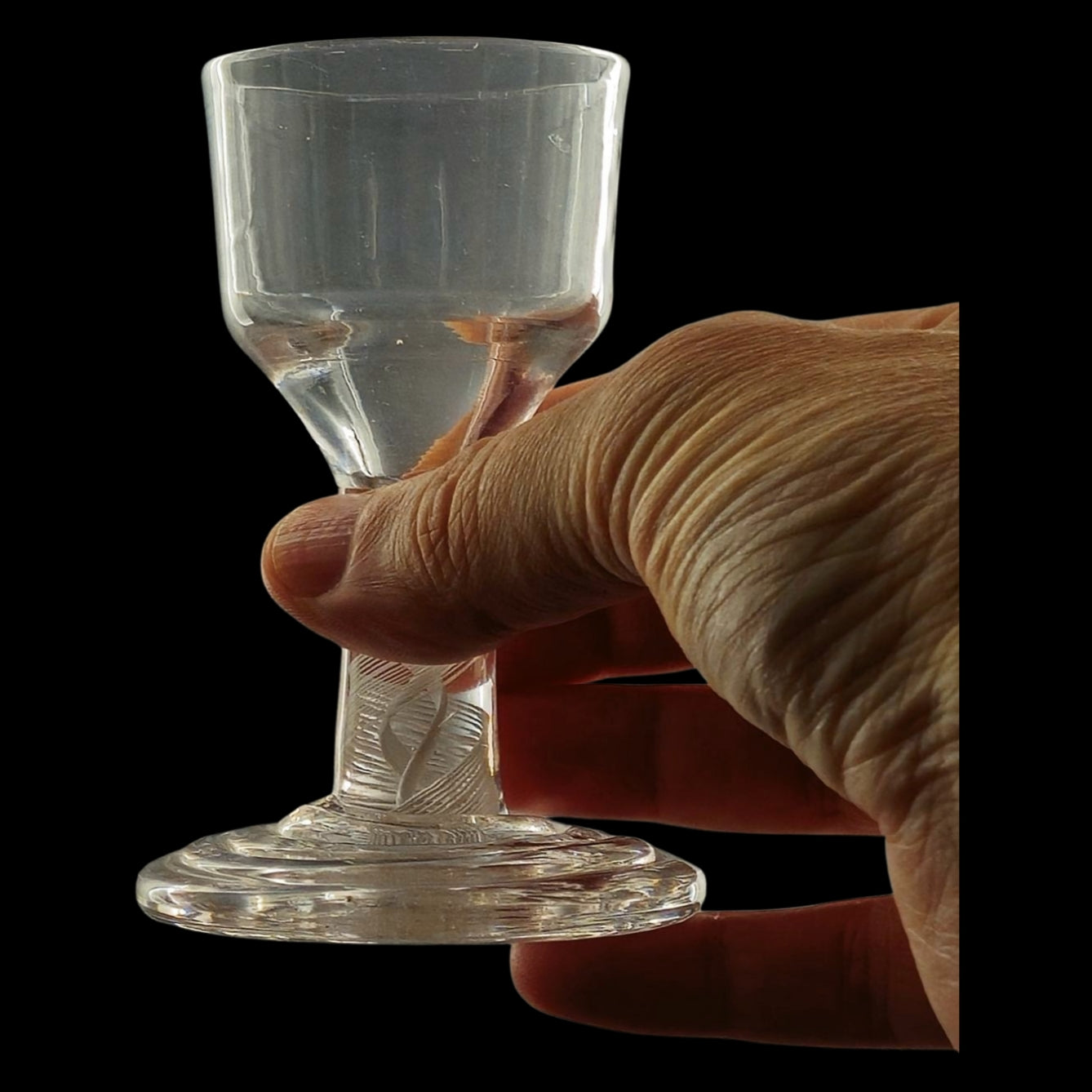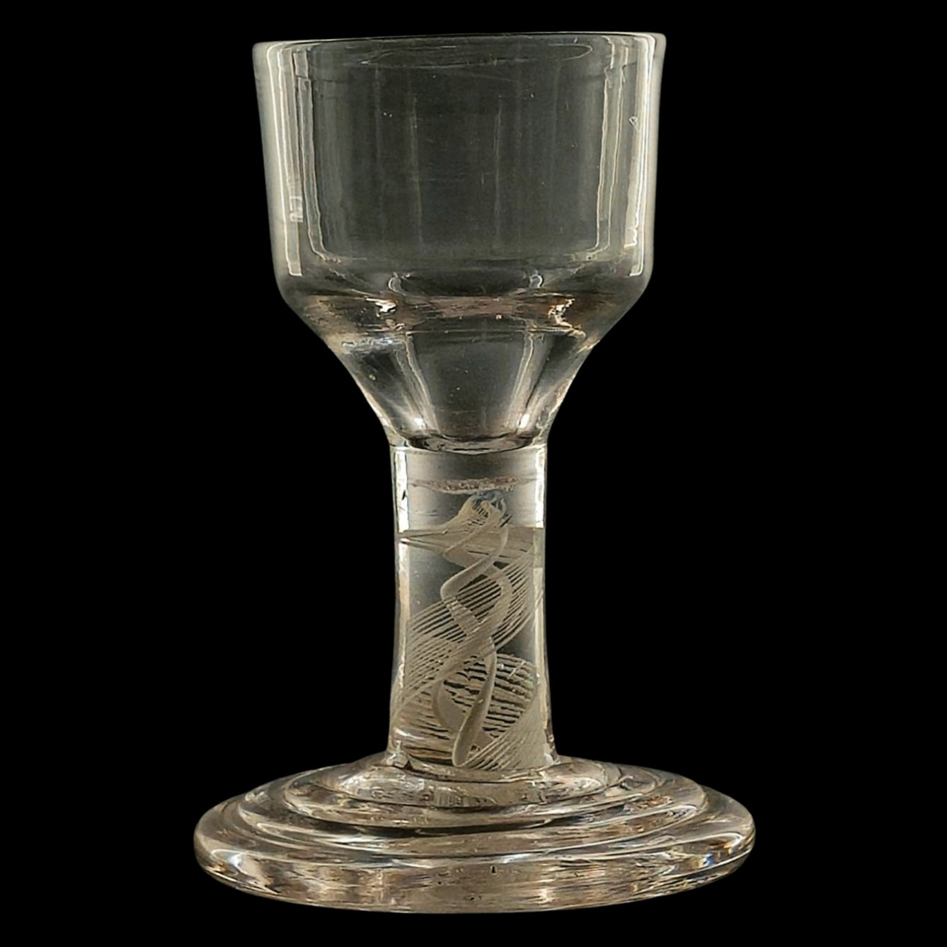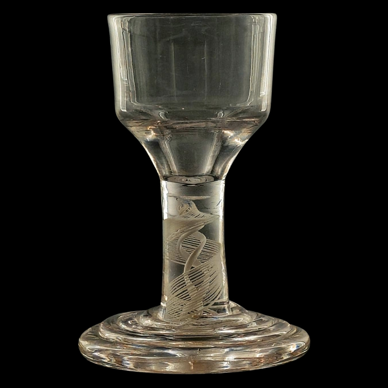 Ogee bowl with an opaque twist stem and a stepped (or terraced) foot. Quite a rare combination.