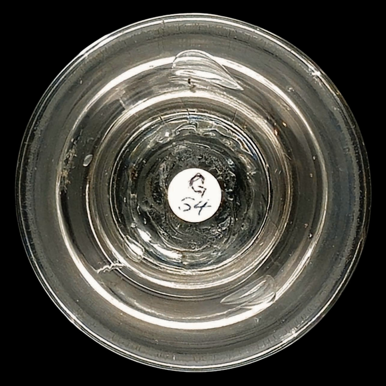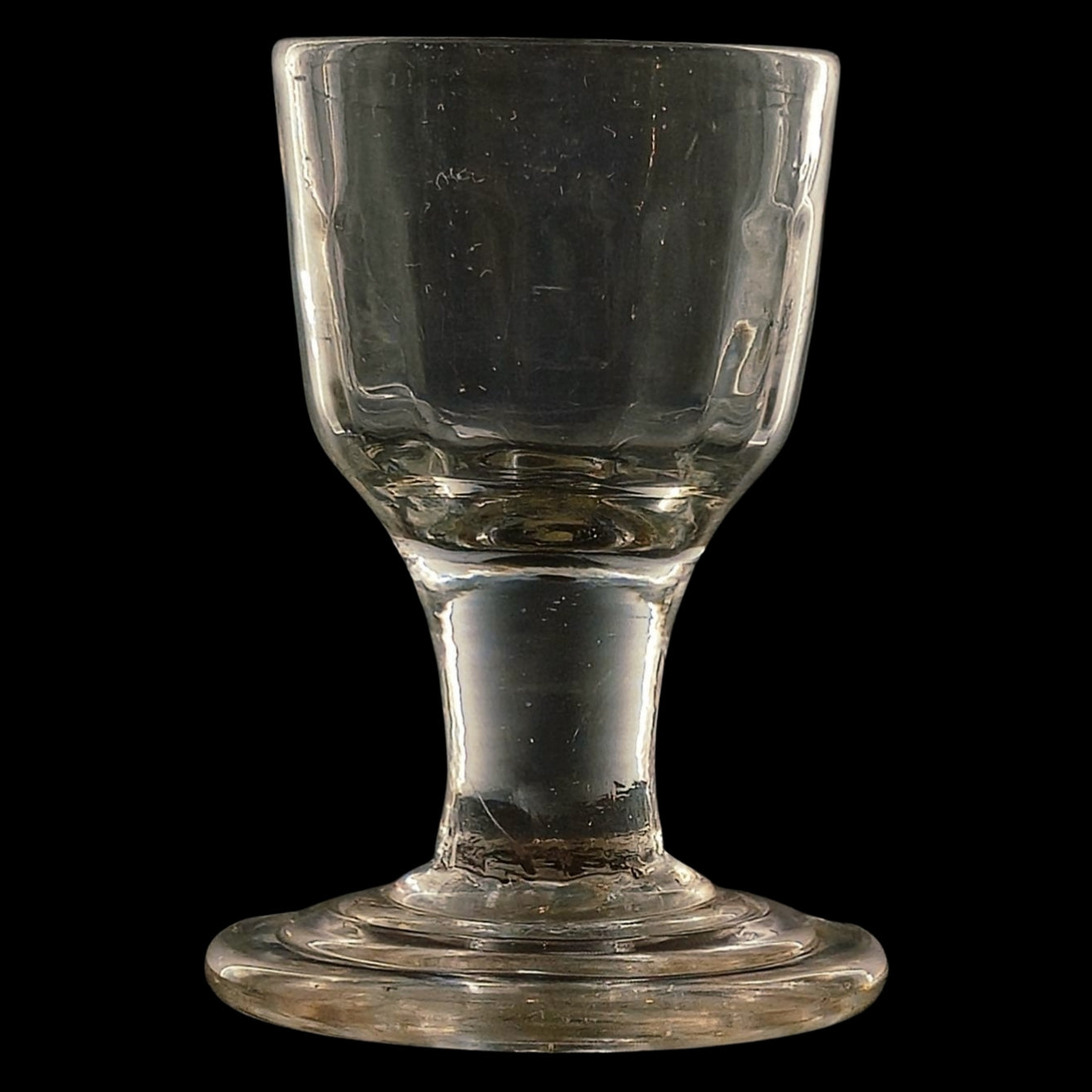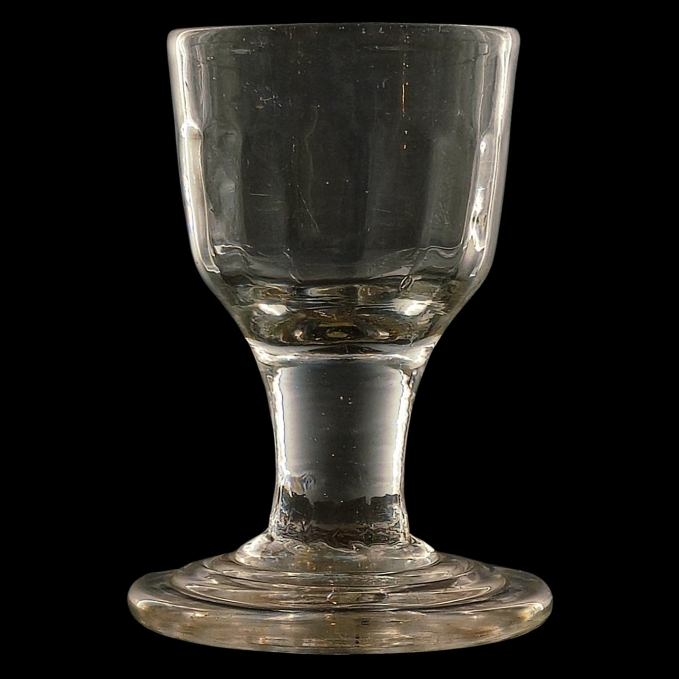 Dram glass with a nice stepped foot. Ogee bowl with basal moulding.