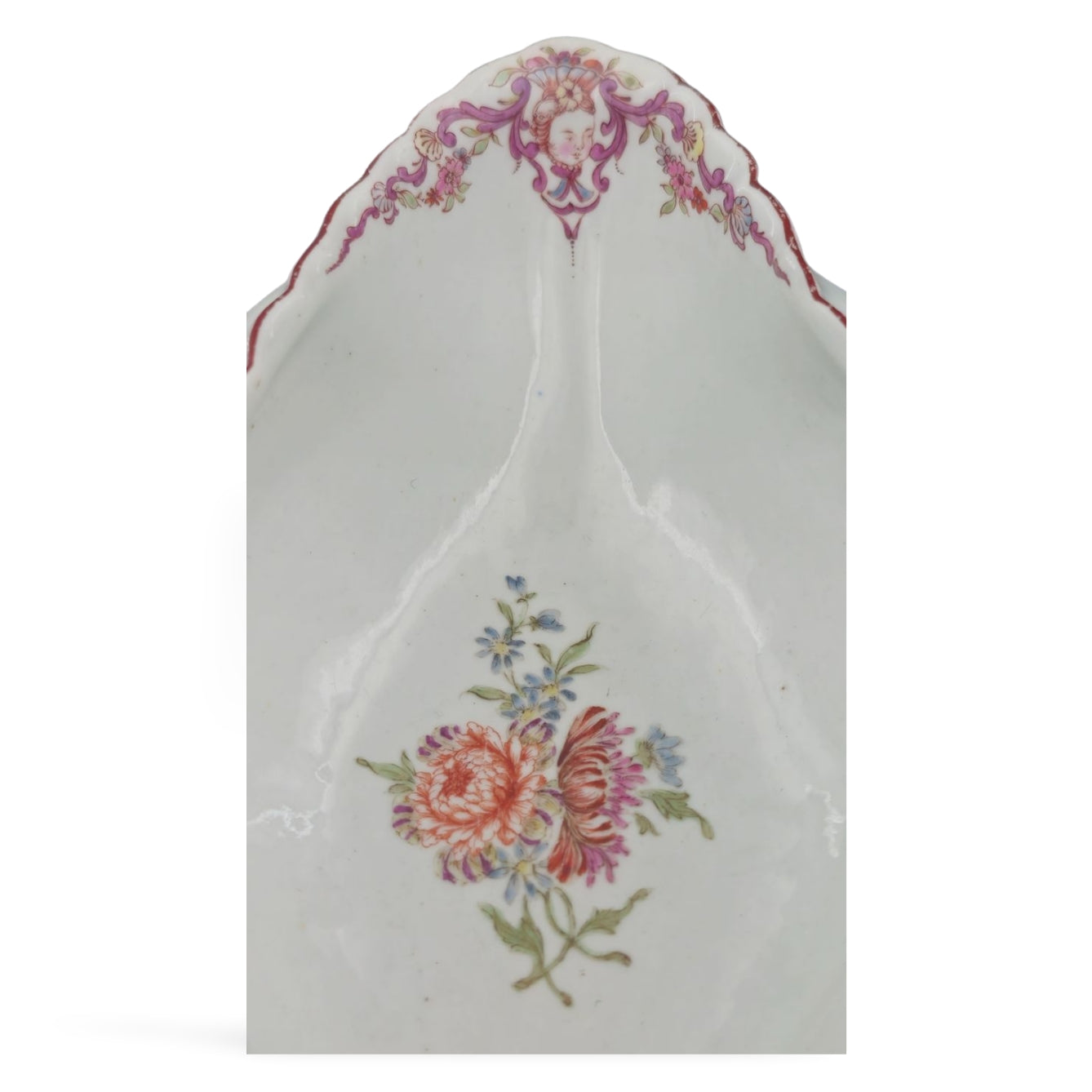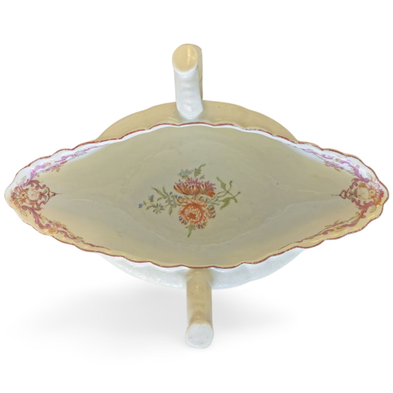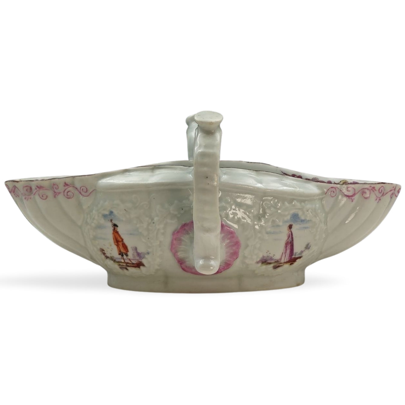 An early two-handled sauceboat, decorated by Jefferyes Hamett O'Neal, probably in the Giles workshop.