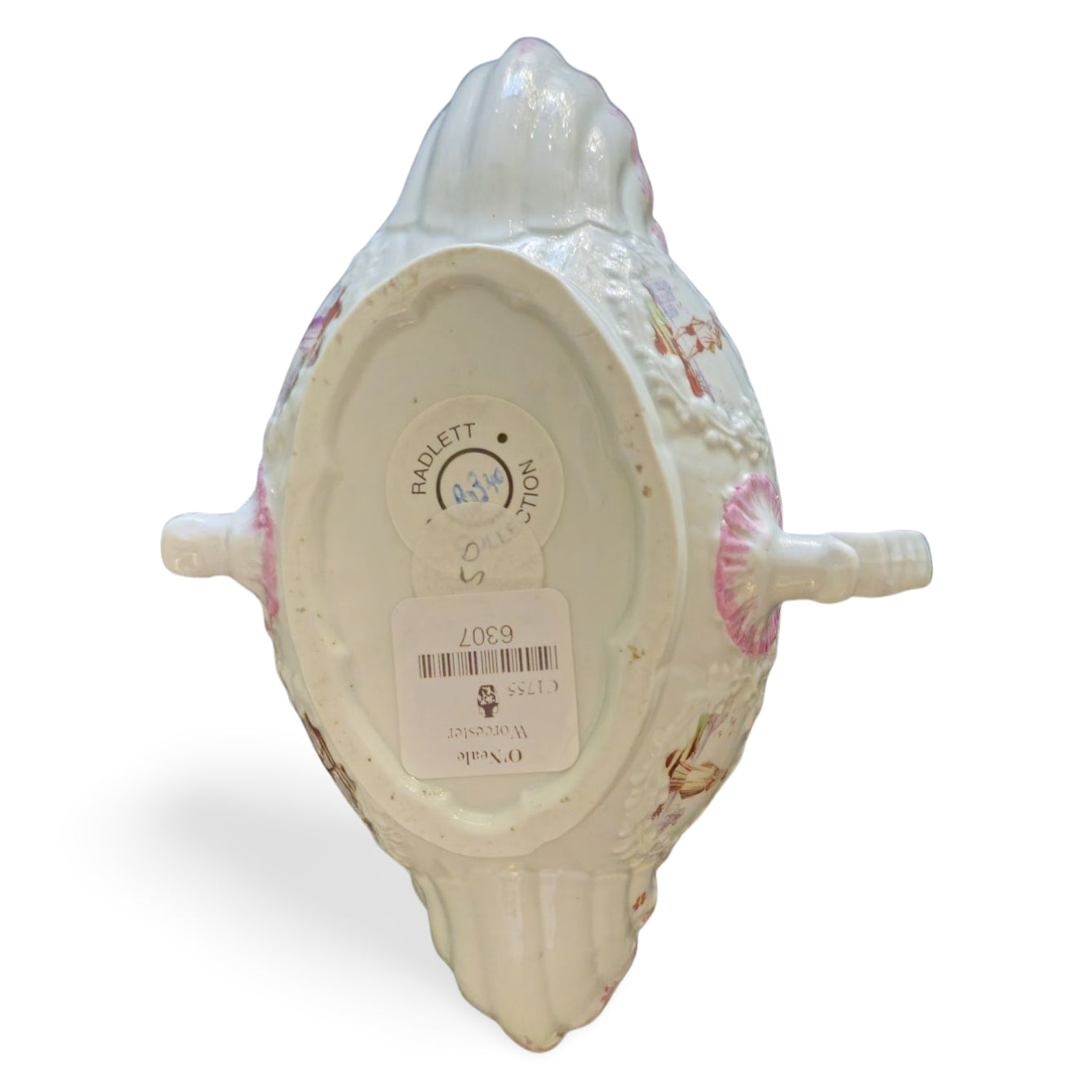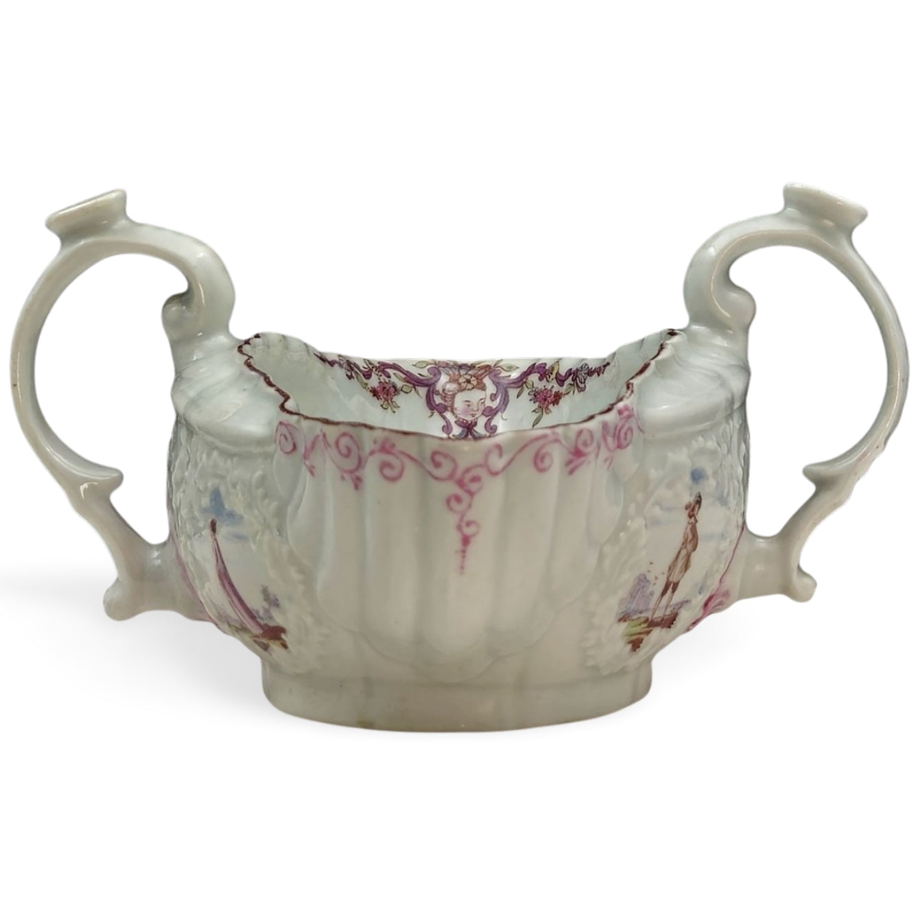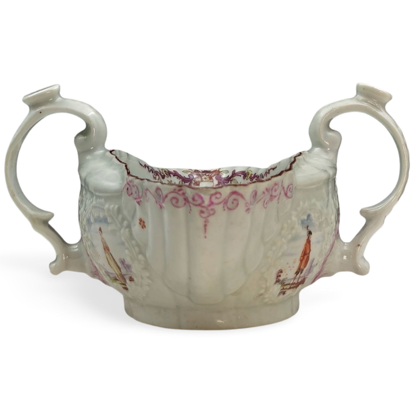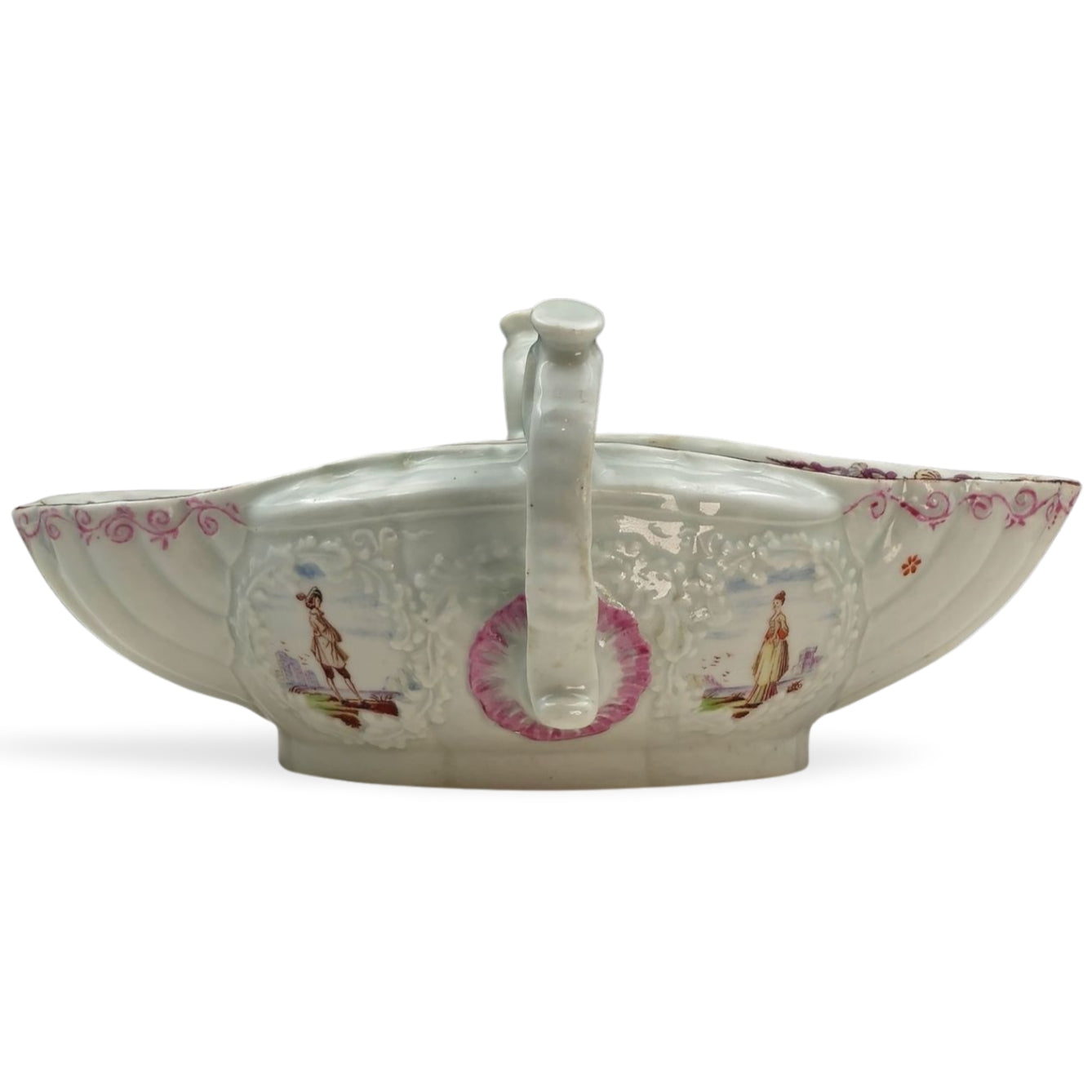 An early two-handled sauceboat, decorated by Jefferyes Hamett O'Neal, probably in the Giles workshop.