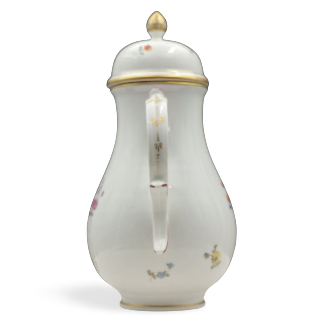 A porcelain coffee pot with fine painted decoration, from the Hochst factory.